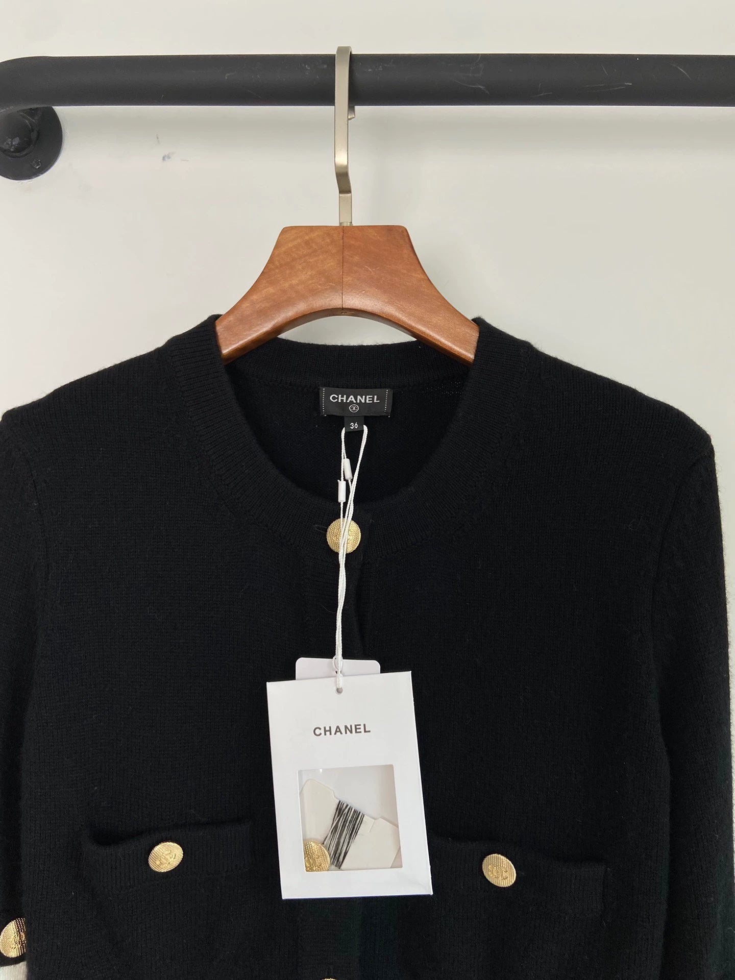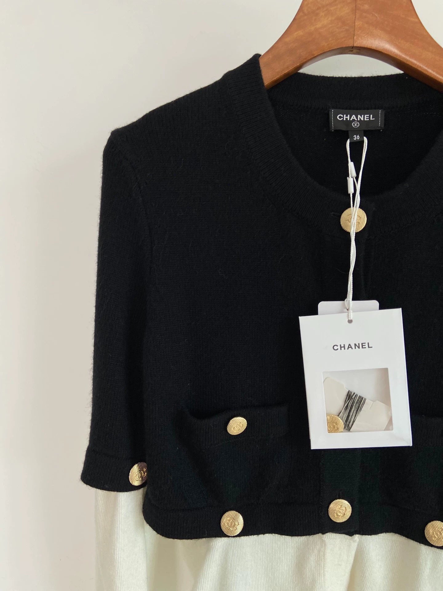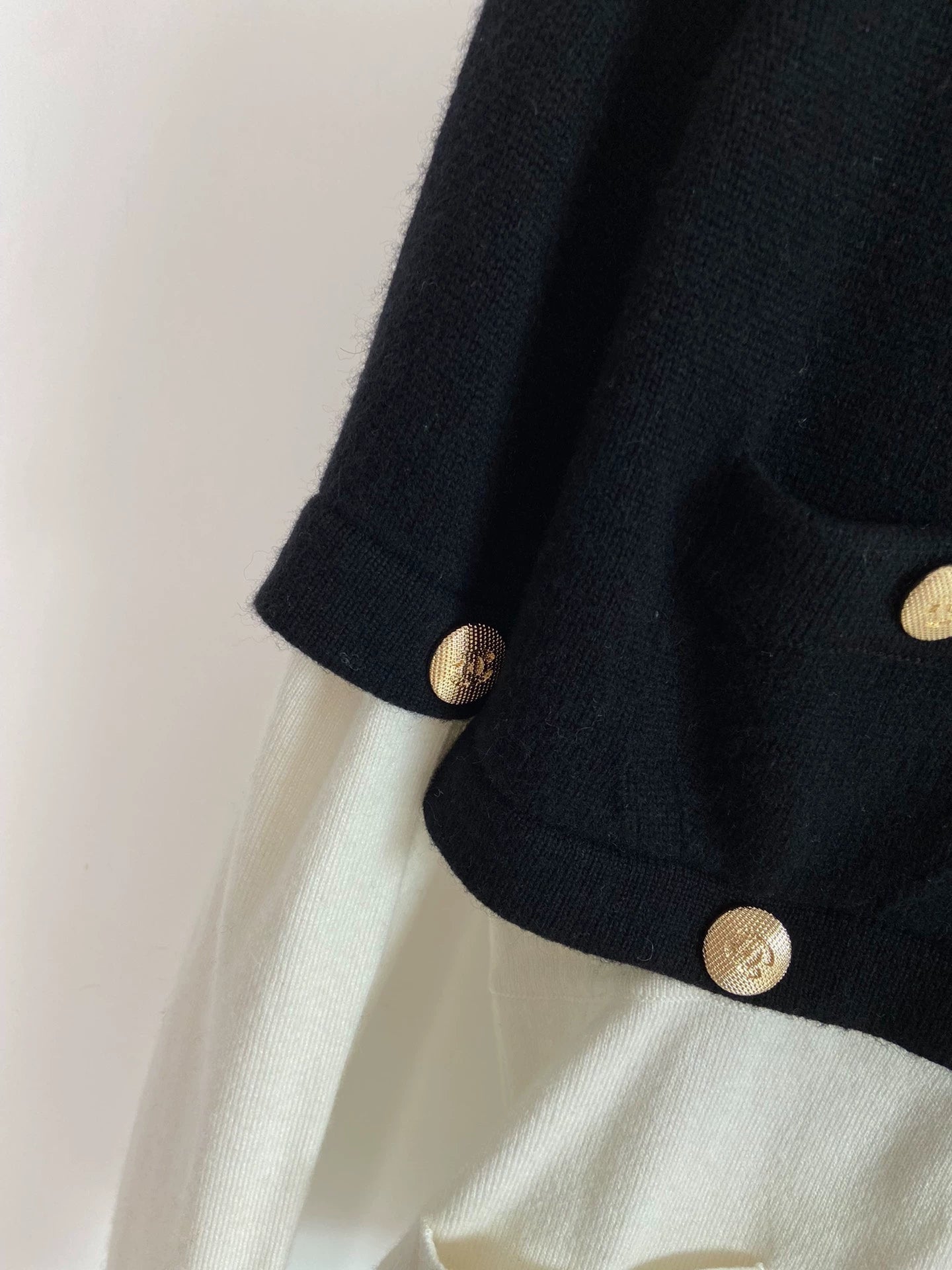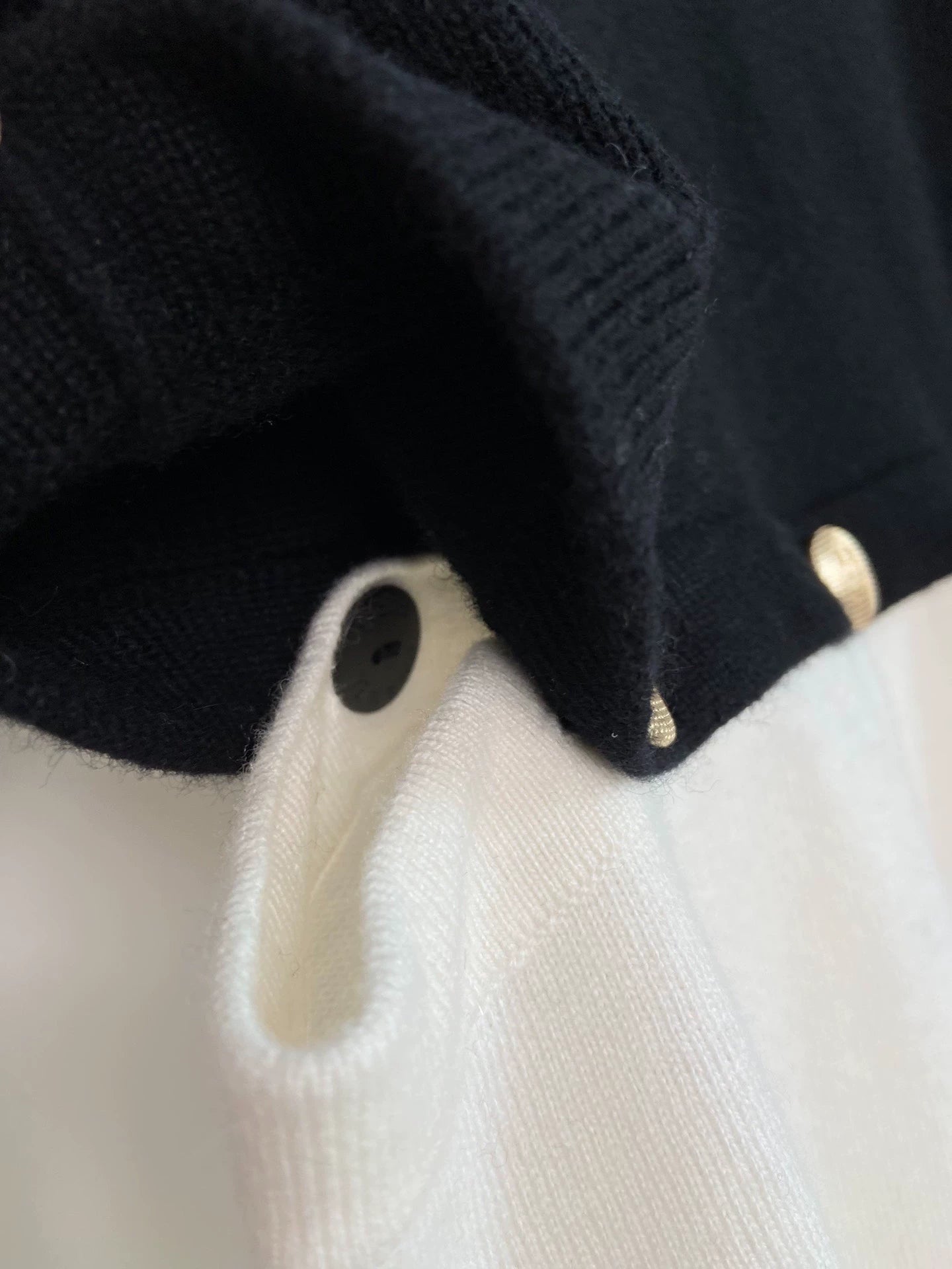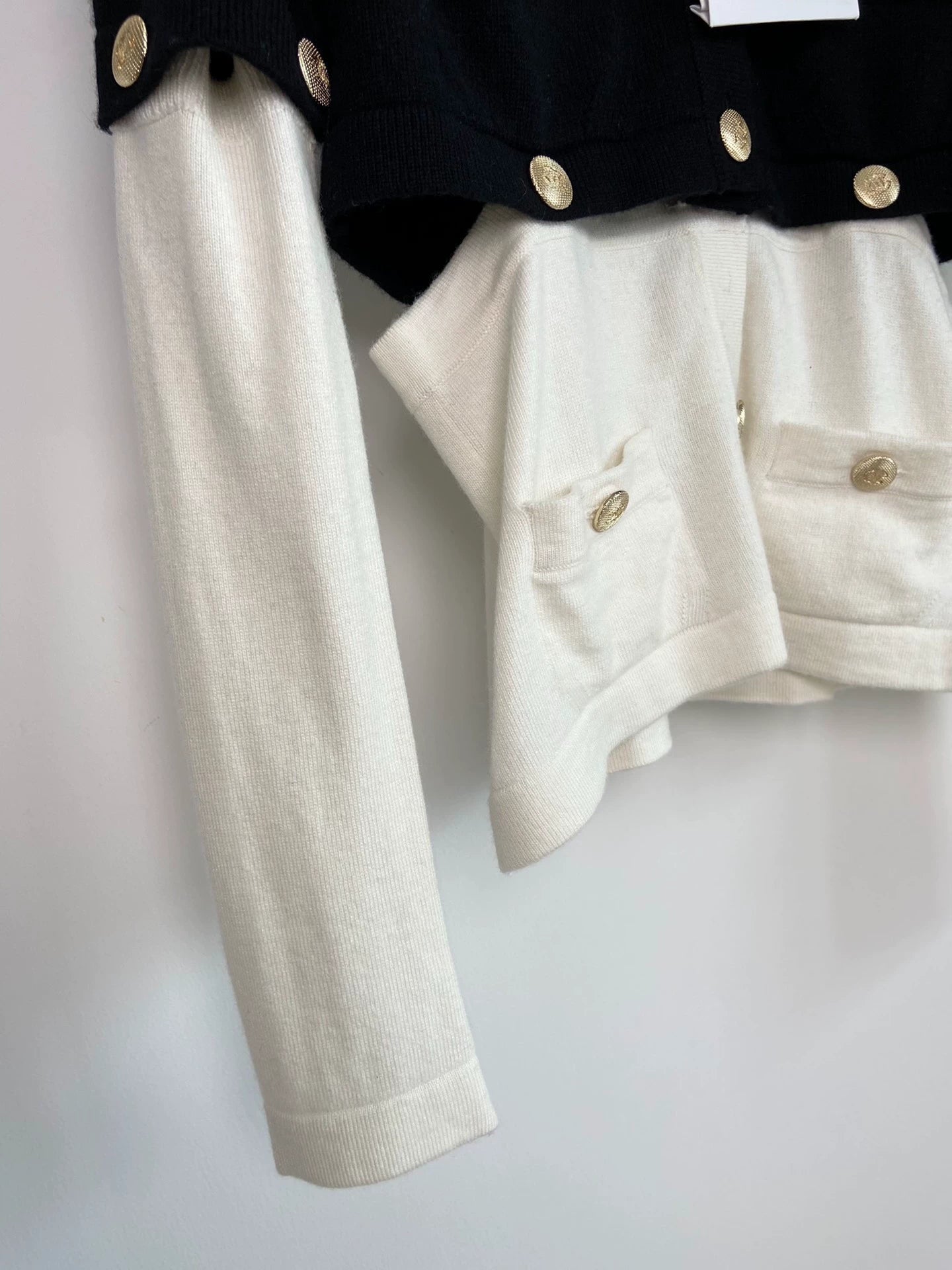 Detachable exquisite lion head buckle spliced cashmere wool fragrant style knitted sweater, classic black+classic white combination, size S. Delivery in mid September, in brand new condition, suitable for autumn and winter seasons. The sleeve length is long sleeved and the cardigan style is very suitable for daily matching.