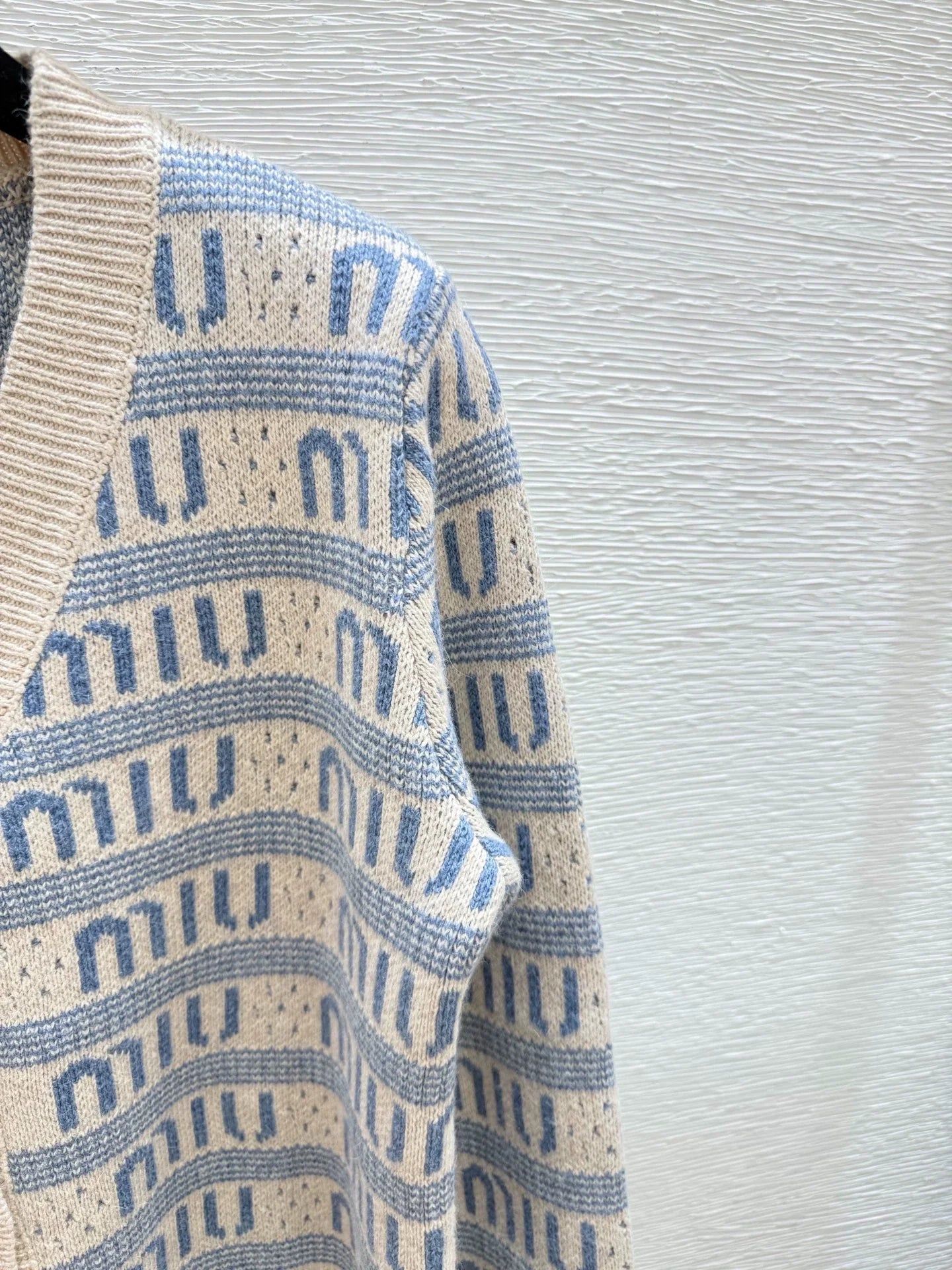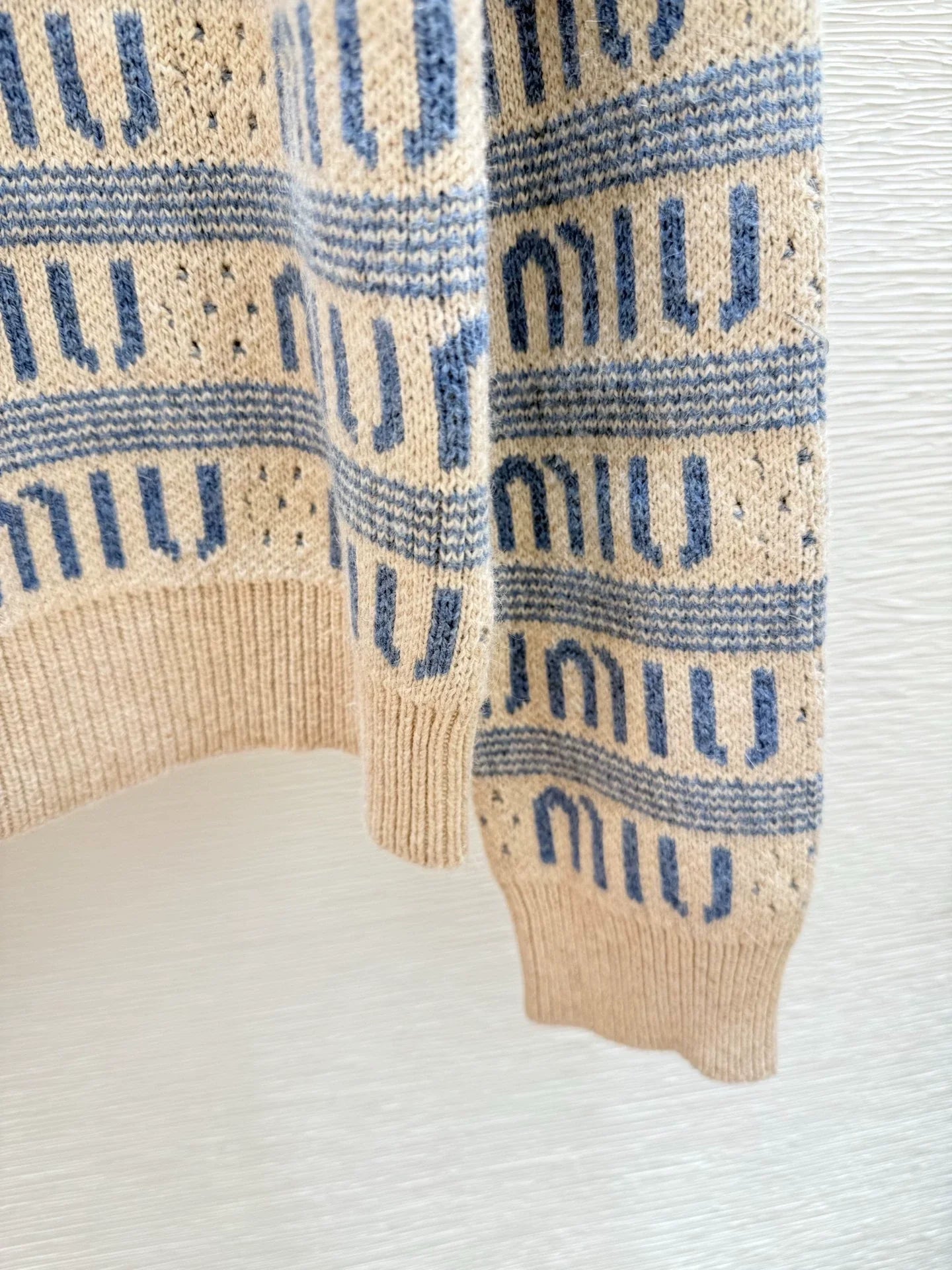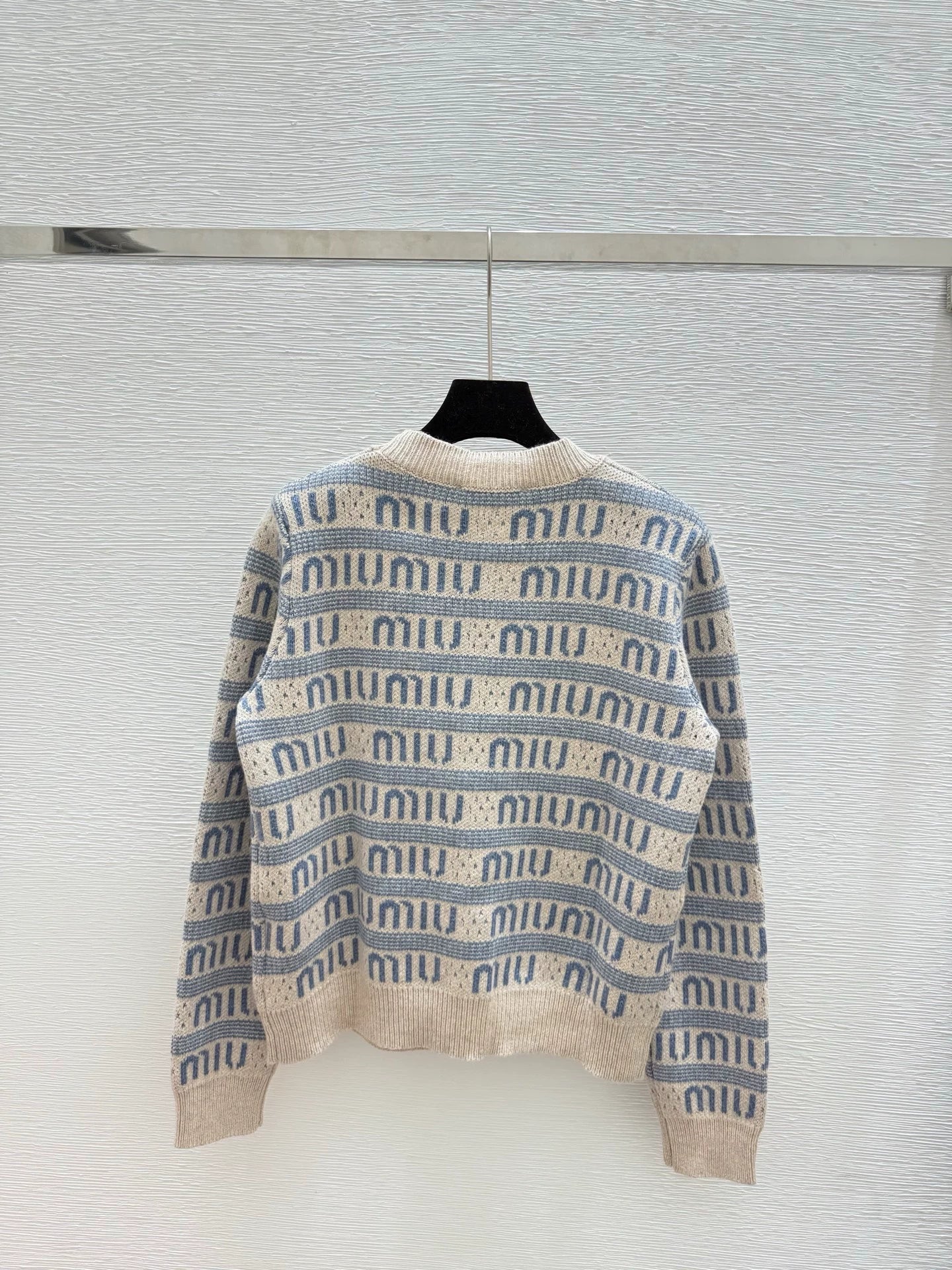 MIU letter stripe design on the front, embellished with hollow patterns, stylish and atmospheric. Suitable for wearing in spring and autumn seasons, it pairs well with skirts or pants.