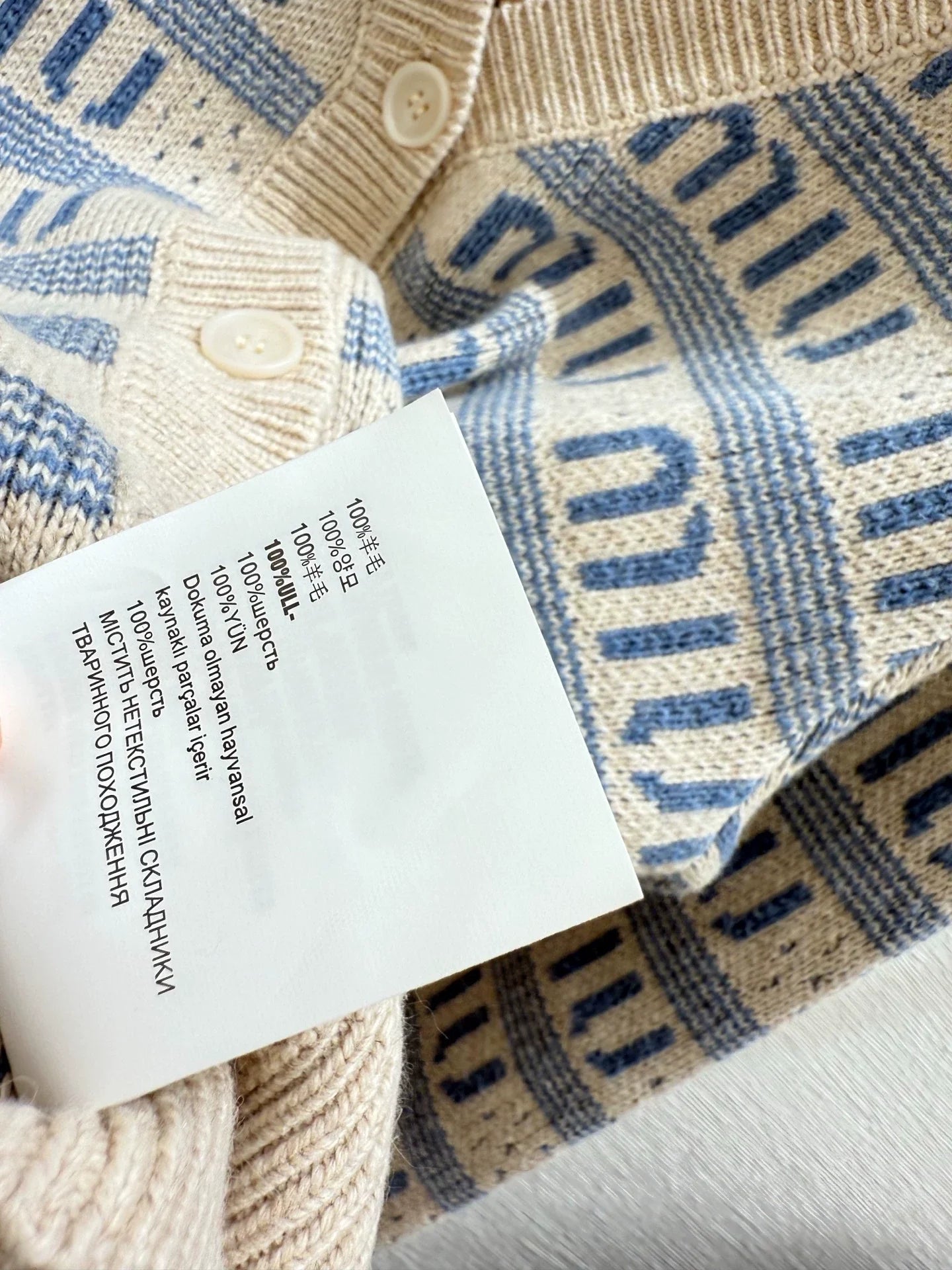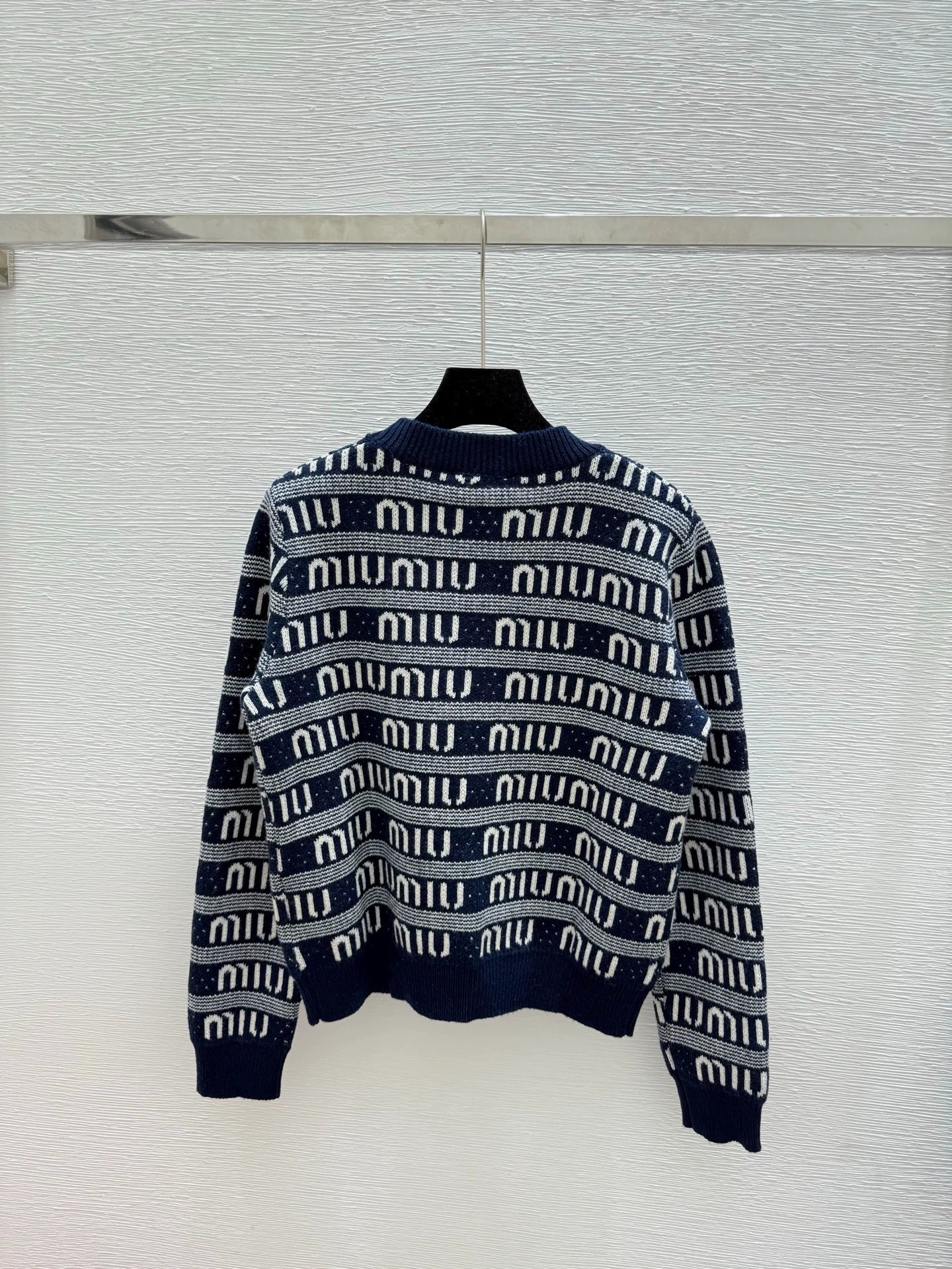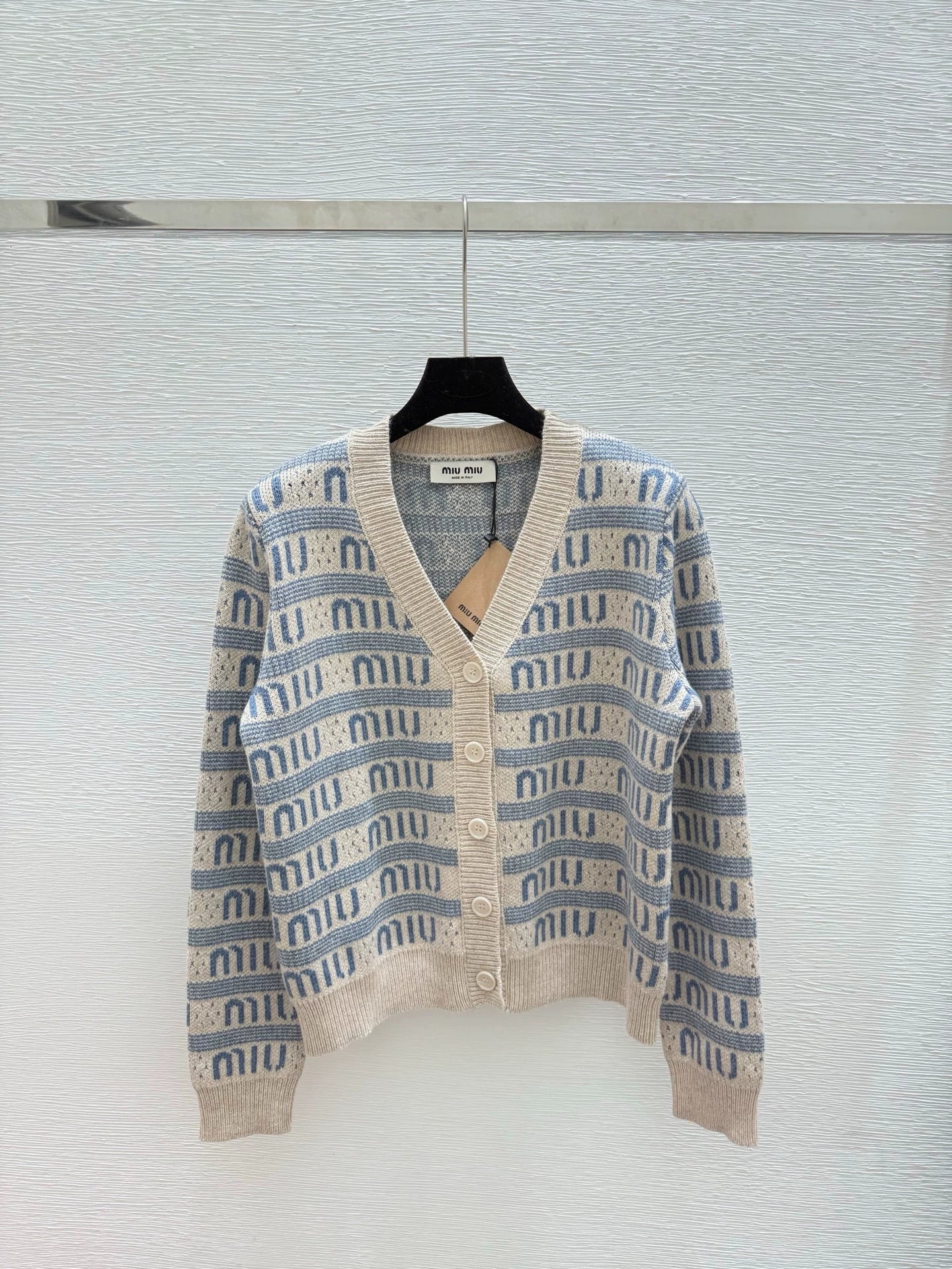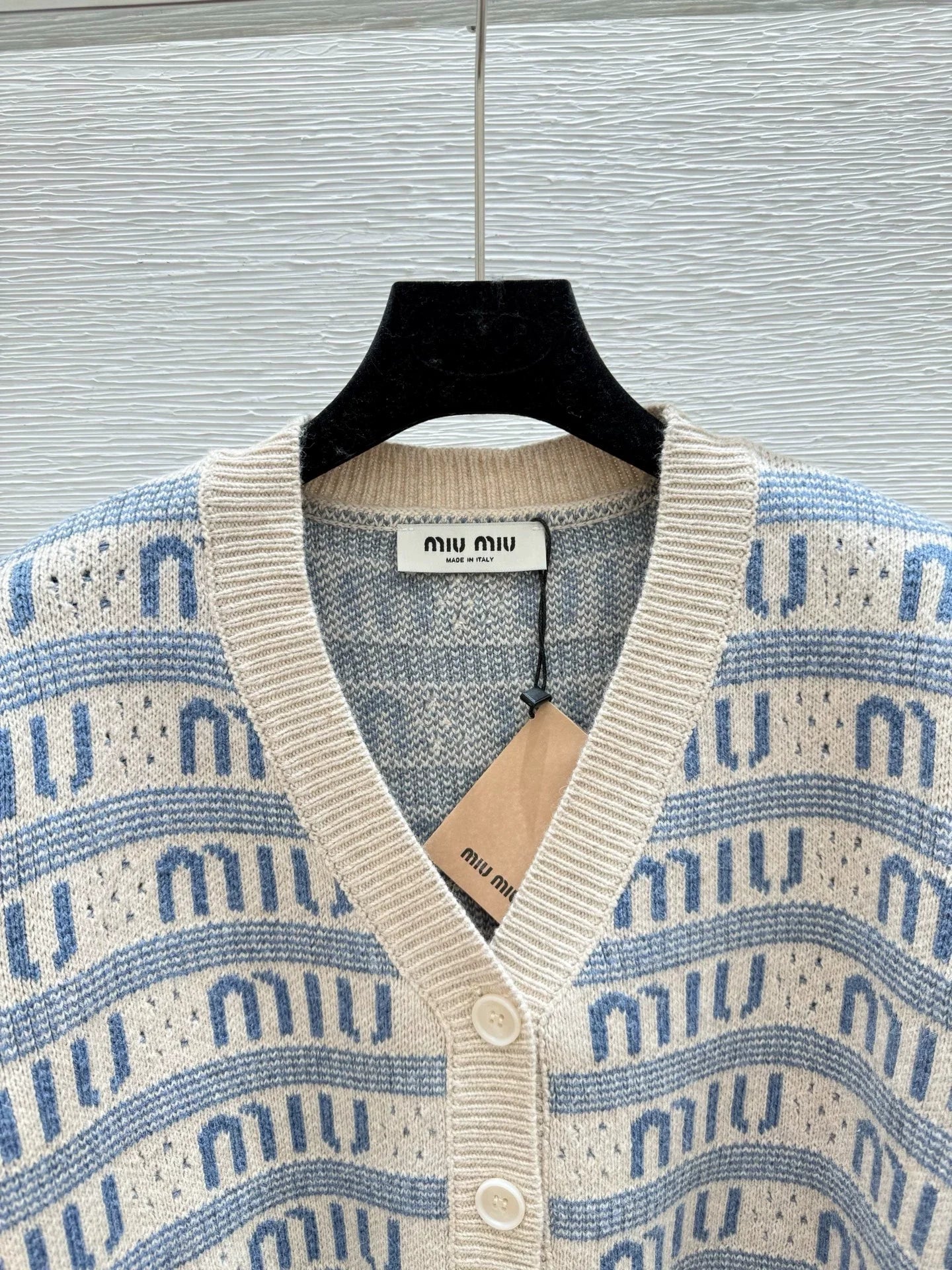 MIU letter stripe design on the front, embellished with hollow patterns, stylish and atmospheric. Suitable for wearing in spring and autumn seasons, it pairs well with skirts or pants.