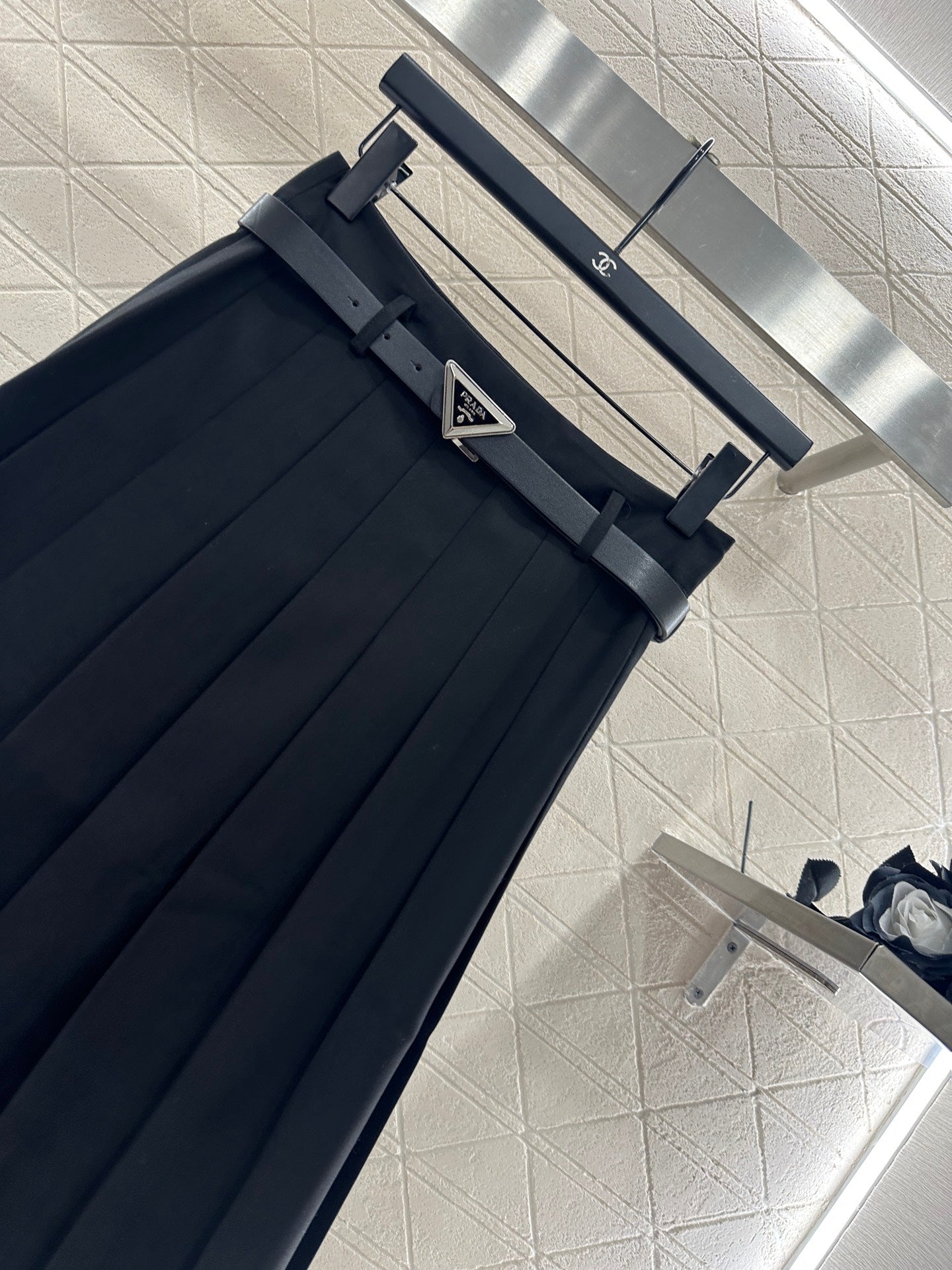25fw Mid length pleated skirt with waist belt