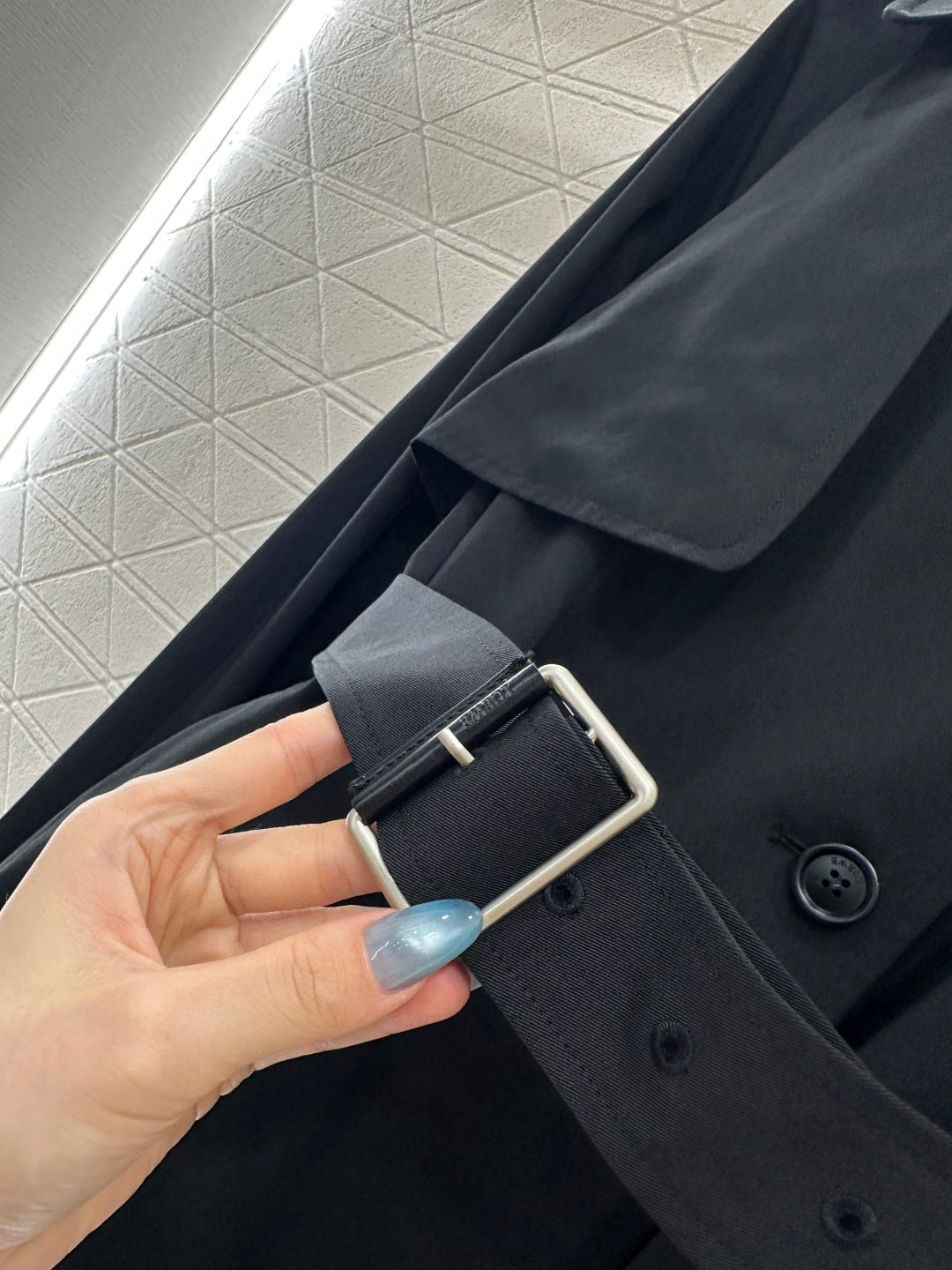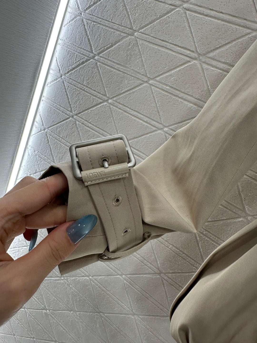 Custom YB twill cotton material with delicate luster and comfortable wear. The trench coat style continues the loose off-shoulder buckled sleeve design. A single-side cape is integrated for diverse wearing methods to create a deconstructed style. The style is unique and fashionable. The perforated fabric belt at the waist is decorated to outline the body shape. It has a full sense of design and is fashionable and relaxed for daily wear. The leather label totem on the back highlights the style. It is suitable for different styles. Customized fabrics and accessories