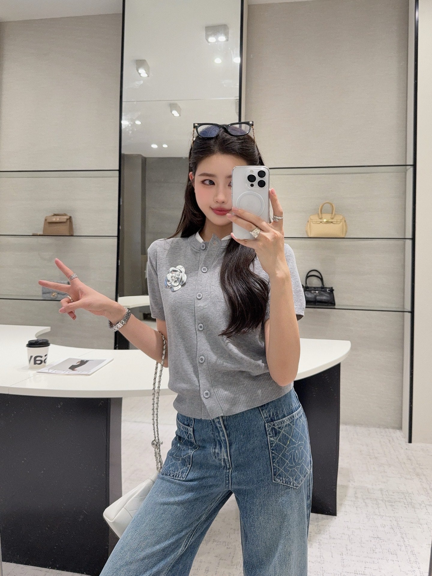 25fw new camellia knitted short sleeves