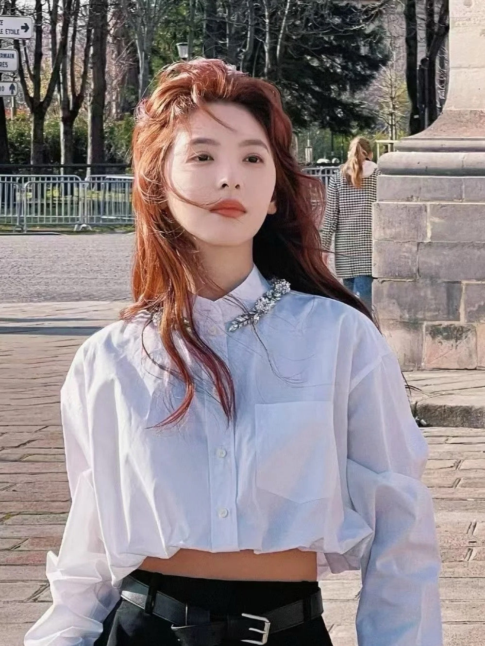 🤍A shirt for both commuting and daily use. Short version. Can be paired with a high-waisted lower body. Instantly transform into a 1.8-meter-high proportion. Especially tall. It is a very thoughtful shirt. Poplin cotton fabric
