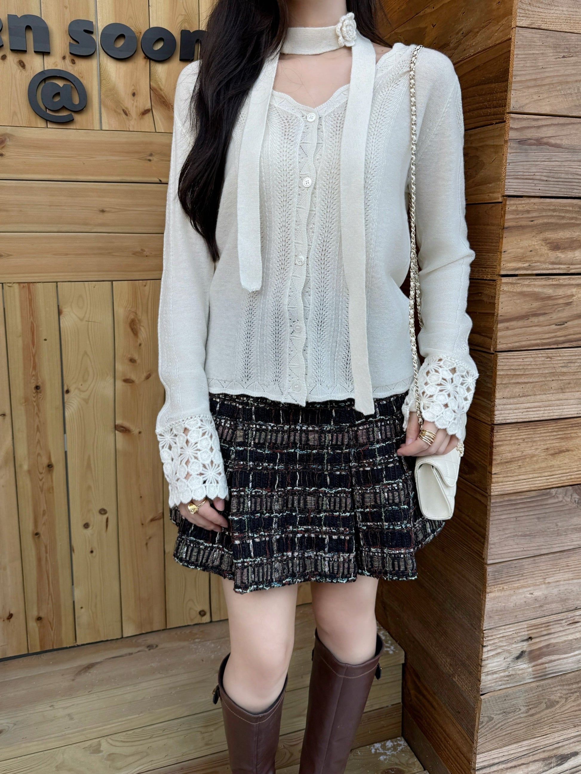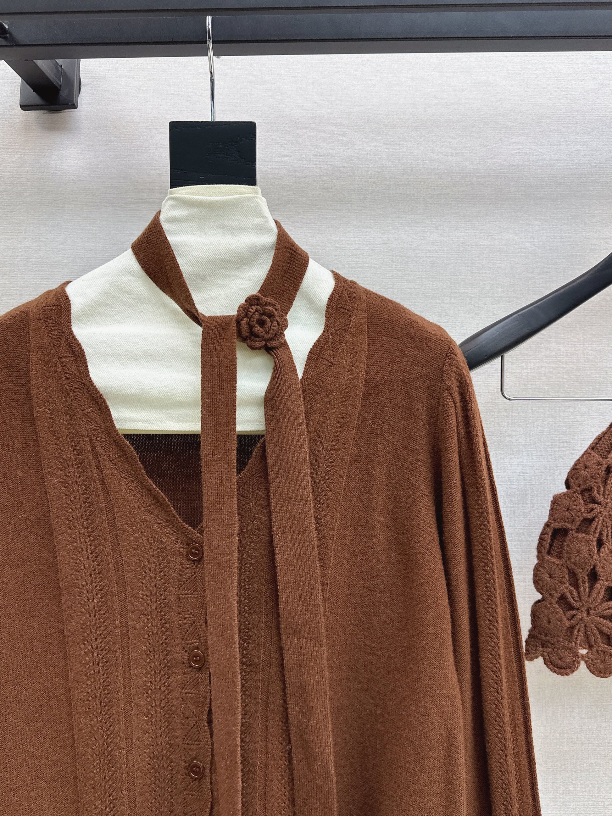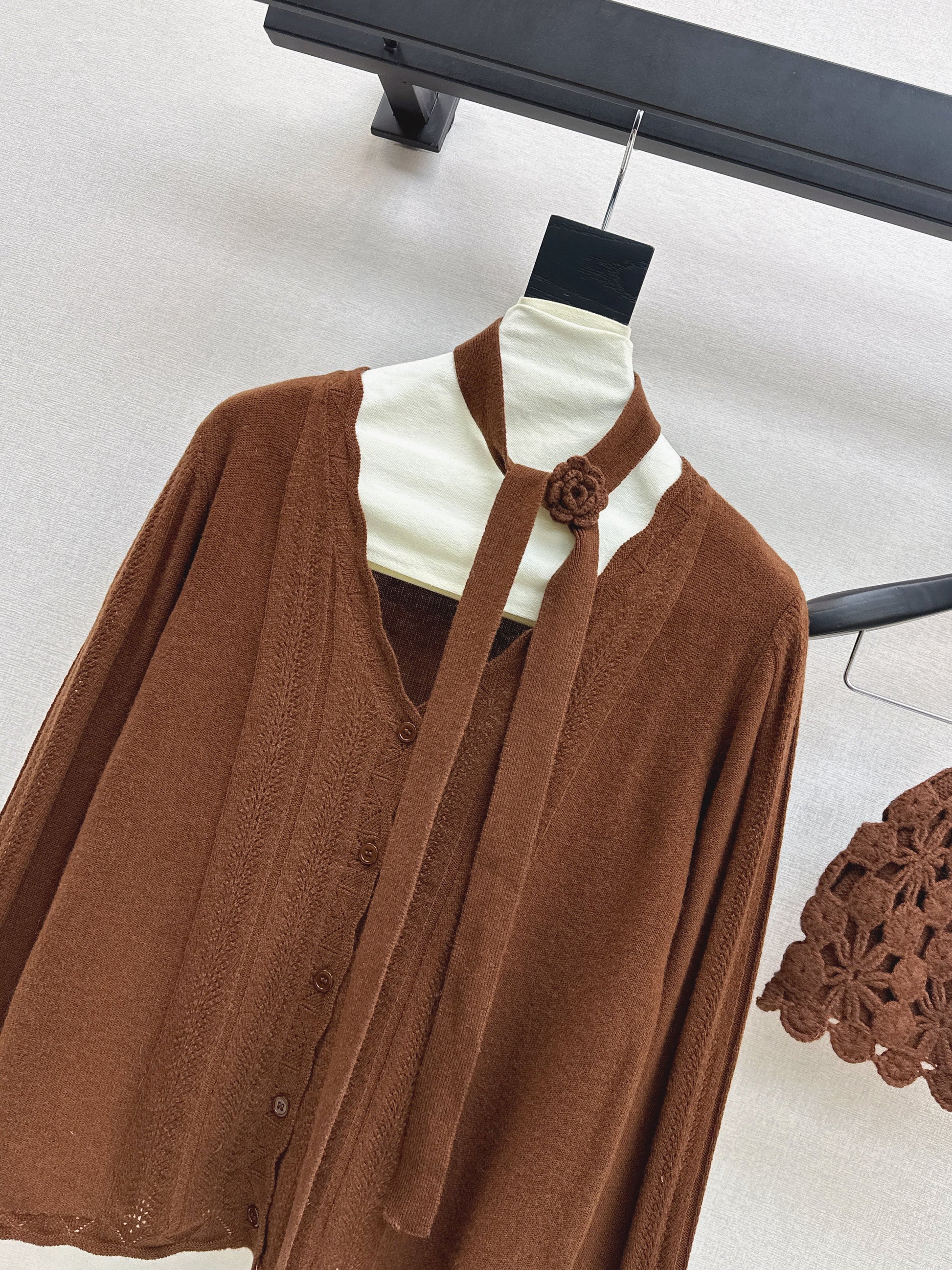 25fw new V-neck cardigan + flower hollow knitted hat set