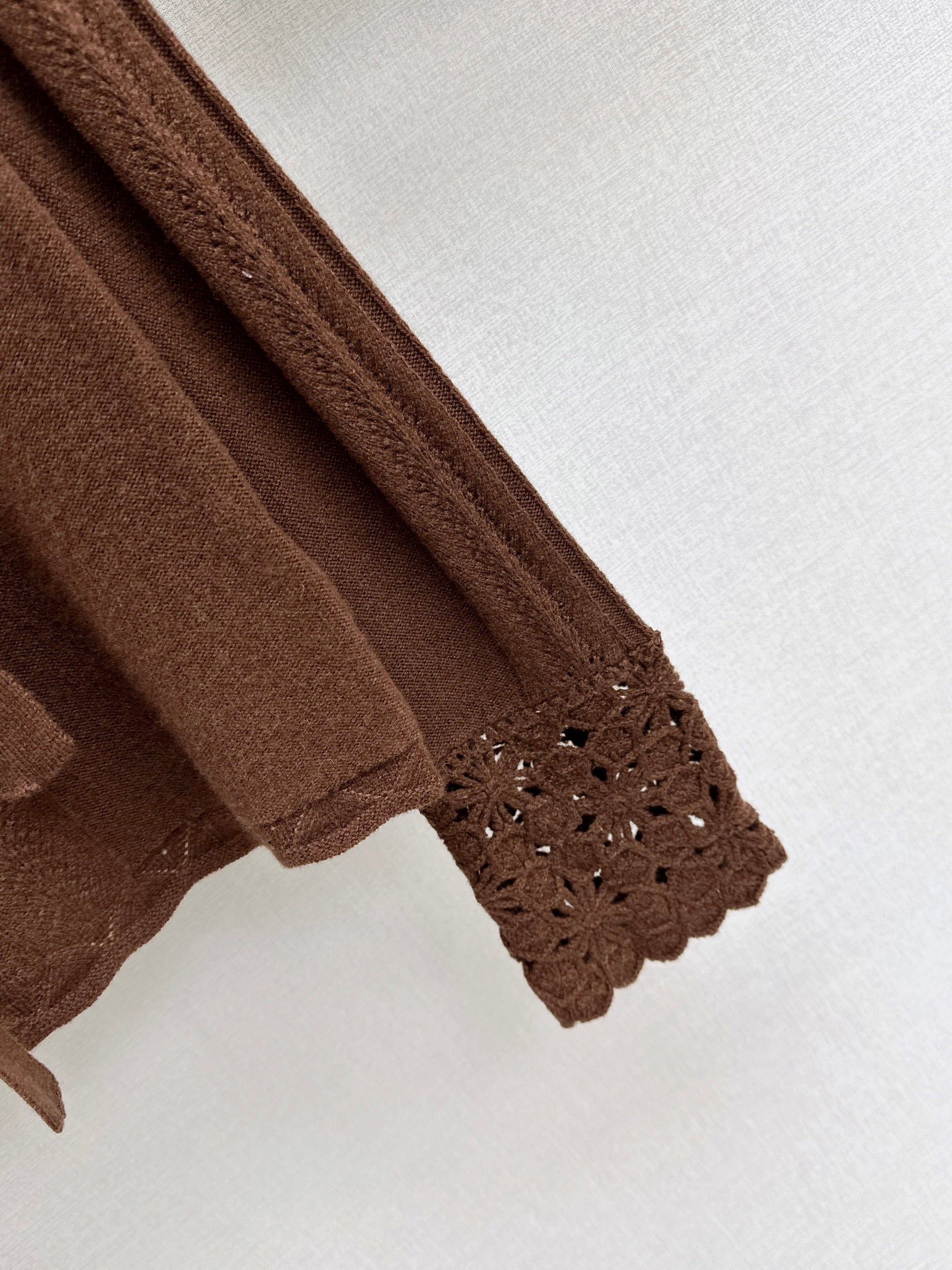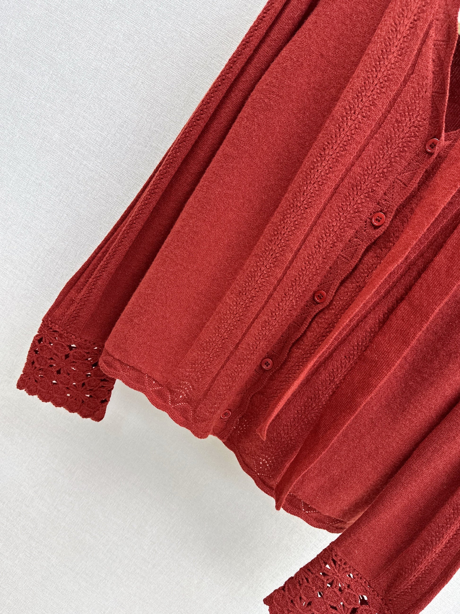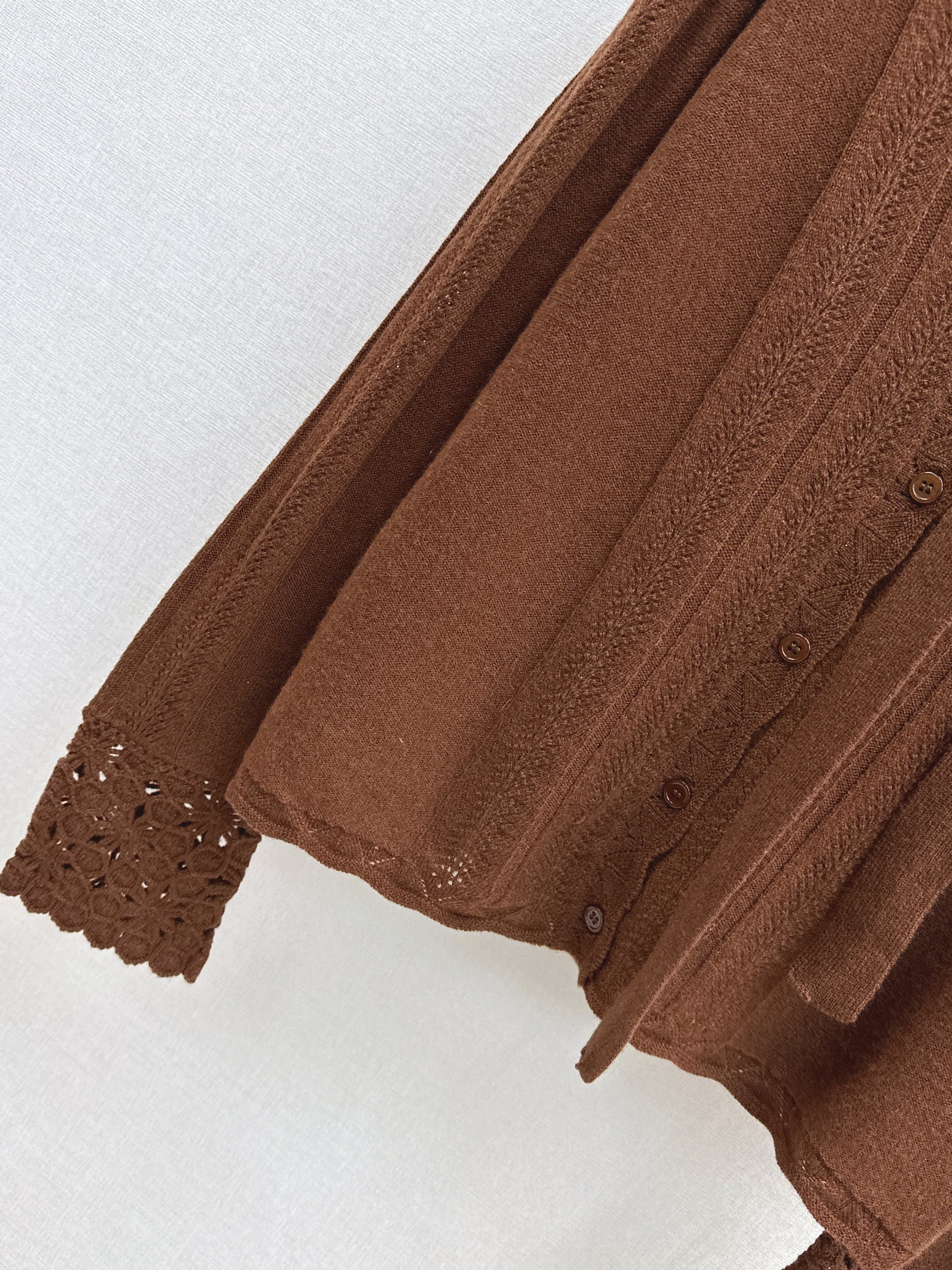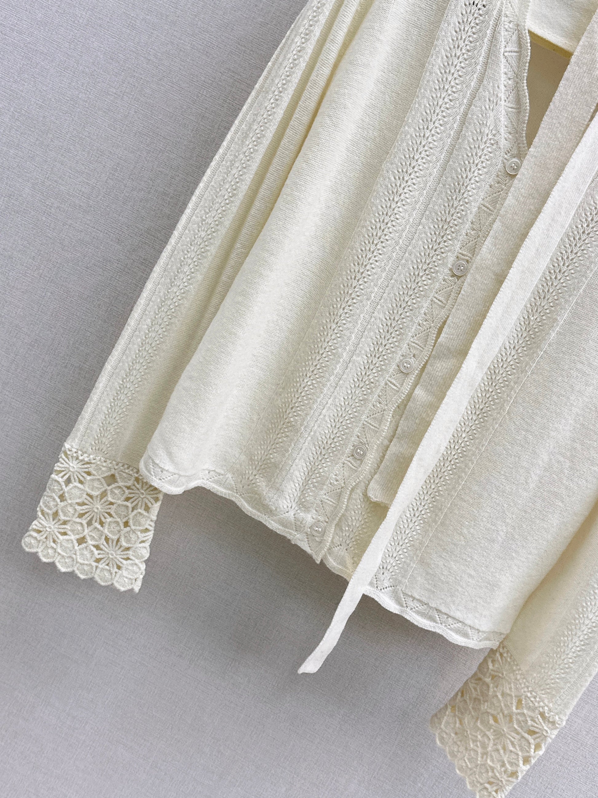25fw new V-neck cardigan + flower hollow knitted hat set