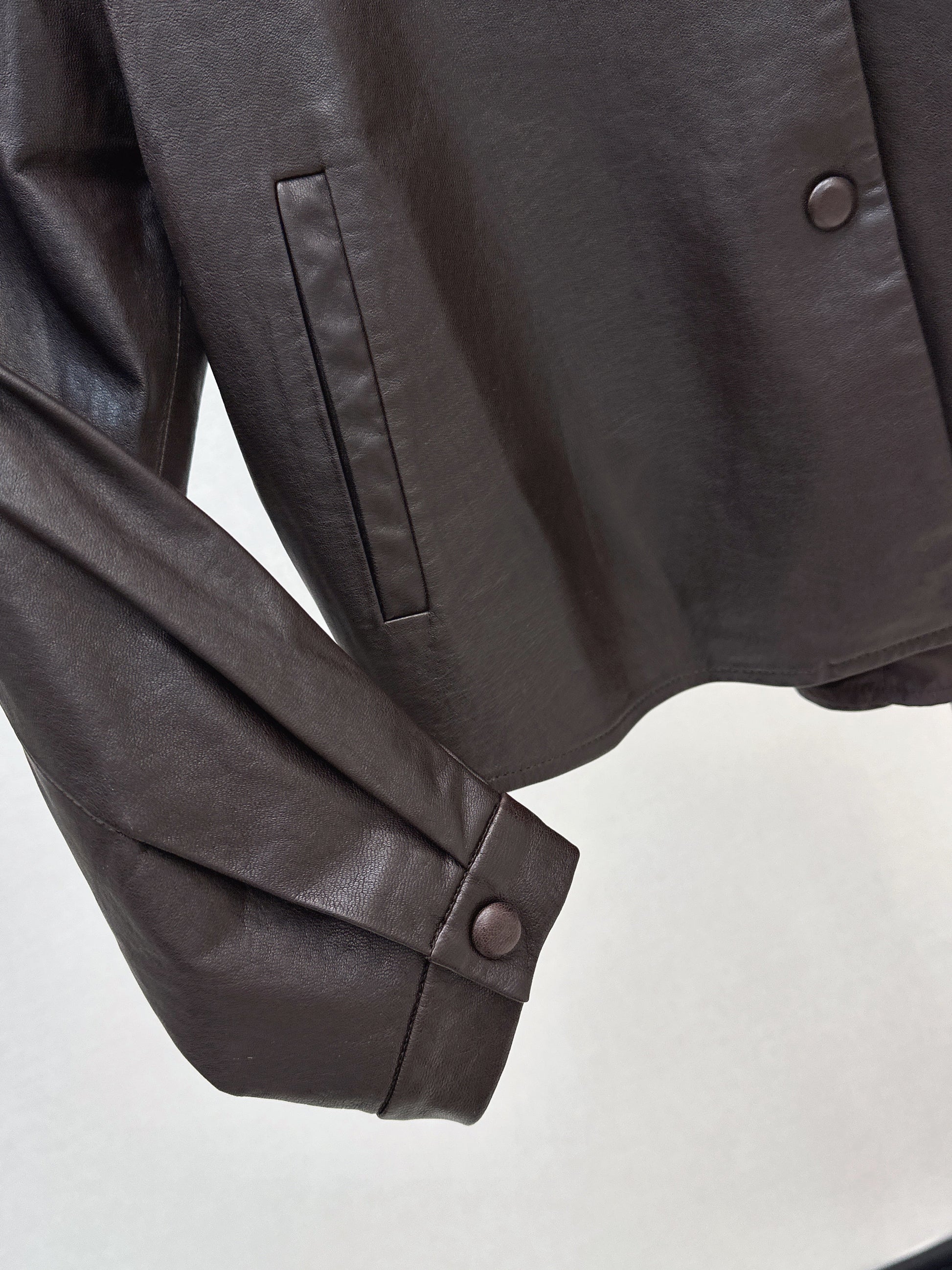 Oil wax leather texture, soft and sticky sheepskin feel super comfortable to the touch. The single breasted design is simple yet fashionable, and the shirt style silhouette adds a touch of leisure. Whether paired with jeans or a small skirt, it can easily control the color and is also versatile. The classic black and gray color scheme will not go wrong no matter how you wear it