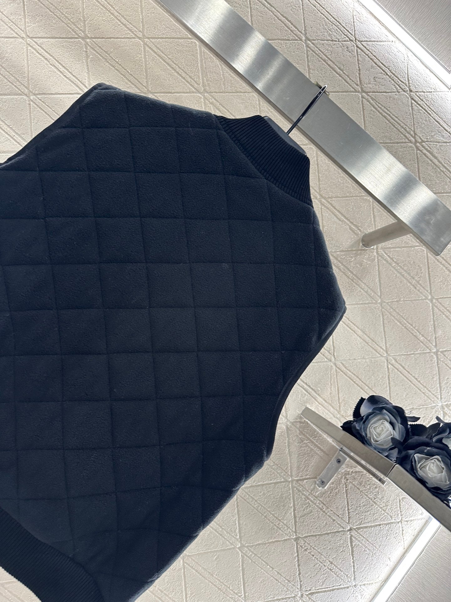 Made of fleece material, the plush is delicate, soft and comfortable, and the slim fitting vest is fashionable without appearing bulky. The stand up collar design is warm and windproof, with diamond grid texture and the iconic brand letter logo on the chest as decoration, enriching the layers. The pockets are embellished with zippers, highlighting the quality with details. It is the first choice for autumn and winter layering