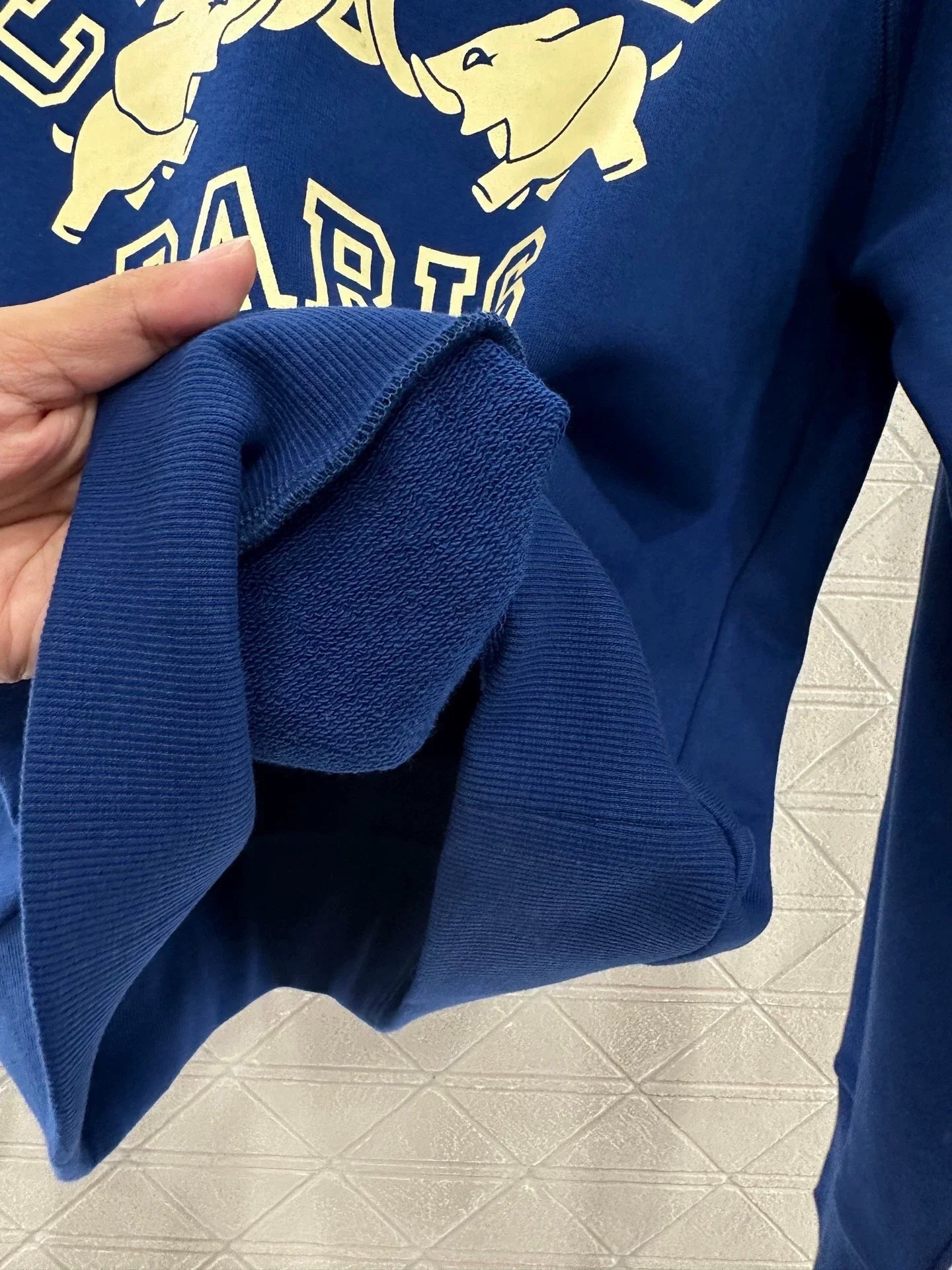Made of all cotton material, breathable and comfortable, with a stylish round neck pullover hoodie cut and loose fit. The iconic letter print on the chest and the playful elephant illustration pattern on the Triumphal Arch showcase the brand's high-end feel. The versatile upper body makes you look slim, simple and not picky. The hoodie style is timeless and exudes a minimalist casual style