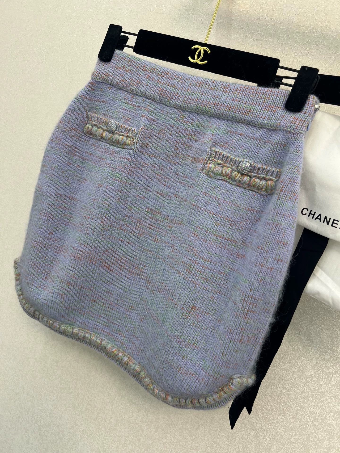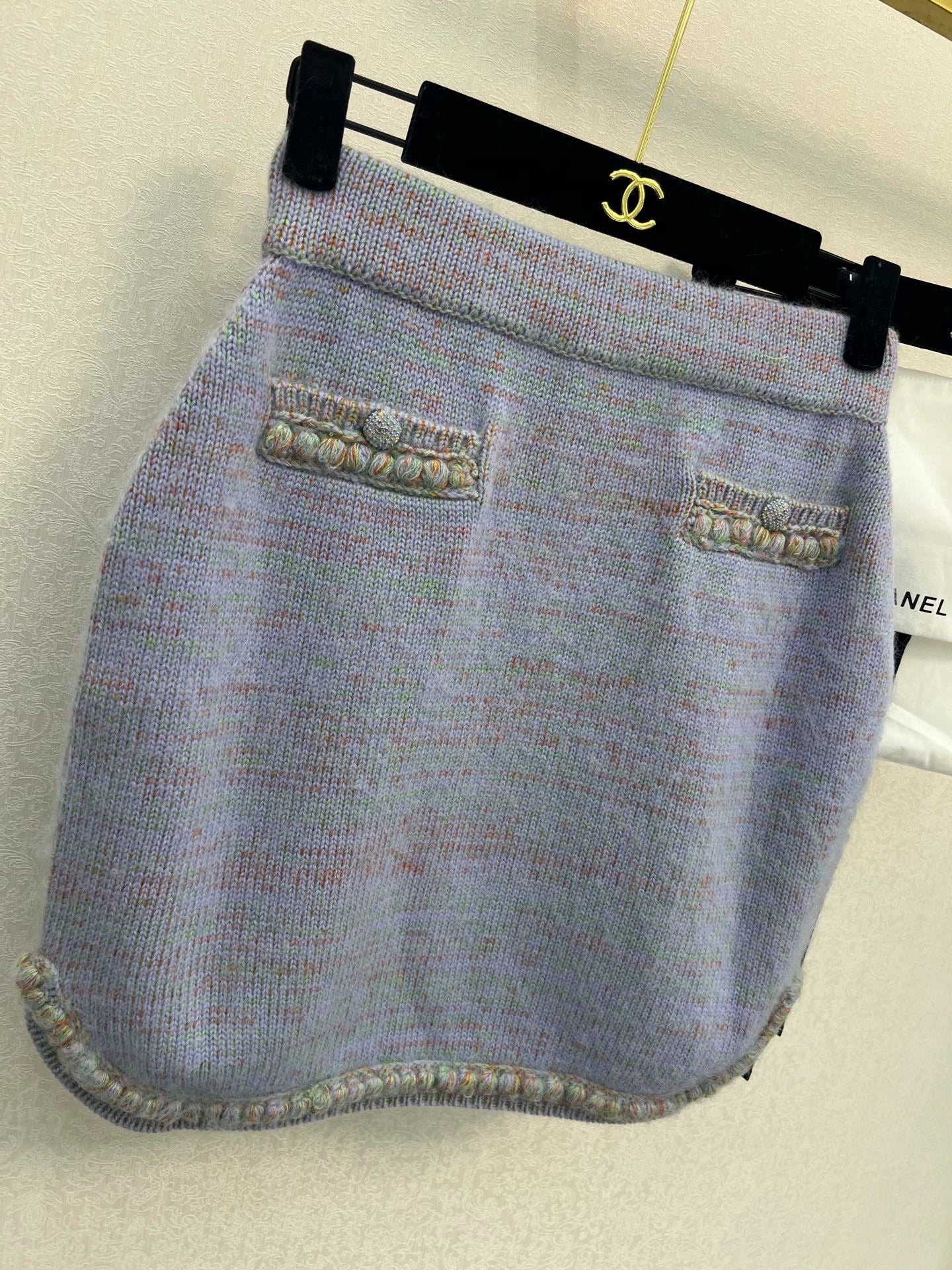 Exquisite woven lace decoration, embellished with double C diamond buckles, fashionable and elegant. High waisted A-line skirt shape, slimming and elegant. Suitable for wearing in spring and autumn seasons