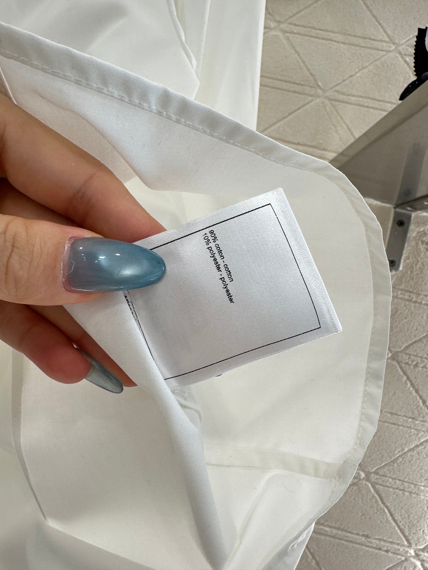 The twill cotton material is comfortable and delicate in texture, with full breathability. It is a wide leg long pants cover with a lapel shirt. The top is cut cleanly and slim, and the overall plain color is low-key and versatile. It is durable and eye-catching. The collar is decorated with a hanging ribbon, which can be loose or tied for a more fashionable gameplay. Combined with the buttoned water diamond double C letter logo, it is full of fashionable feeling for old money. Paired with wide leg straight leg pants from the same series, the three-dimensional cut provides a loose and spacious silhouette, making it more inclusive and flexible, showcasing a high-end style. When worn as a set, it effortlessly creates a stylish and sophisticated look.