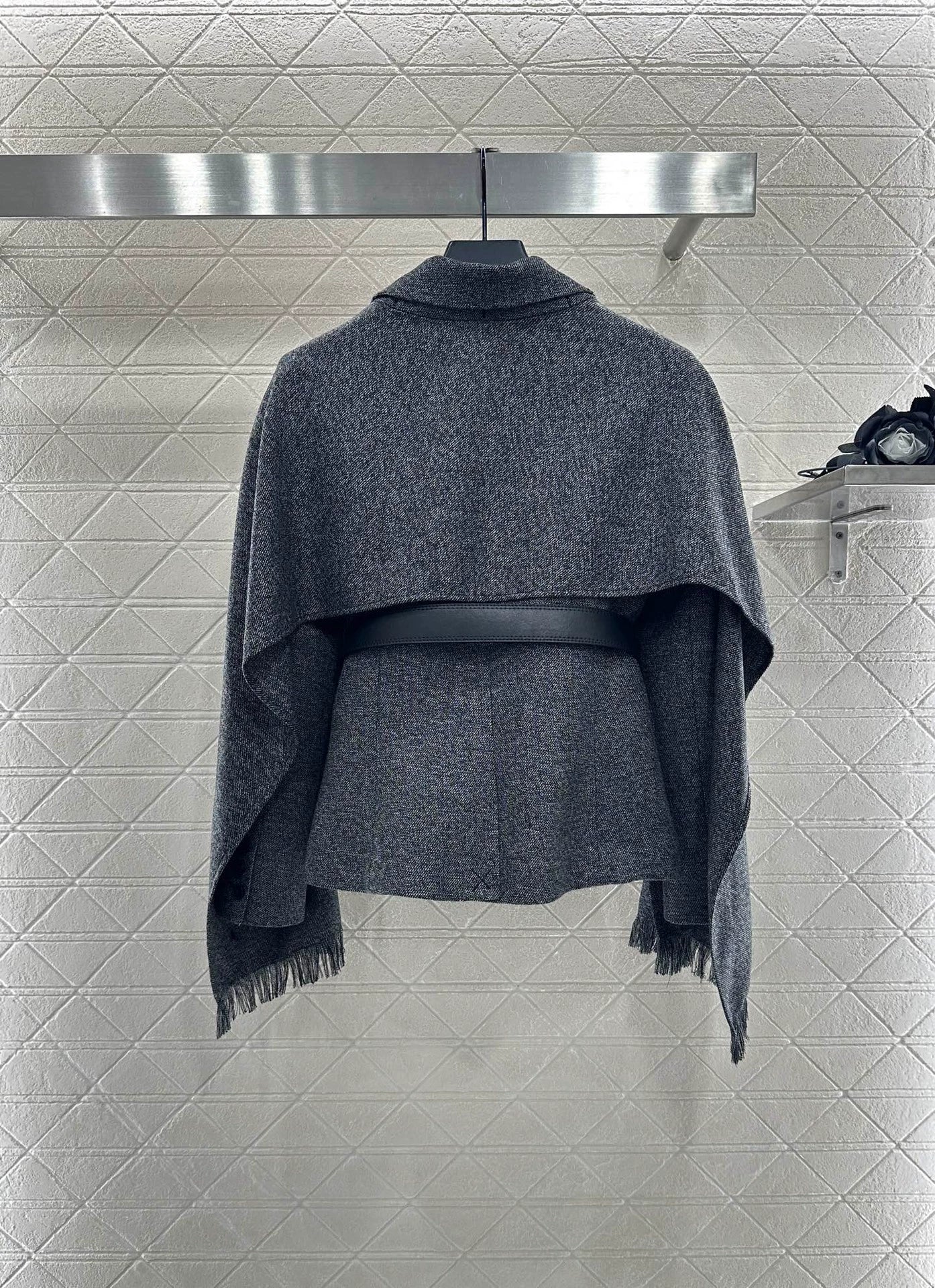 Made of 100% silk wool material, with a glossy and high-end texture, the lapel suit features a single row button cut that is simple and elegant. The collar button is fixed to the shawl scarf, and the detachable design adds a highlight to the outfit. It is high-end and stylish, with a waist shaping silhouette and a waist belt integrated into the outfit. The upper body displays a perfect sense of lines, adding a noble and elegant touch. It showcases luxurious taste for commuting and attending important occasions