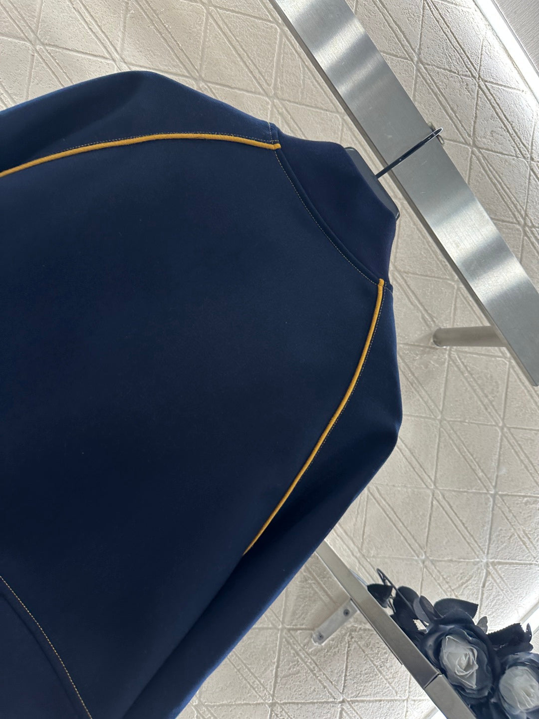 High woven cotton material with high-quality texture, full of appearance, short jacket ➕ A high waisted half skirt set with a fashionable college style short jacket that features a unique style and is shoulder tied and trimmed ➕ The three-dimensional letter pattern on the chest is molded with a gold button design, which is low-key and fashionable. The overall brand tone is very prominent, with a high waist, medium length half skirt and a slightly flared skirt hem ➕ The pleated and pressure processed anti-aging artifact set is effortless to match with high-end and fashionable styles, making it a versatile item when separated