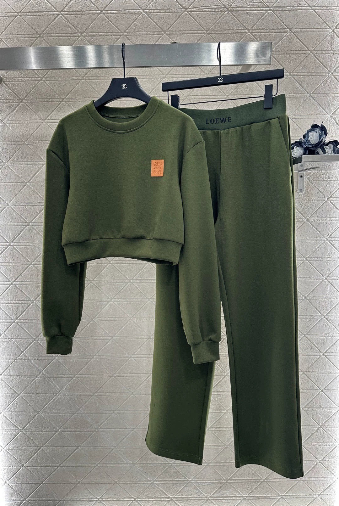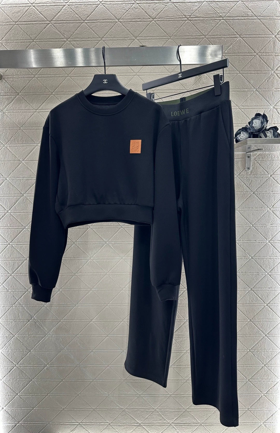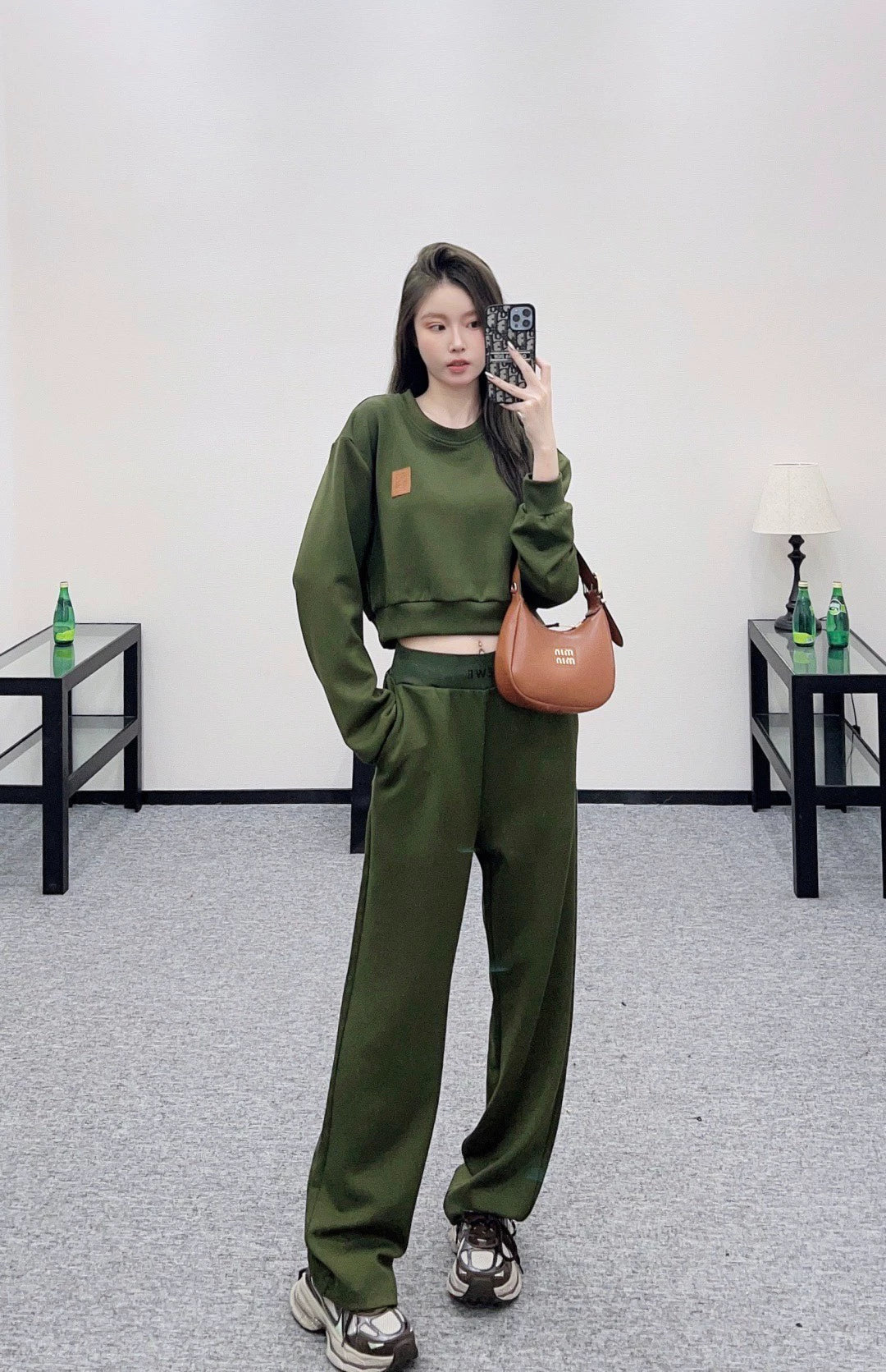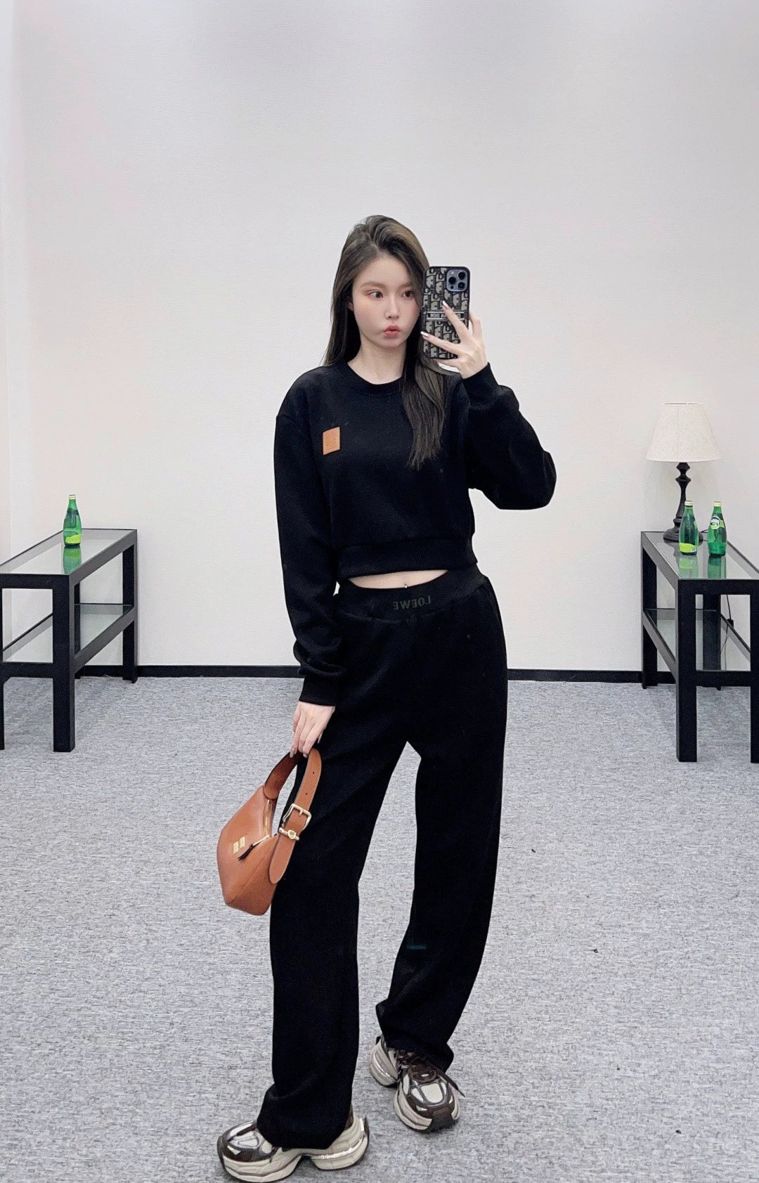 Delicate and comfortable texture, easy to wear. Hooded sweatshirt and pants set with leather totem logo embellished on the chest. The color and fabric create a collision design, which enhances the visual effect. Paired with the same series of wide leg straight leg pants, the letters at the waist echo up and down, highlighting the high-end positioning and improving the texture of the outfit. Complete set with casual and fashionable upper body