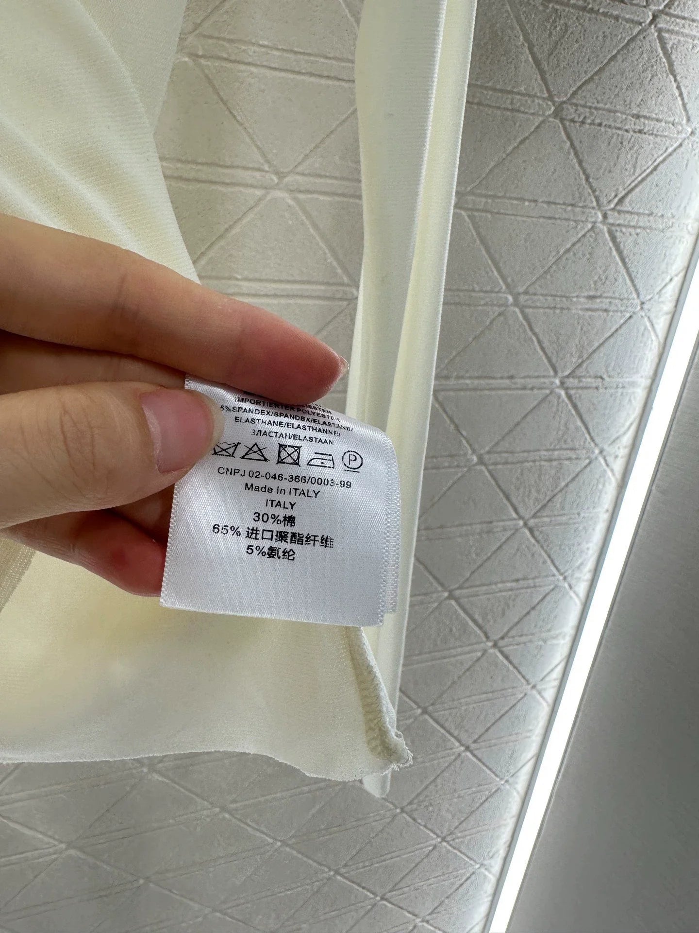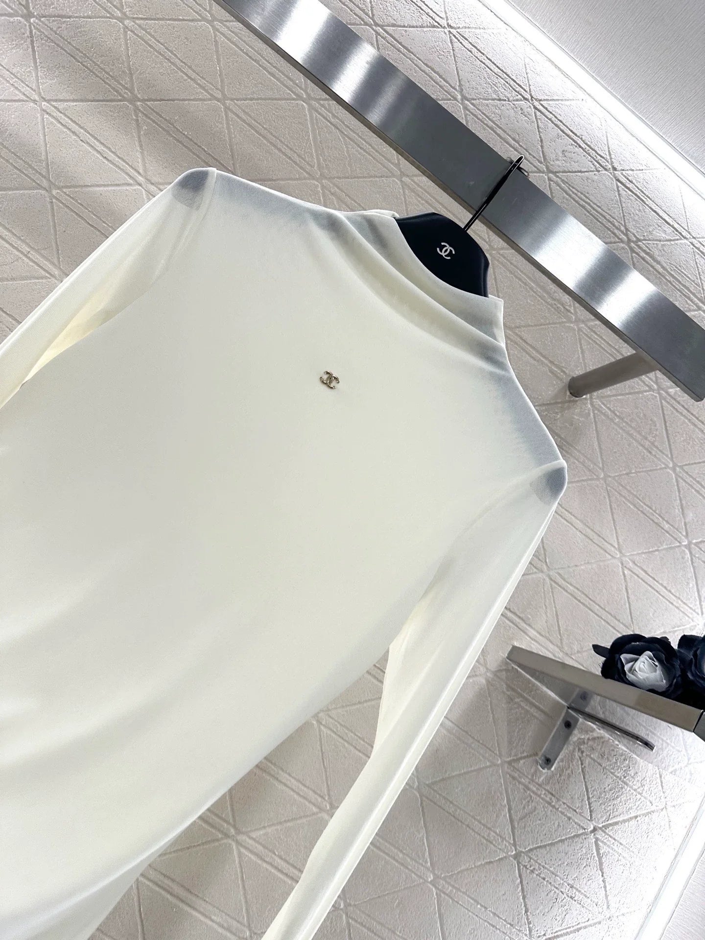 Comfortable and stretchy texture, slim fit high neck base cut, single-sided sewn rhinestone double C logo on the chest, gorgeous and shining, highlighting the brand style, elastic and close fitting feeling, visually narrowed and elongated, presenting a slimming effect, highlighting the beauty of women's curves