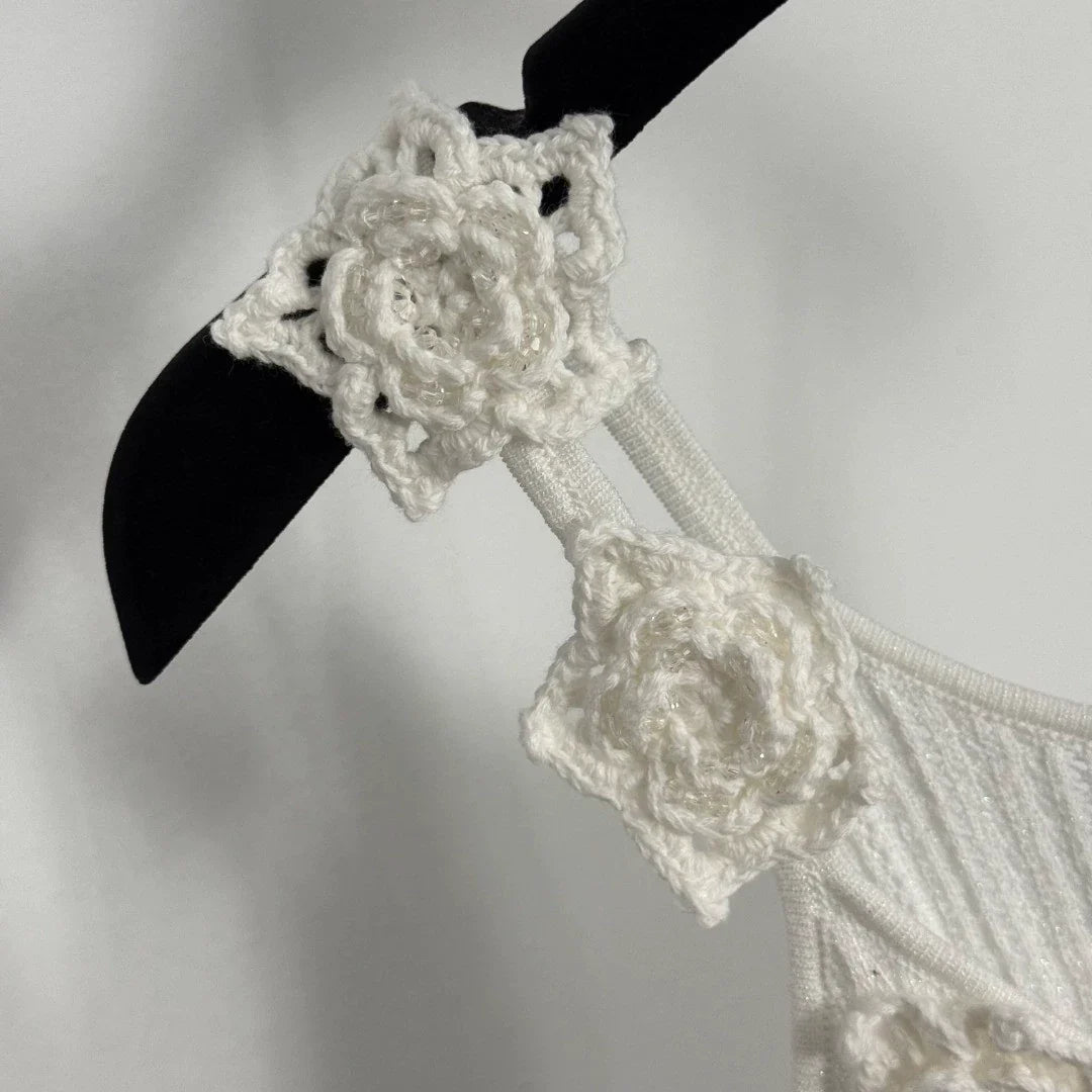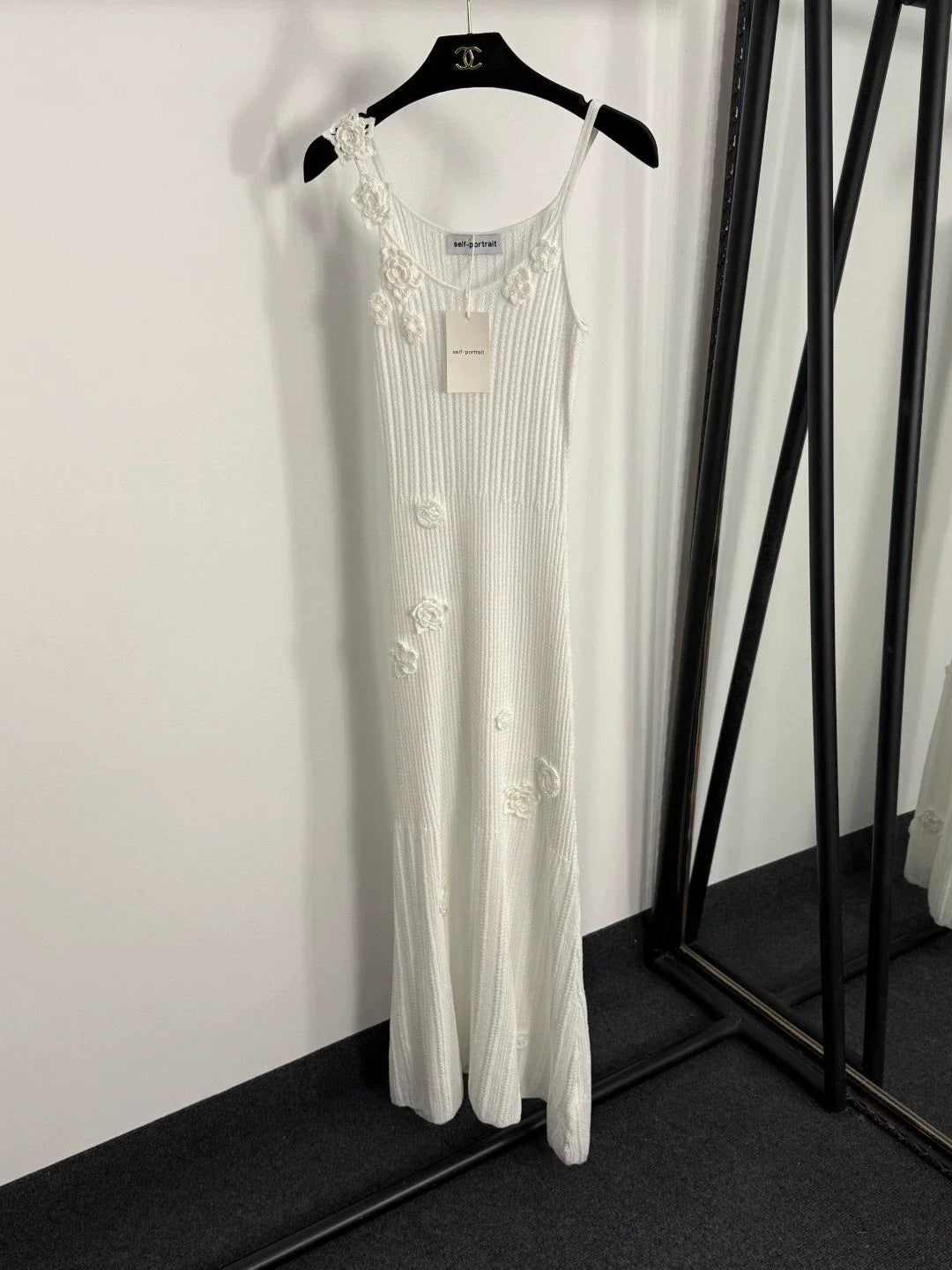 Heavy industry nail bead three-dimensional hook flower hollow silver silk blended knitted suspender dress long skirt