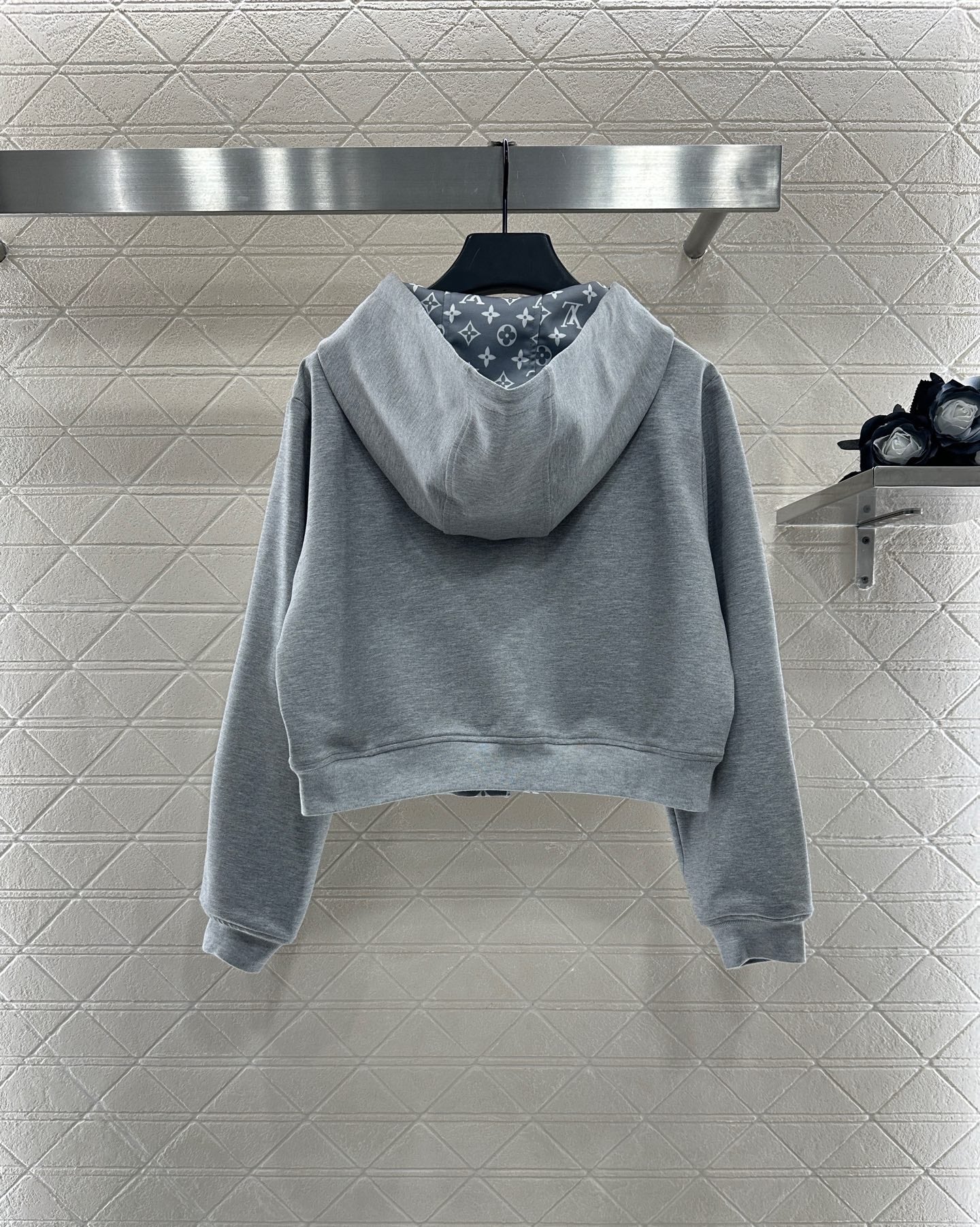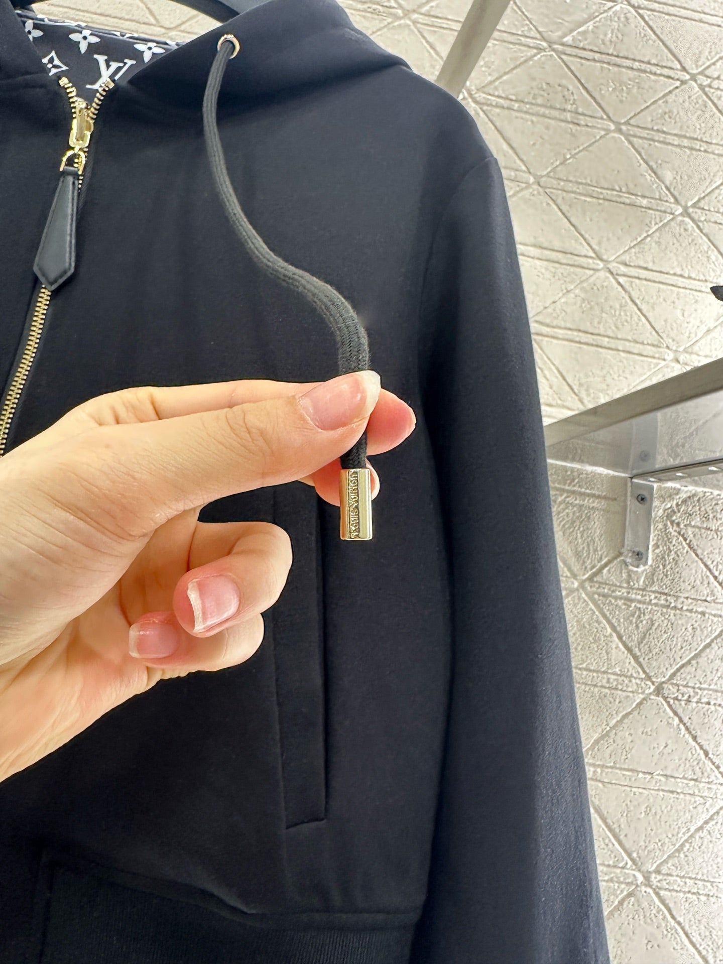 Texture, luster, comfortable, and flowing hooded short jacket with fashionable and casual cut. Designed to be worn on both sides and decorated with iconic floral letters on one side, the brand style instantly enhances with rich visual effects, making it more fashionable and versatile. Plain colors make it look slimmer and add vitality. Paired with straight leg pants of the same series that echo the style, drawstring adds personality and leisure to the overall look. A set of simple and high-end daily outfits is essential