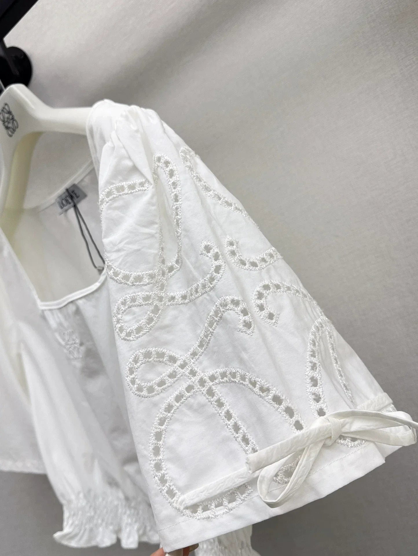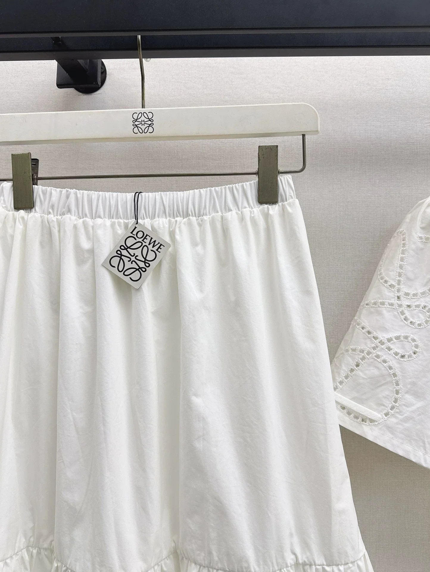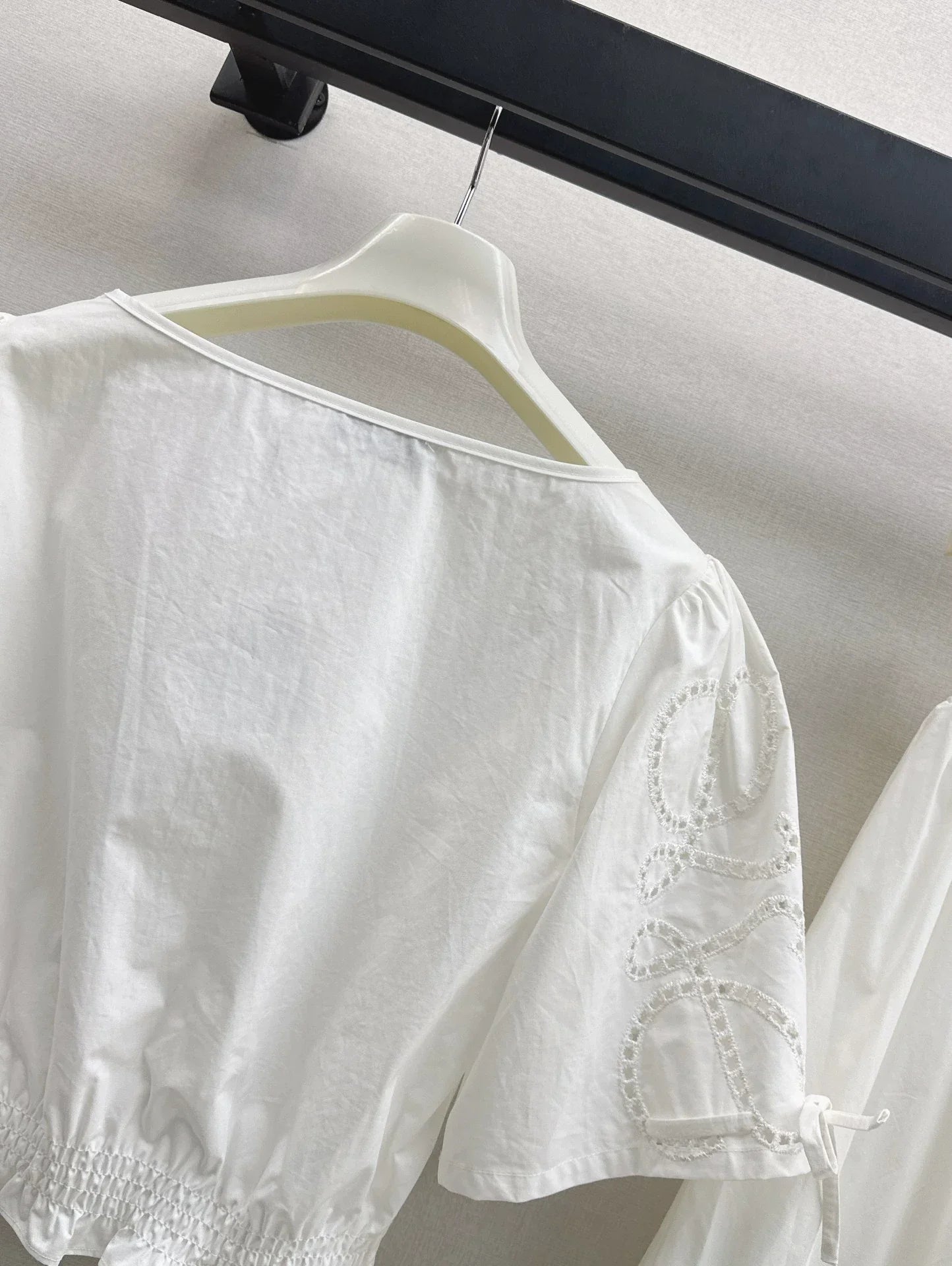 100% cotton, hollowed out logo embroidered bubble sleeves, white small jacket half skirt set, generous collar showing collarbone design temperament, small waist lace retro palace style, beautiful to the touch of no friends on the upper body