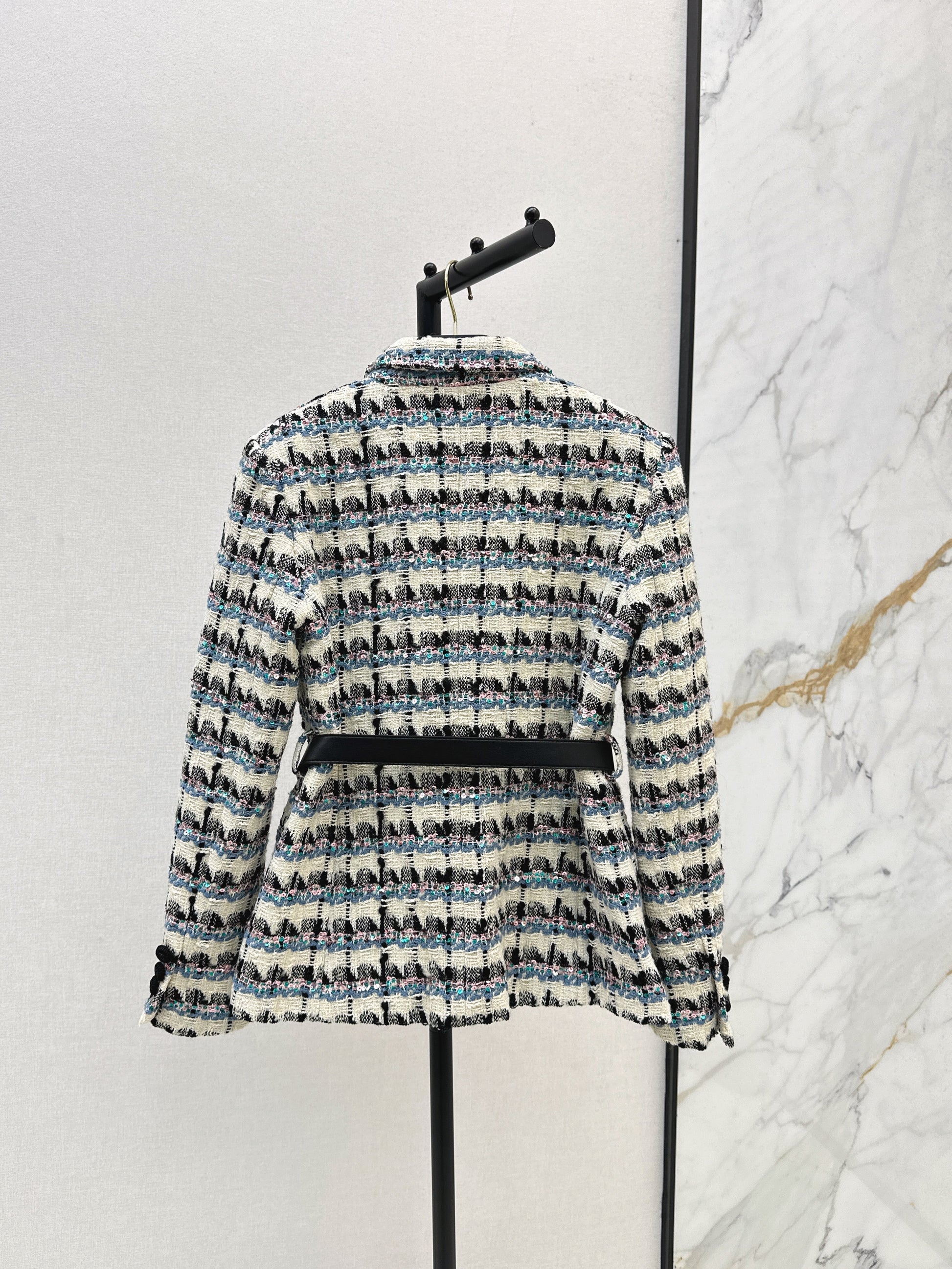 Bead colored yarn plaid woven soft tweed fabric, super beautiful three-dimensional slim fit version, huge slimming effect on the upper body, delivery belt
