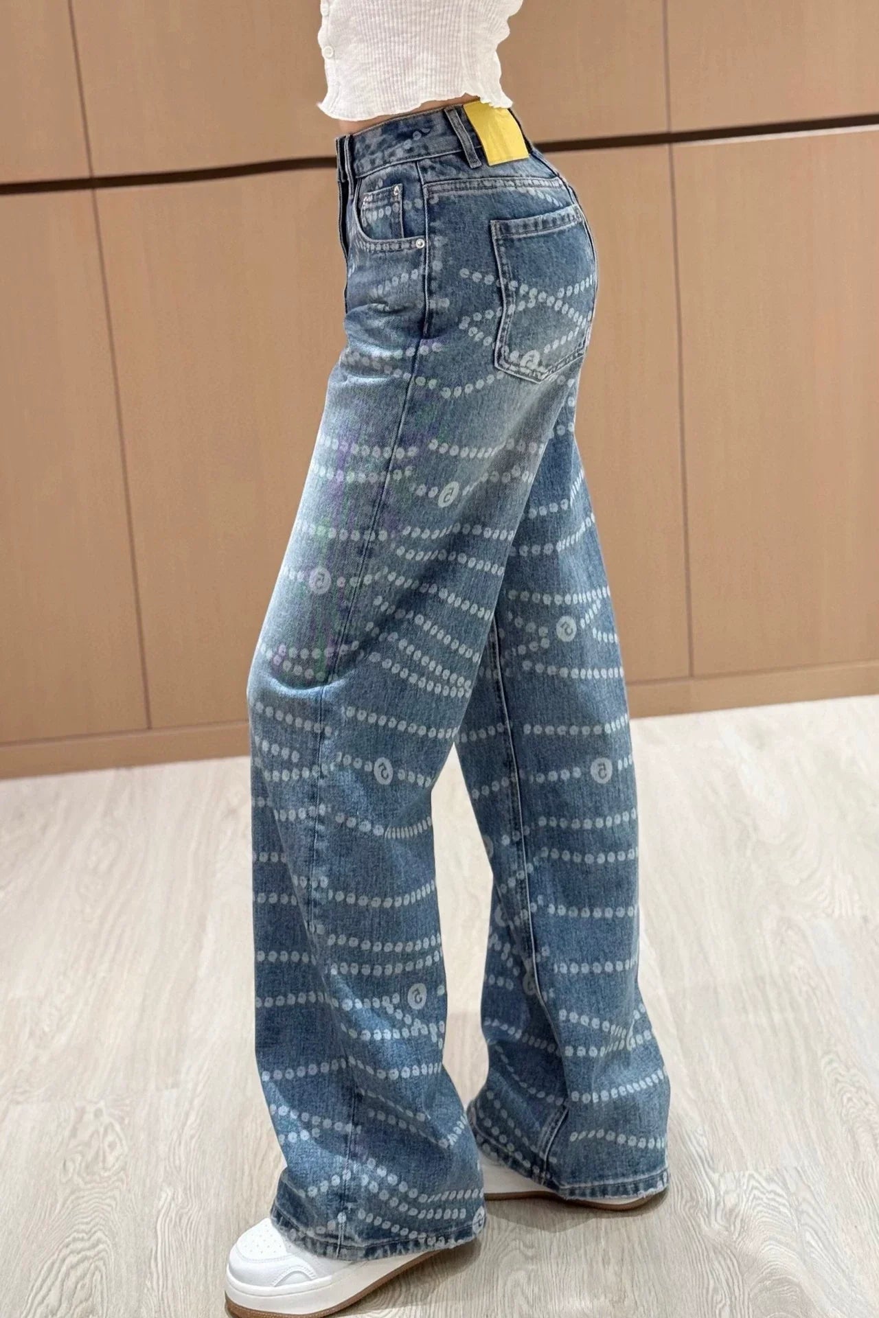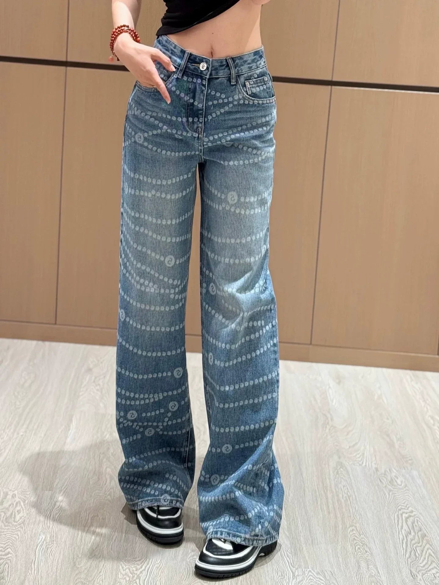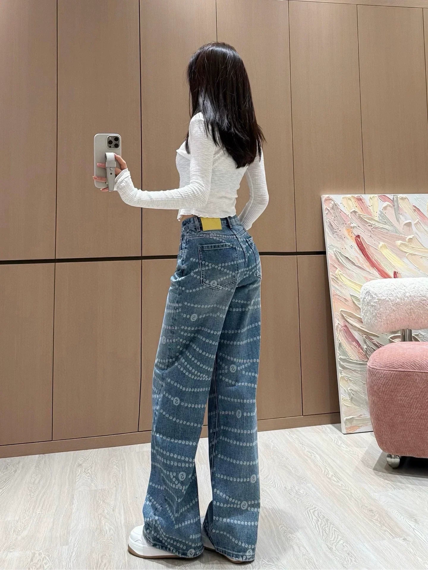 Polka dot laser burning craftsmanship! Customized fabrics! A must-have item for fair-skinned and wealthy women. A slimming artifact that looks great on the body! Customized high-weave organic pure cotton denim with a soft and delicate texture! The Japanese retro wash is fashionable and high-end! Customized perfect pants shape that makes the body look slimmer!