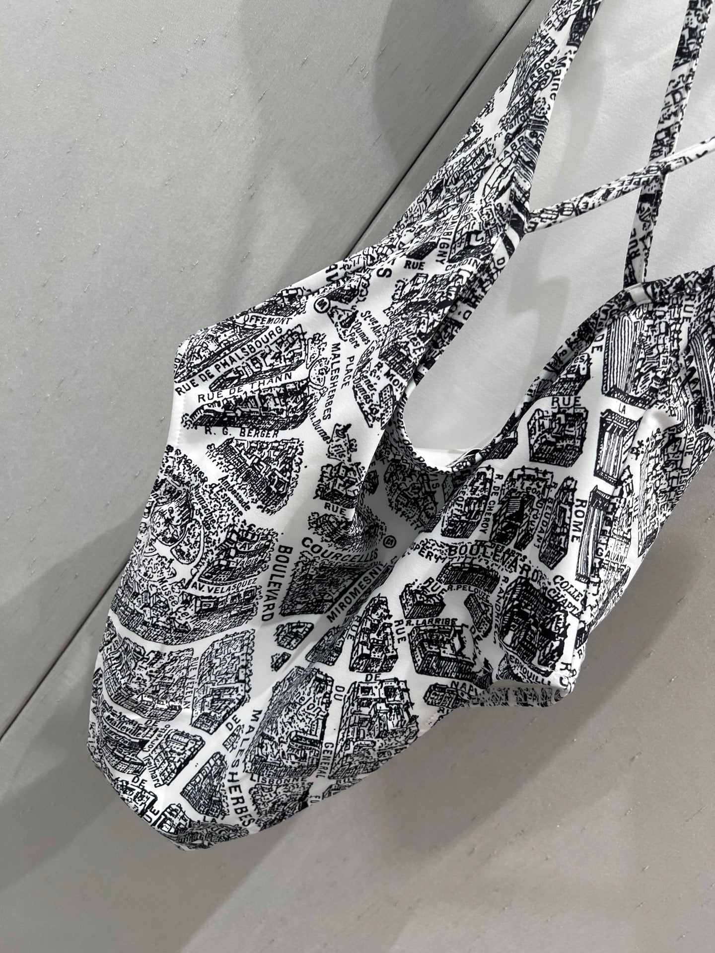 25ss Spring and Summer New Limited Edition Paris Map Printed Camisole One-Piece Swimsuit