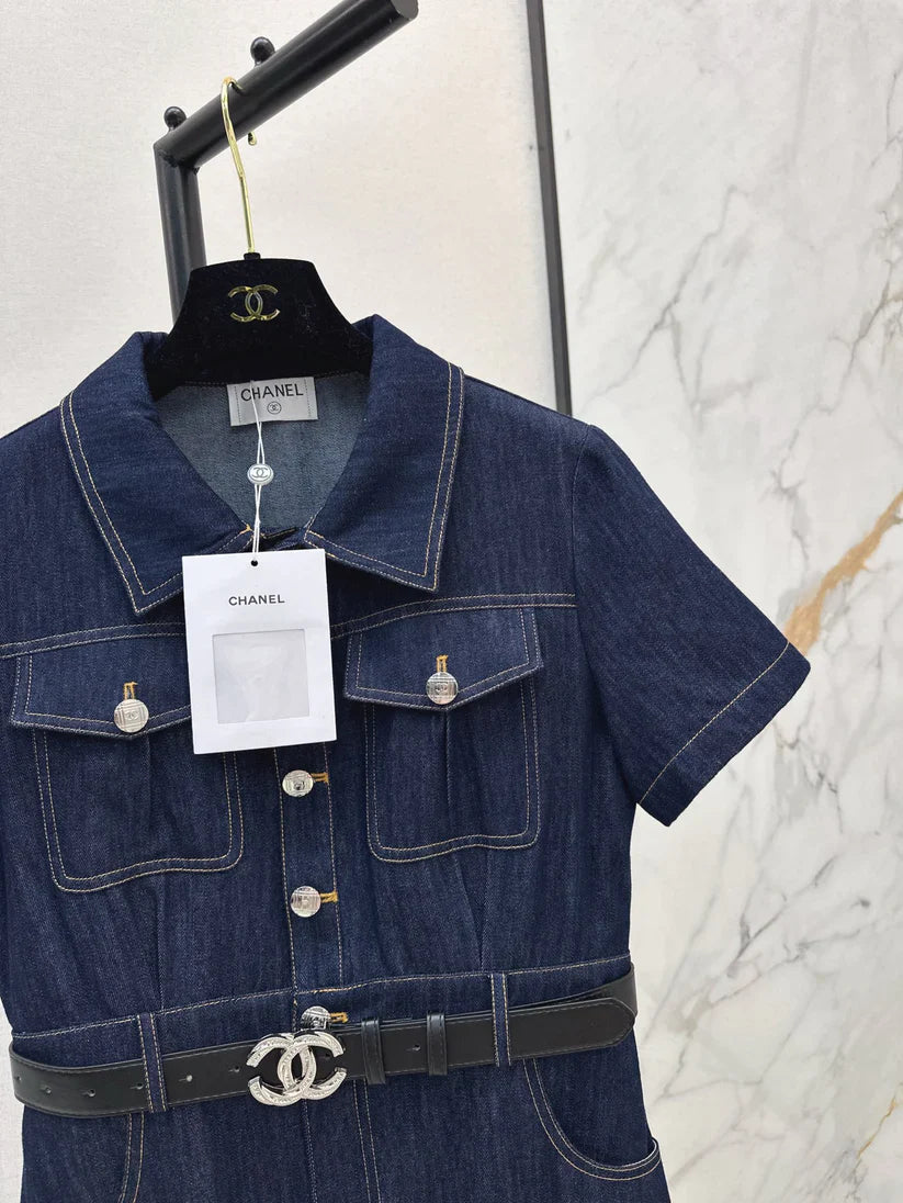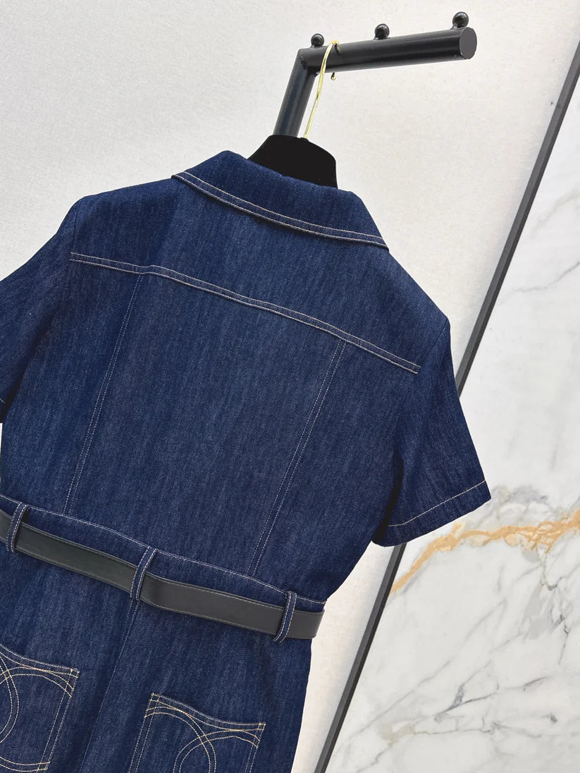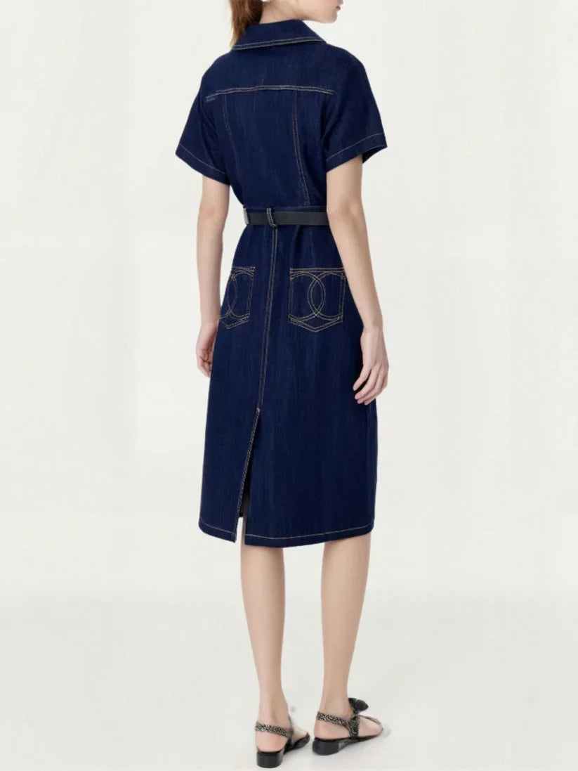 Back Pocket Embroidered Denim Midi Skirt
