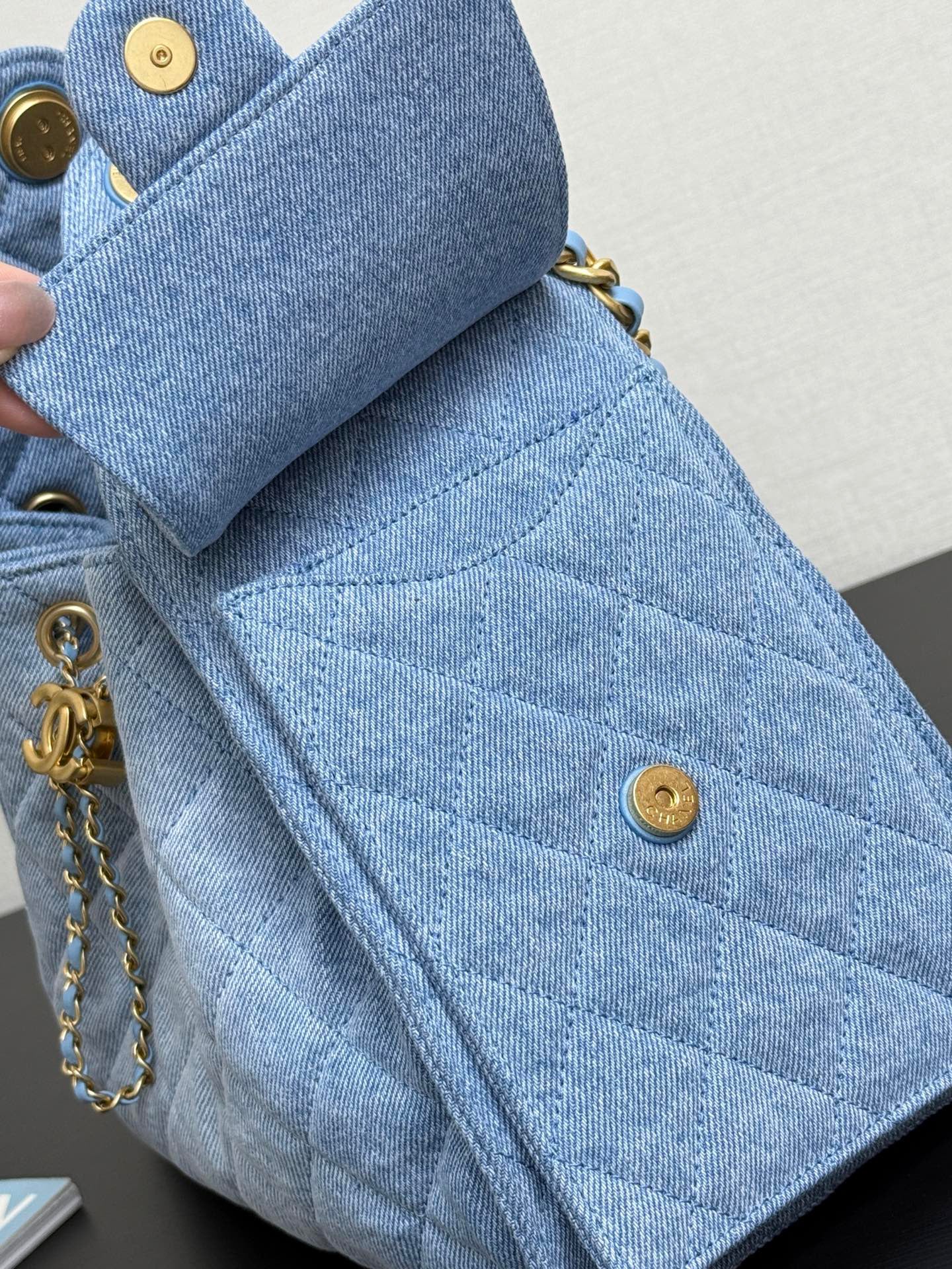 Denim Light Blue Bucket Drawstring Bag