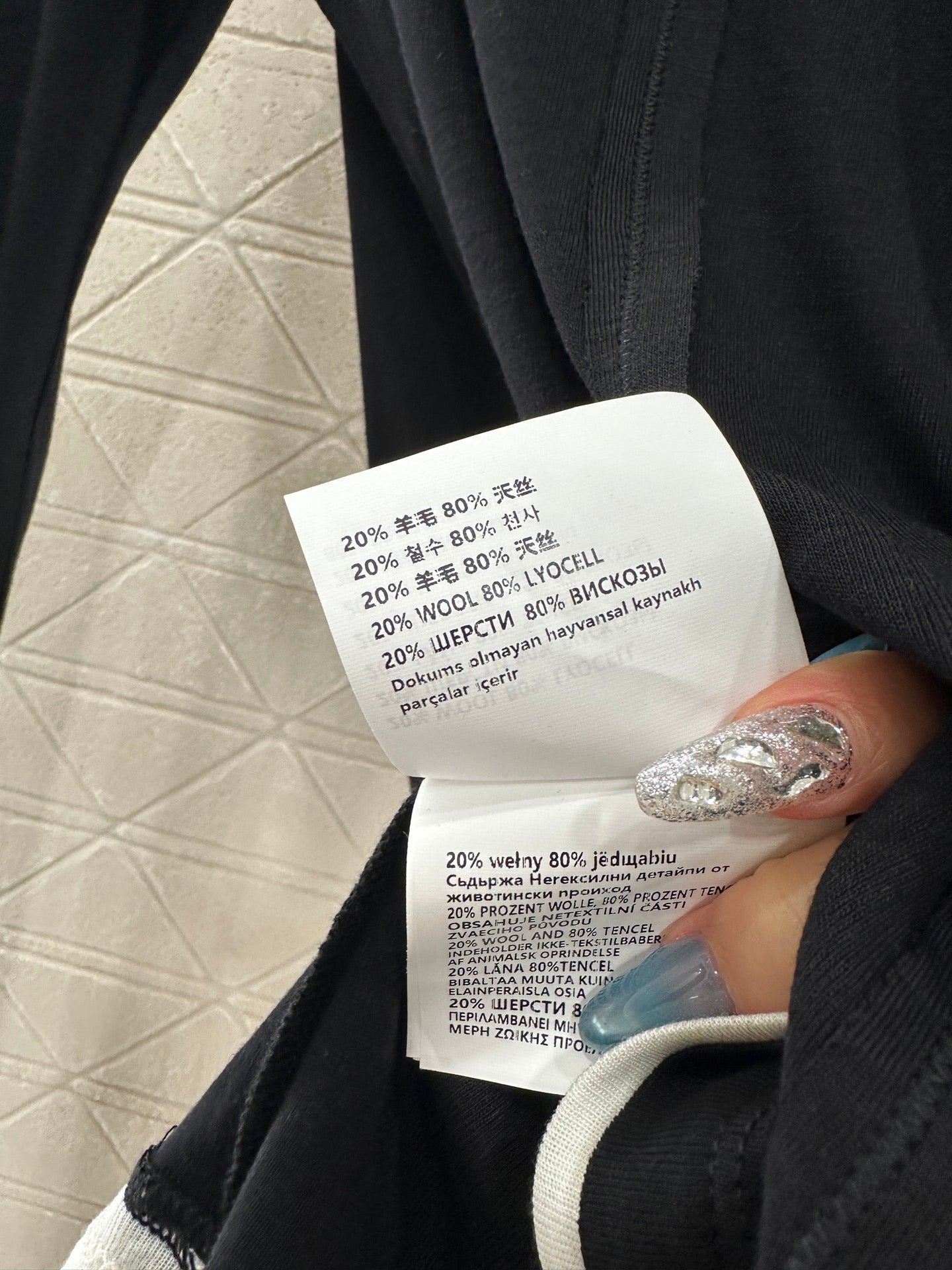 Tencel wool material is skin friendly, breathable, and full of elasticity. The round neck fake two-piece contrasting color splicing adds layers and influences the body. The Korean drama female lead is stylish and fashionable. The chest is decorated with letters and square logos to show the brand tone. The slim fit is designed to outline curves and get rid of bulkiness. It is fashionable to wear it alone in autumn and winter, and easy to control for daily commuting