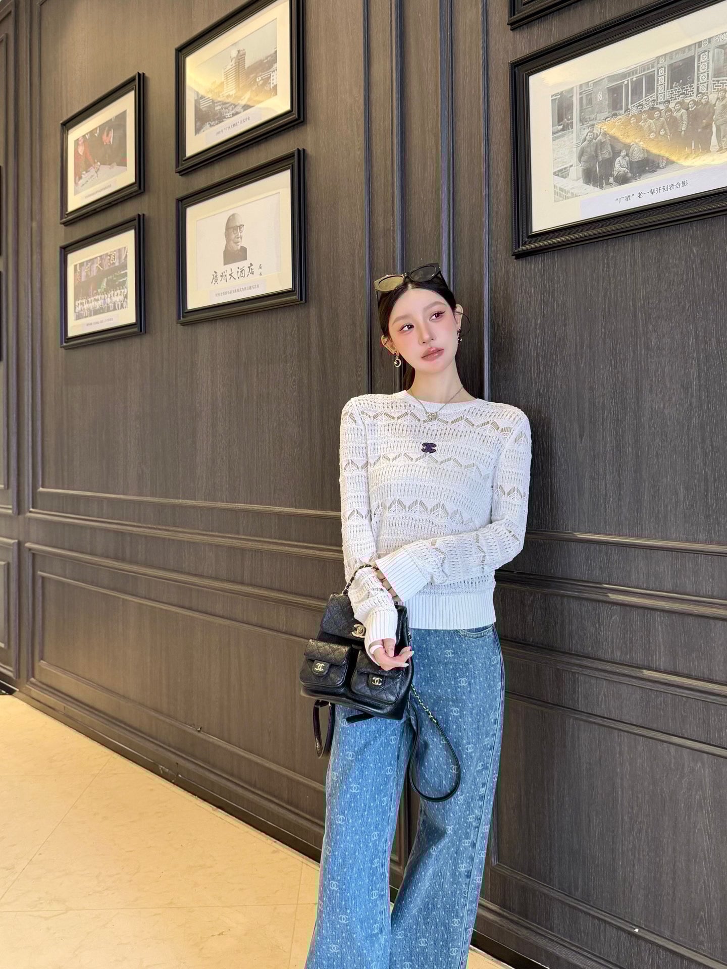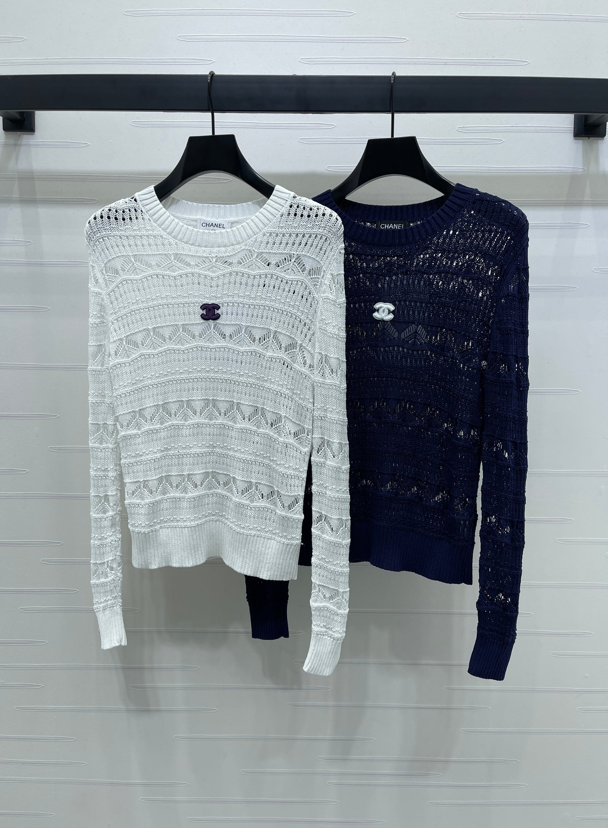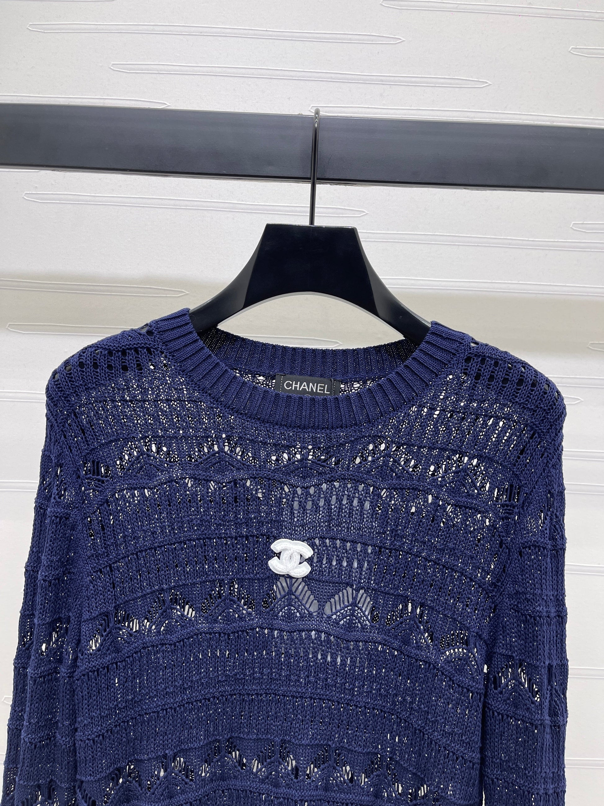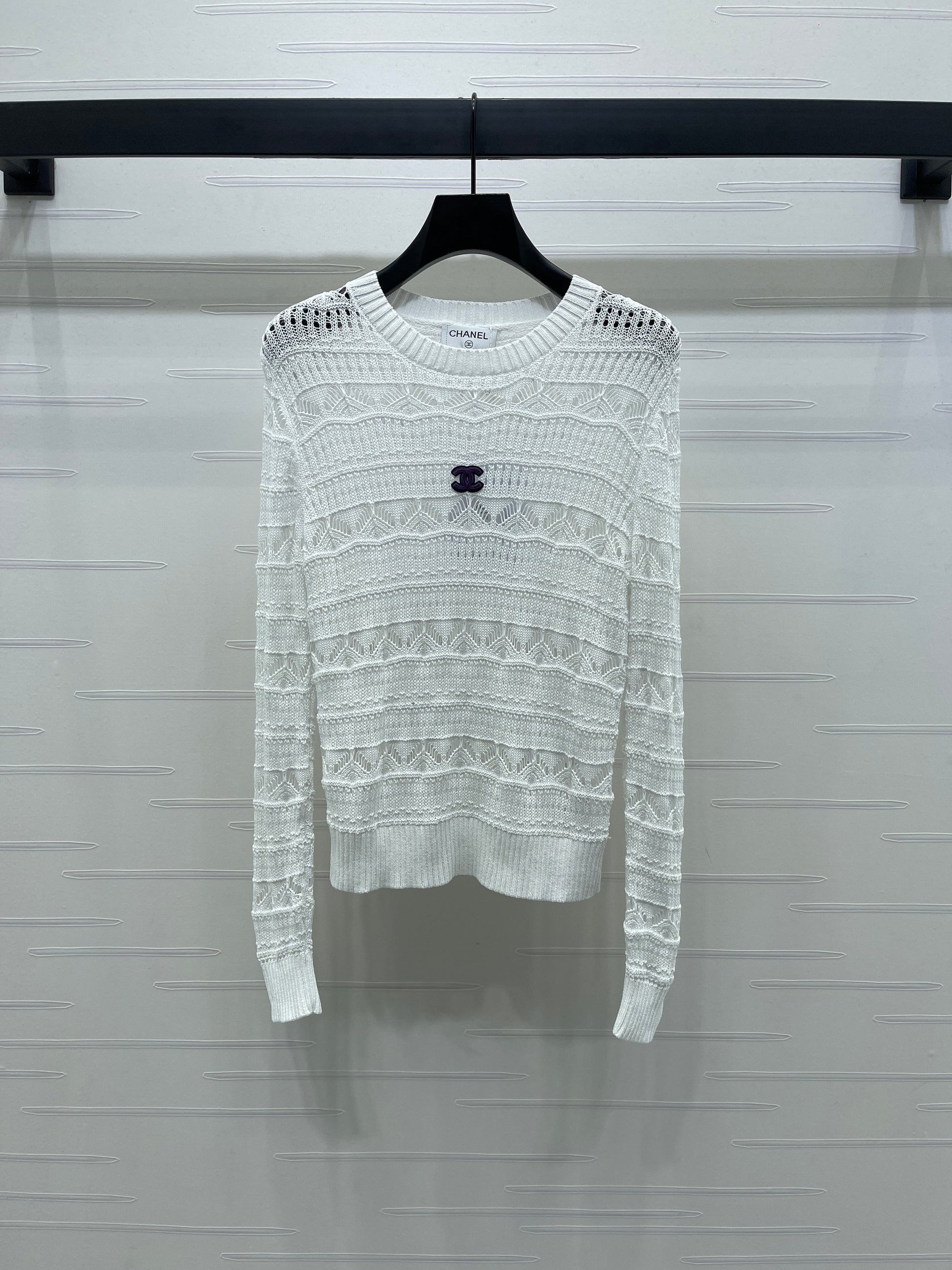 Custom-made wool yarn knitting, comfortable and soft, with excellent elasticity. Round-neck knit vest cut, using high-end stitching techniques, with all-over lace-knit patterns and intricate hem detailing, adding a literary touch to simple outfits. Premium tailoring flatters all body types. The double C logo on the chest adds a playful touch, effortlessly showcasing a cute and stylish vibe. Slim-fit silhouette, slim and fashionable. Perfect for wearing alone or layering in all seasons. 👌