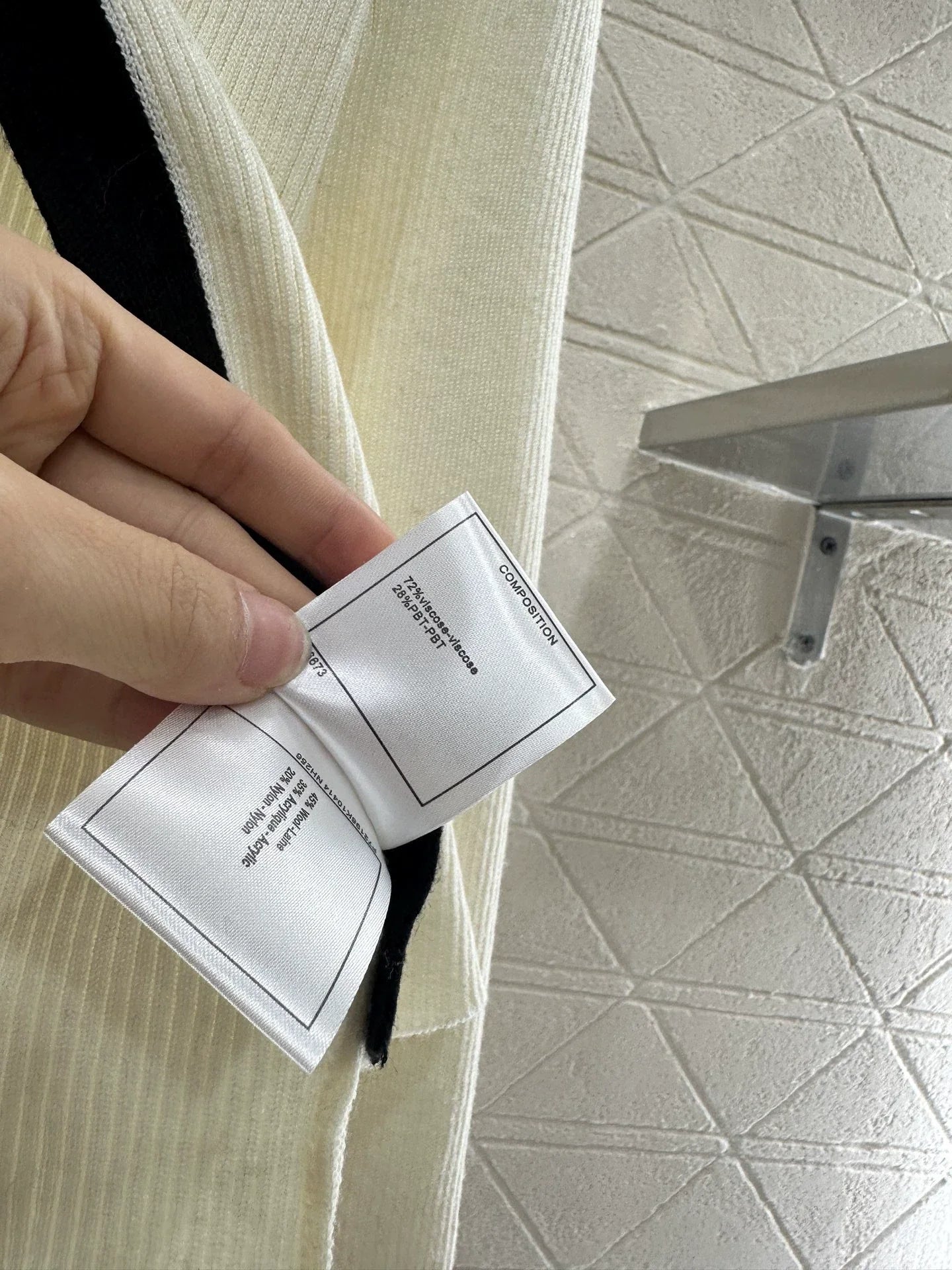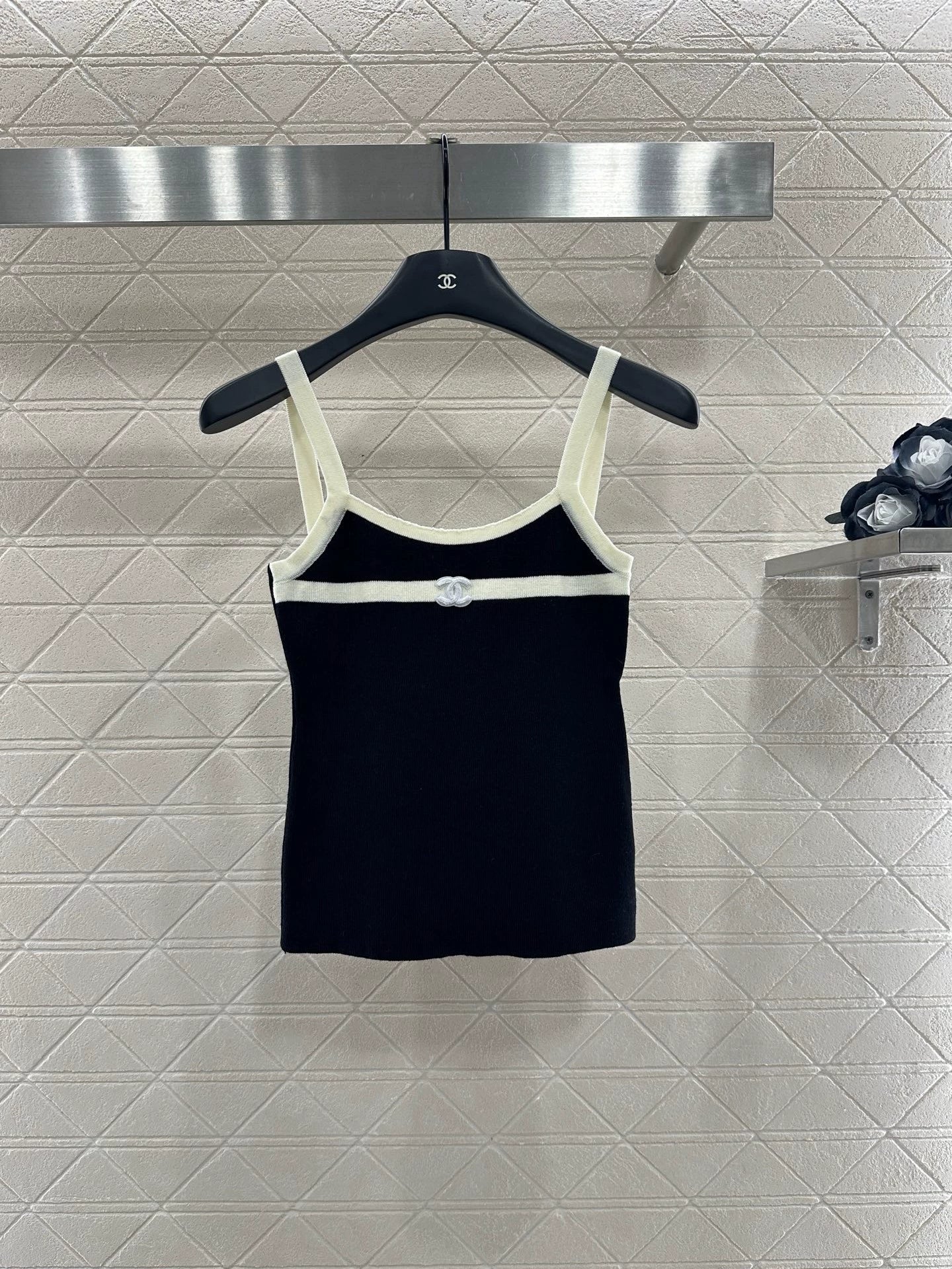 Wool yarn weaving texture premium comfortable suspender paired with cardigan two-piece design vest thin suspender and chest decoration with contrasting color edging to highlight the iconic double-C logo pattern, highlighting the brand personality and high-end sense of wearing. Paired with a short cardigan and chest rhinestone double C-buckle connection cardigan, the simple style exudes charm and temperament. The vertical pit strip fabric is elastic and elastic, making it more exquisite. It also covers the upper body and makes it slim. The wearing style shows a relaxed tone