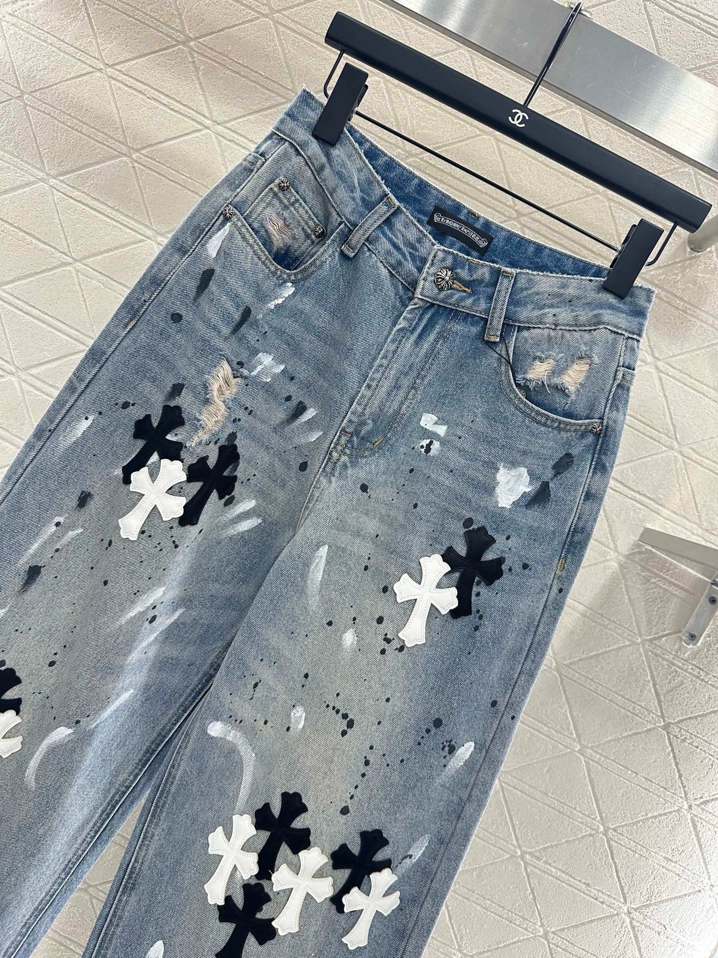CH 25 new ink-splashed cross logo jeans