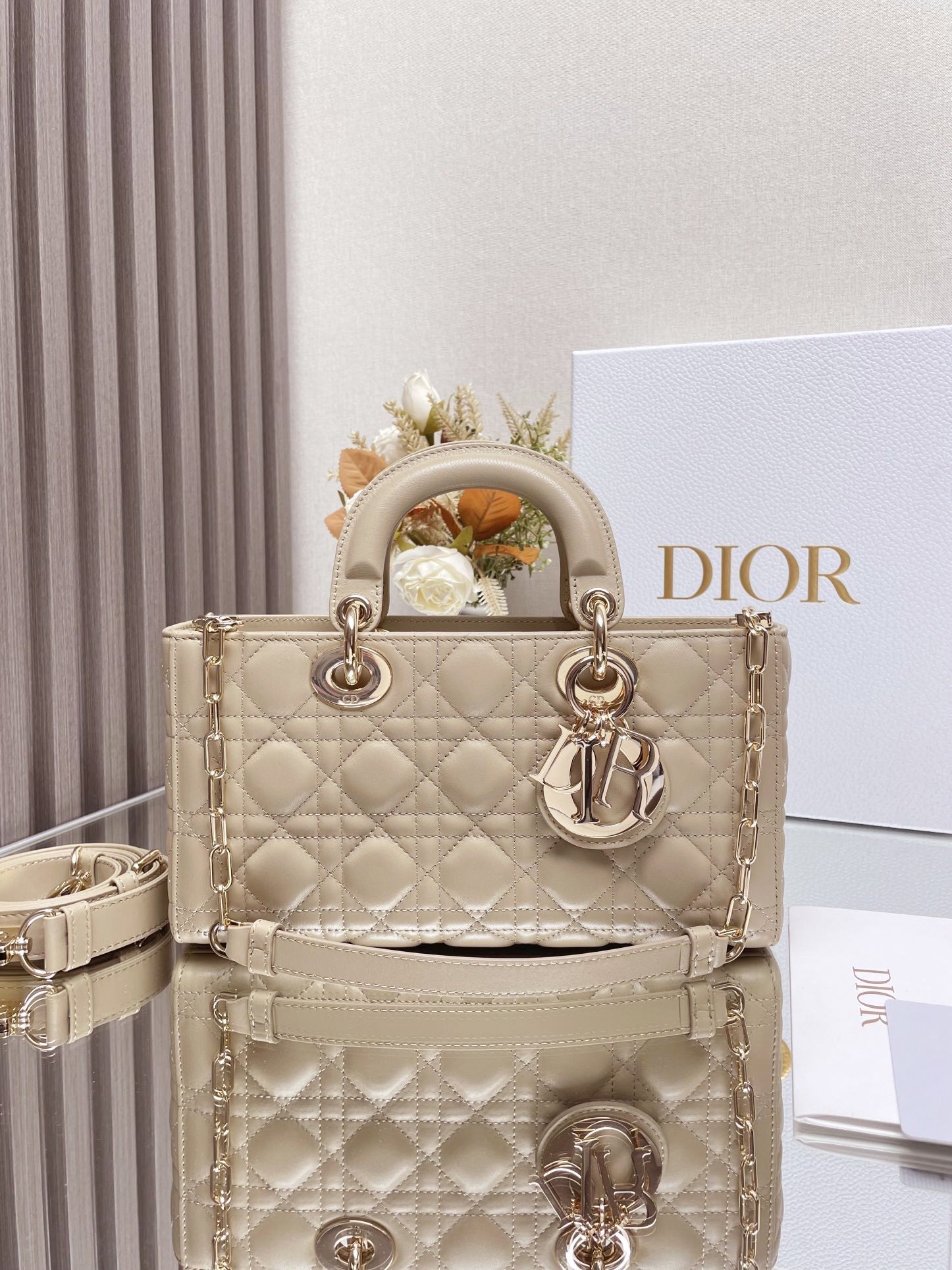 Micro / Small / Medium Lady D-Joy Bag Sand-Colored Cannage Lambskin
