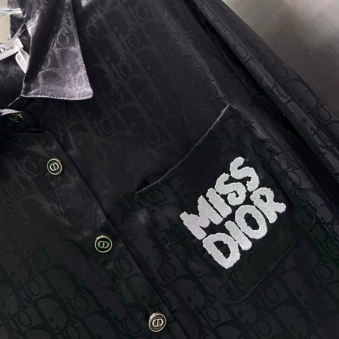 Fashionable Pearlescent Jacquard Fabric Letter Embroidery Shirt