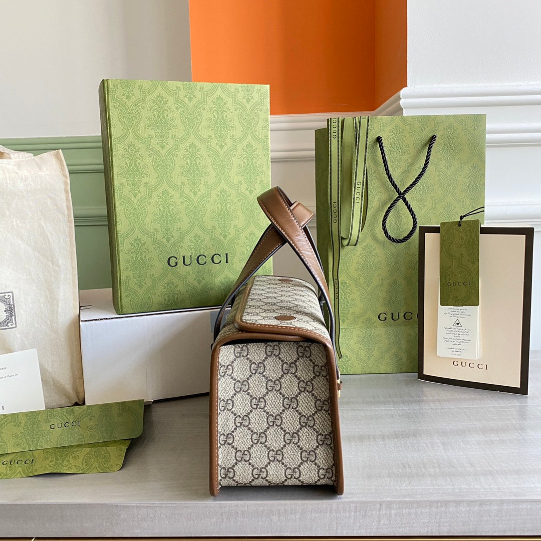 - Beige/ebony GG Supreme canvas, with brown leather trim