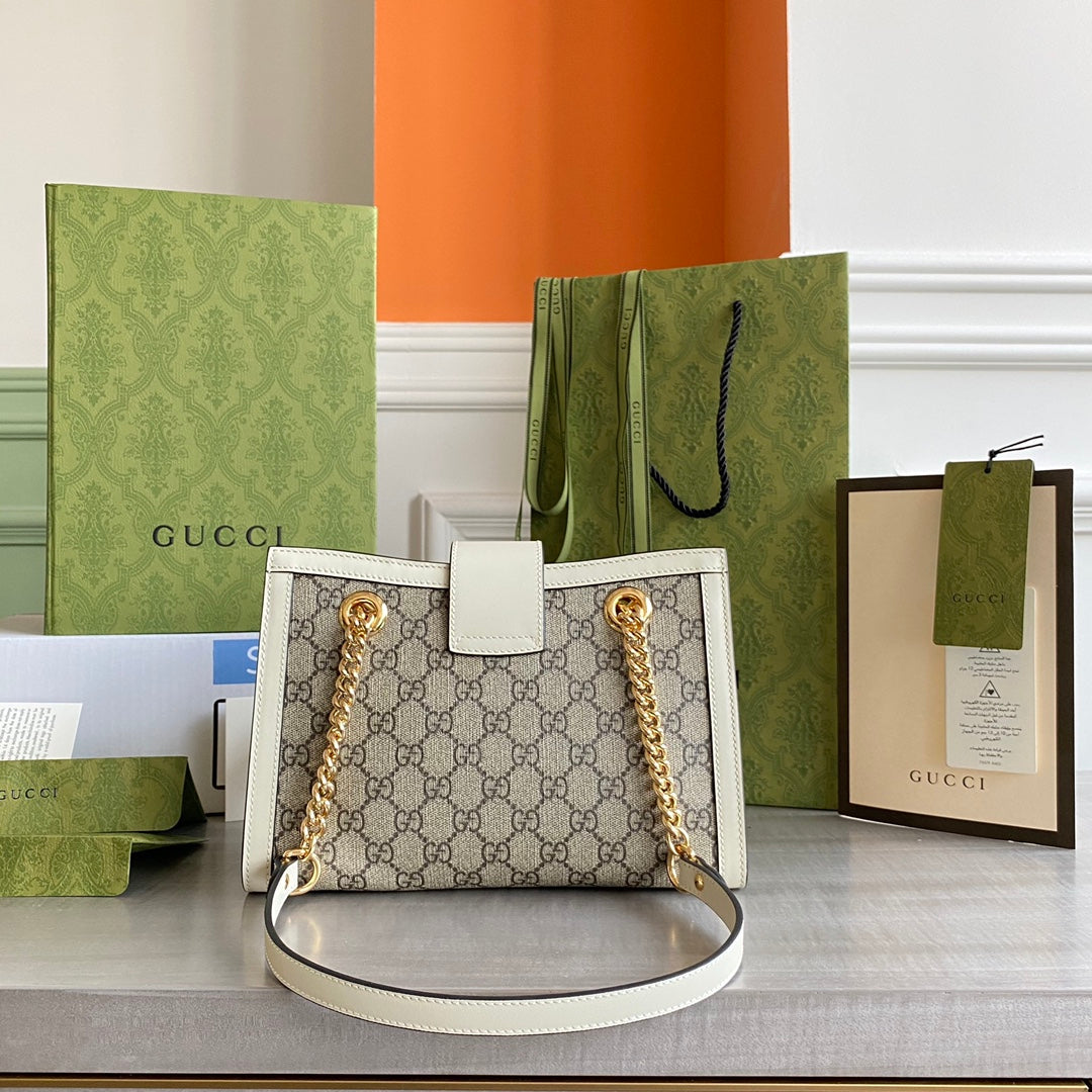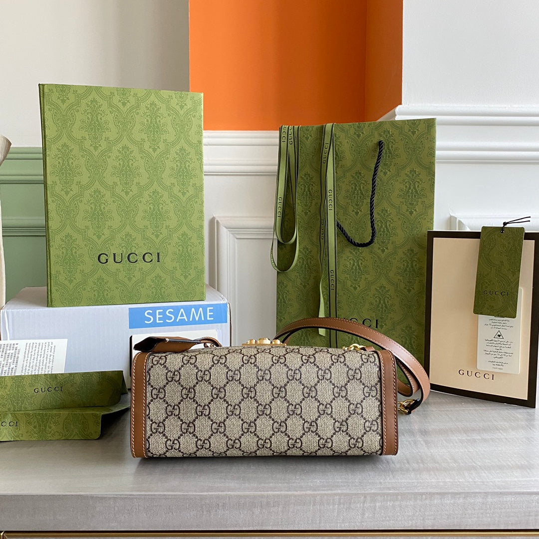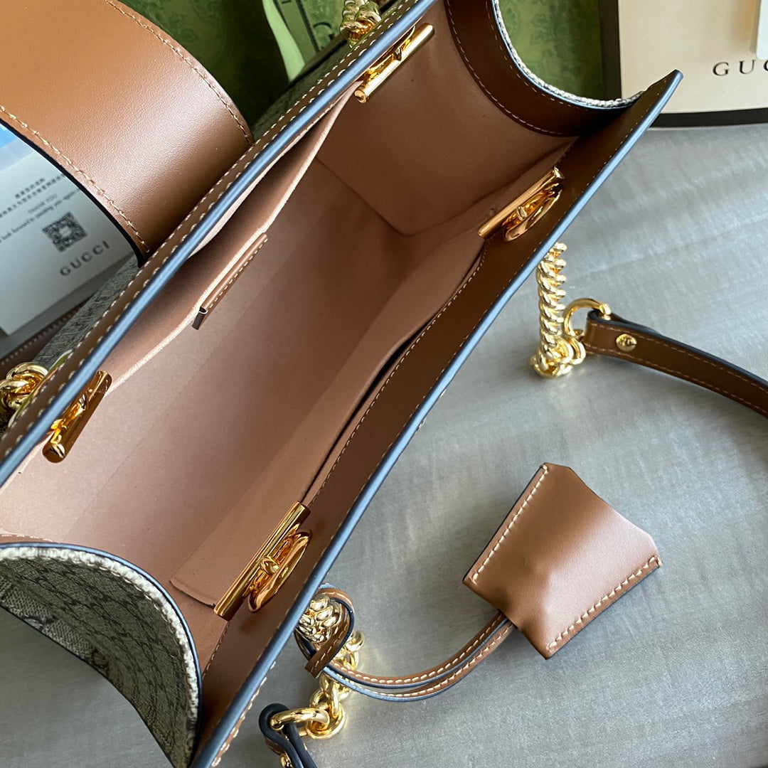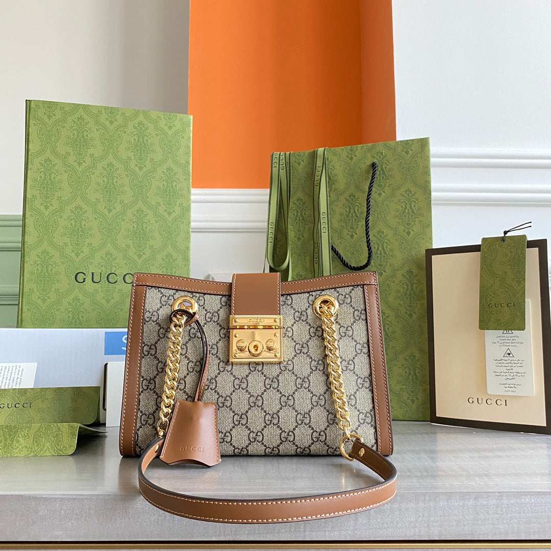 Padlock small shoulder bag Beige/ebony GG Supreme canvas, with brown leather detail