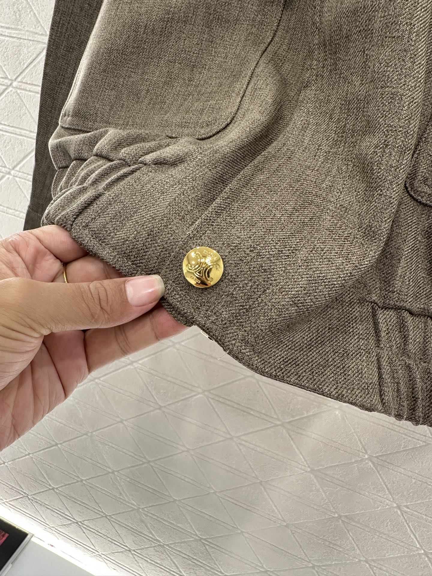 High quality texture, full of appearance, jacket jacket ➕ A high waisted half skirt set, with a fashionable college style upper body. Shoulder shaped baseball jacket with symmetrical flap pockets ➕ Triumphal Arch pattern on the chest, gold snap button design, low-key and fashionable, highlighting the overall brand tone. High waisted pleated half skirt with slightly flared skirt hem ➕ Wrinkle treatment, anti-aging tool, effortless matching, high-end fashionable style, both can be very versatile items when separated 🉑 Meet multiple needs with matching