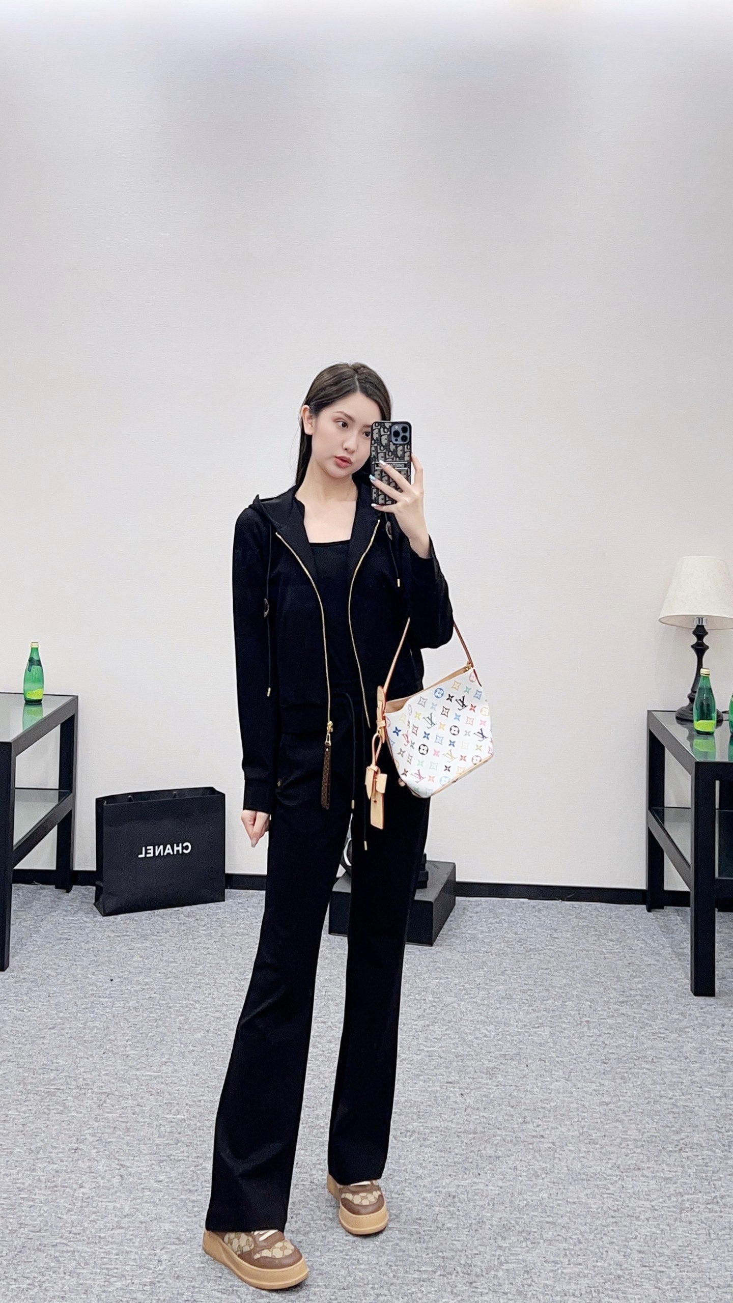 The twill cotton material has a glossy and comfortable texture. The hanging hooded jacket is cut in a fashionable and casual style, with a plain color that is versatile and durable. The zipper and leather buckle are decorated with the iconic old flower letter logo, instantly enhancing the brand style. The visual effect is more fashionable, and the drawstring is used to adjust the upper body, making it look slimmer and more energetic. The drawstring is used to match the style of the same series of straight leg pants. The drawstring is more personalized and casual, increasing the sense of style. The complete set is matched with a simple and high-end daily set, which is essential for daily casual wear