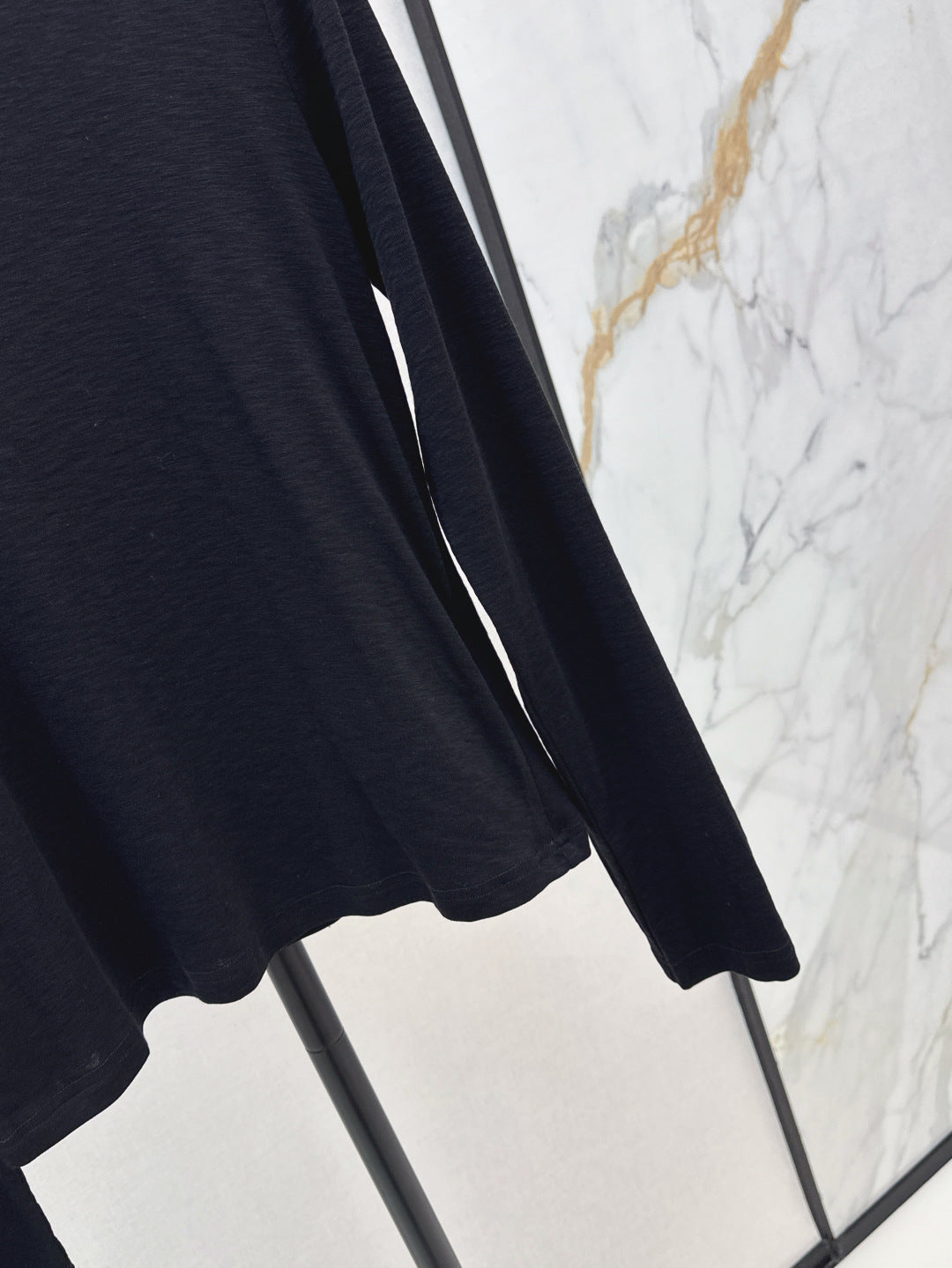 Imported cotton material with comfortable texture and elasticity, easy to wear round neck, long sleeved base cutting, collar thread edging, solid color, versatile and durable, iconic totem logo decoration on the chest to get rid of boredom, slim fit, tailored to fit the body, slim and high-end, elegant in autumn and winter, suitable for daily commuting, dating and leisure