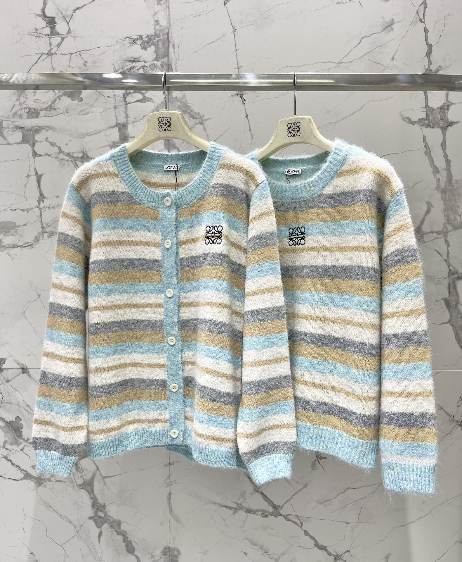 25 New embroidered logo striped knitted cardigan