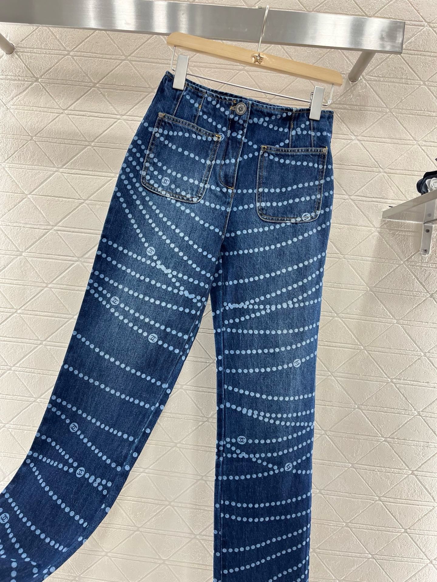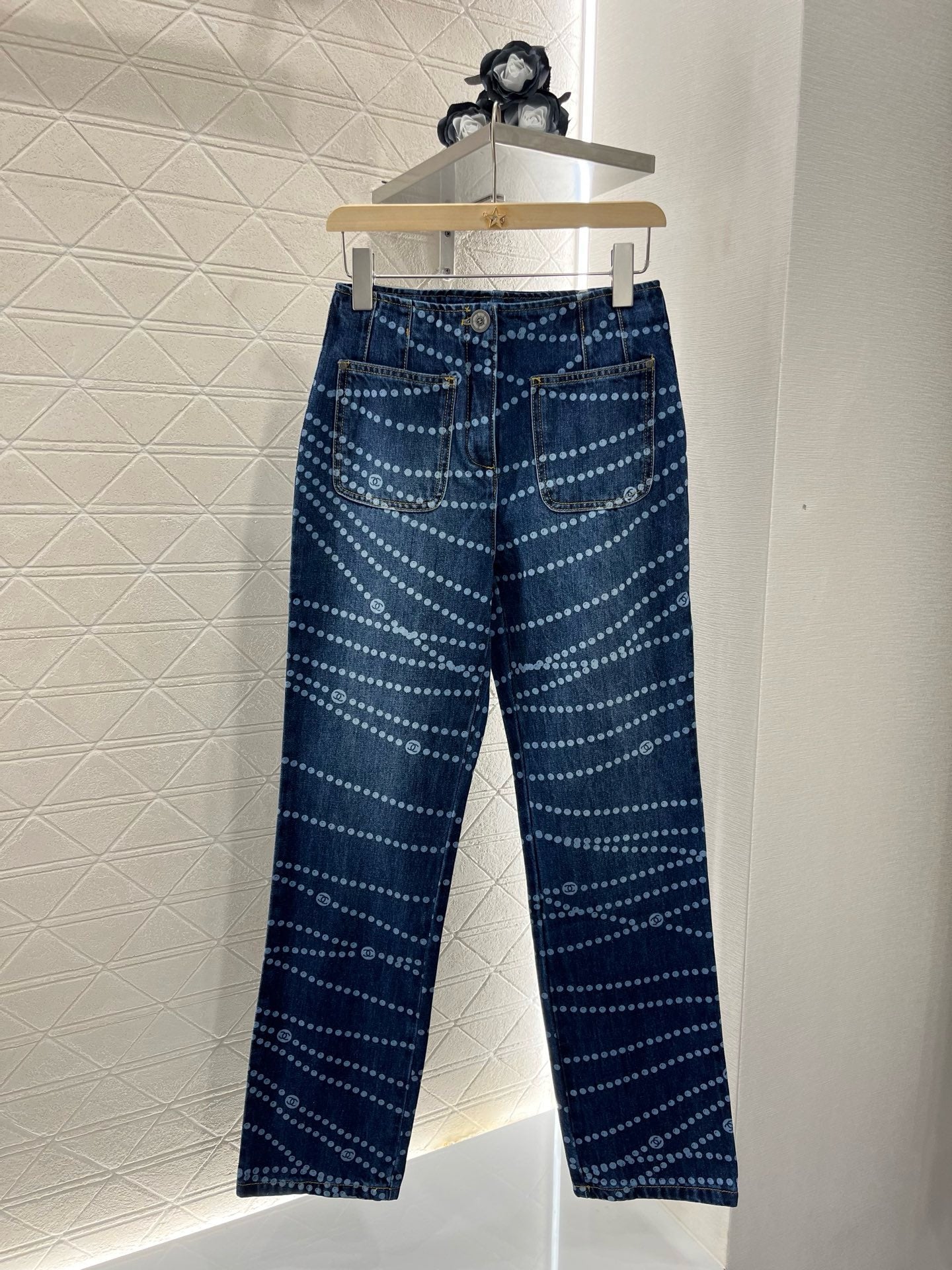 2025SS New Product Laser Pearl Chain Pocket Jeans