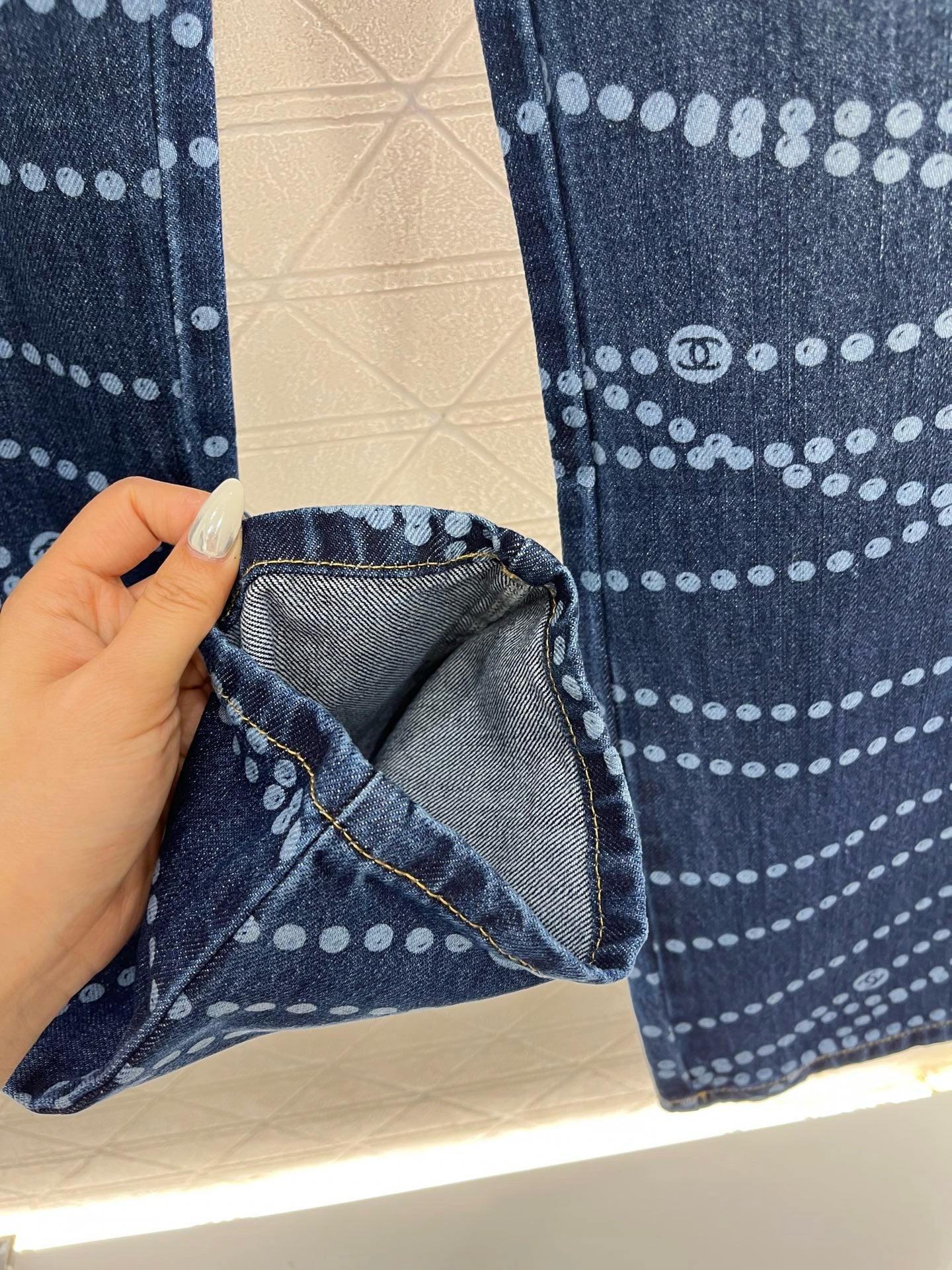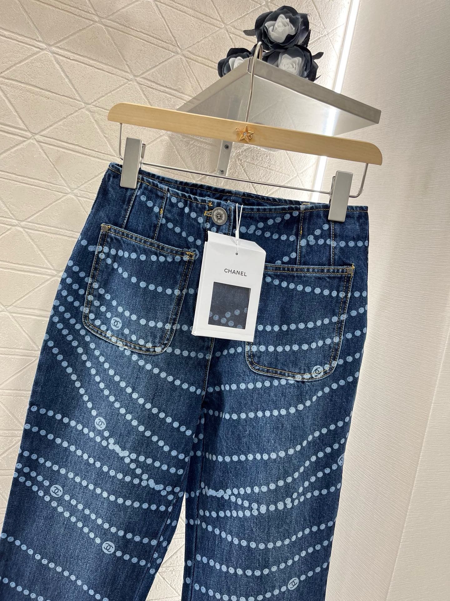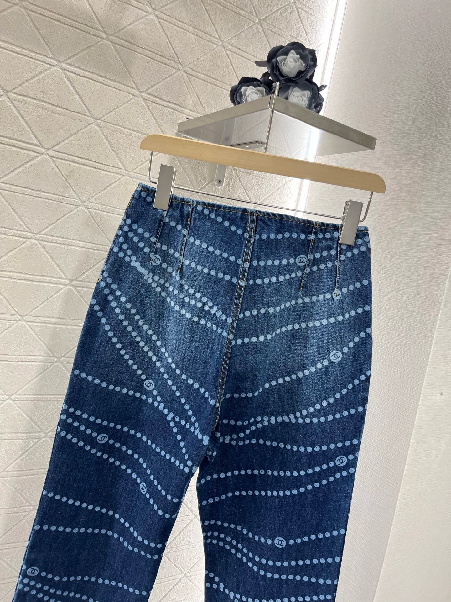 Transform your denim game with Chane* 2025SS New Product Laser Pearl Chain Pocket Jeans. The laser pearl chain pockets add a touch of luxury to the classic silhouette. Elevate your style with these exclusive jeans that are perfect for any occasion.