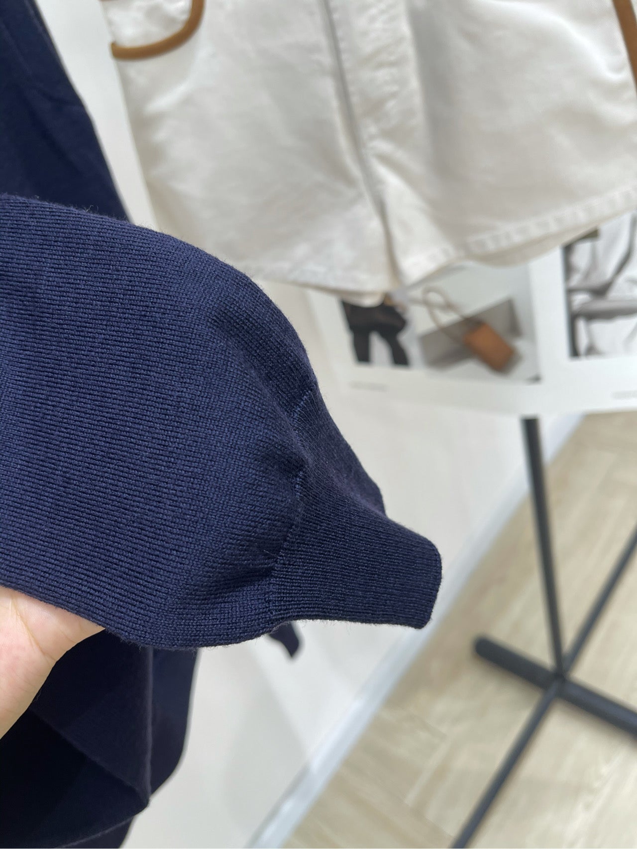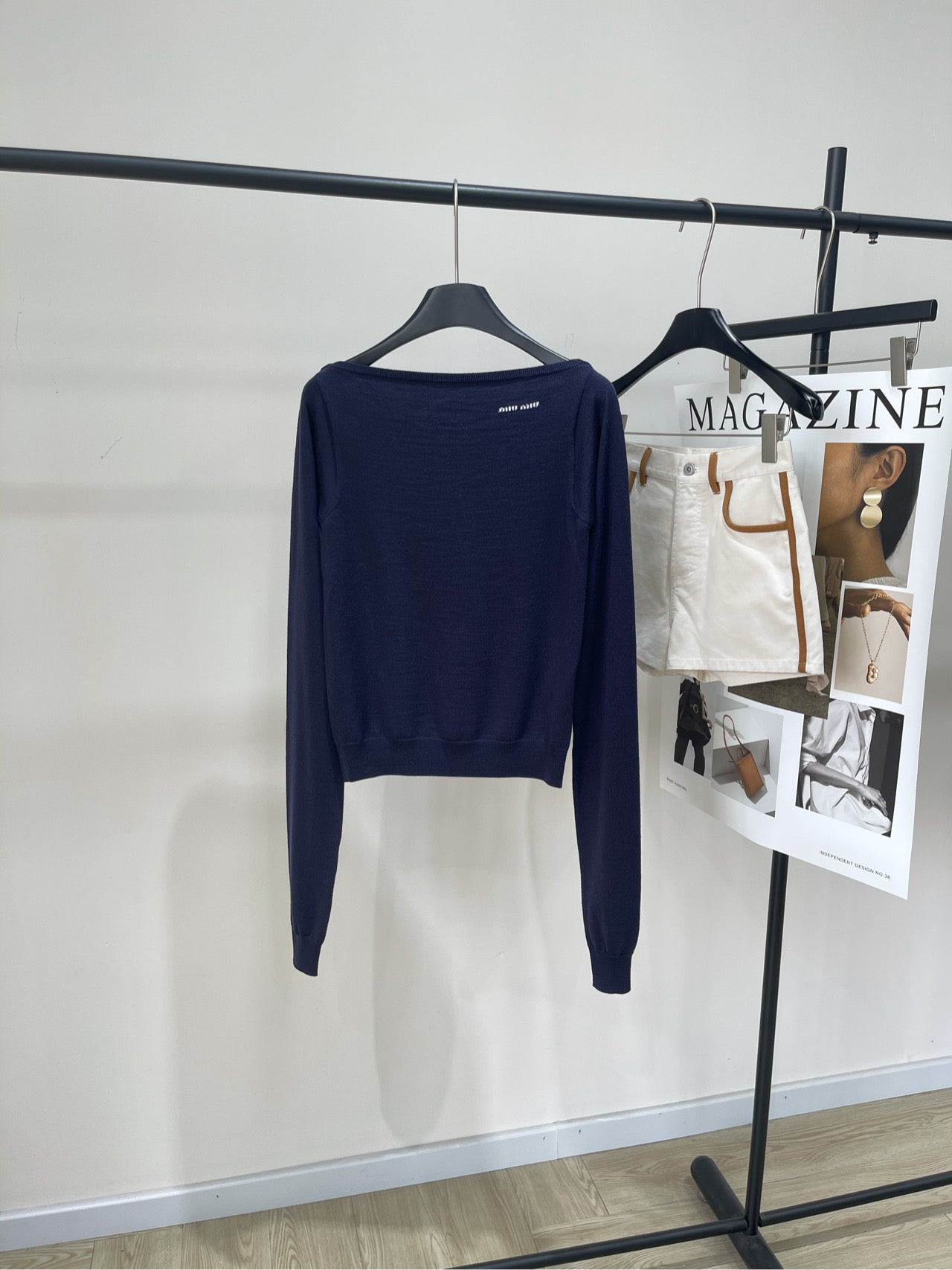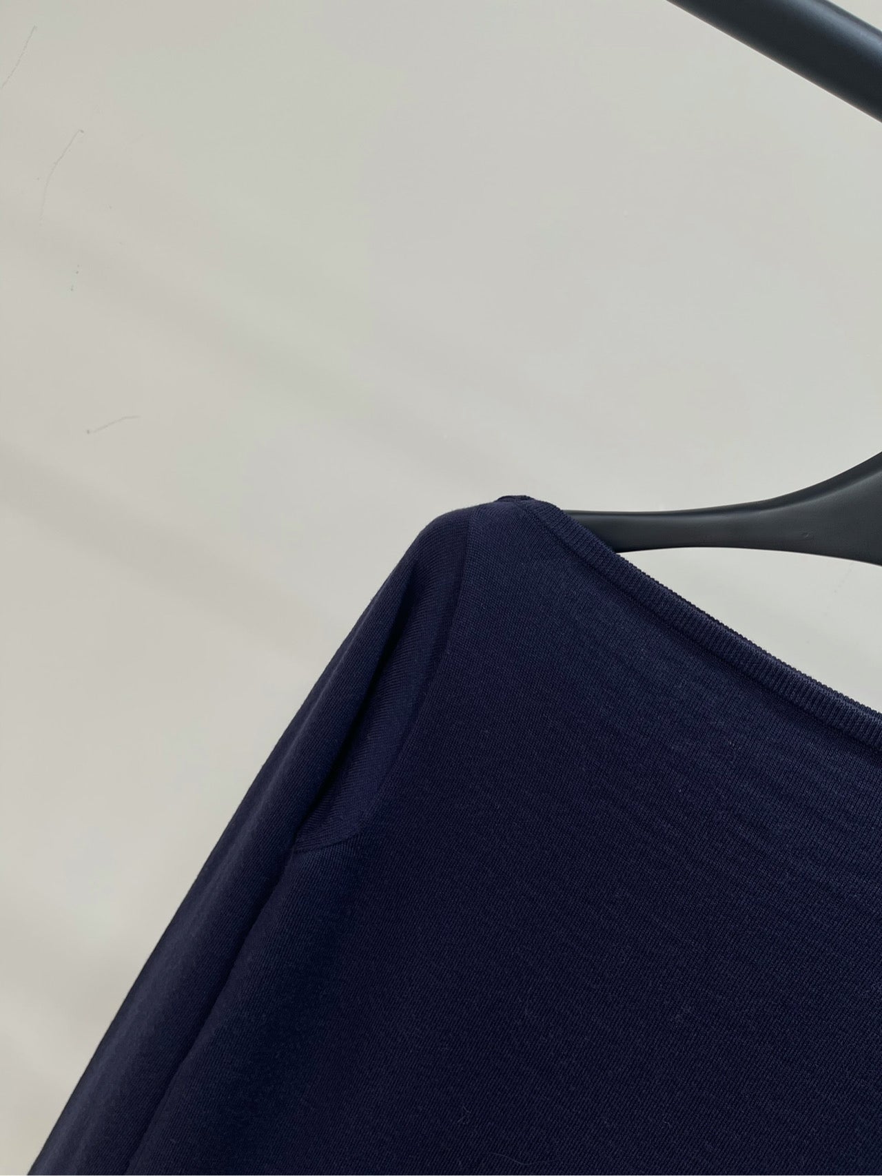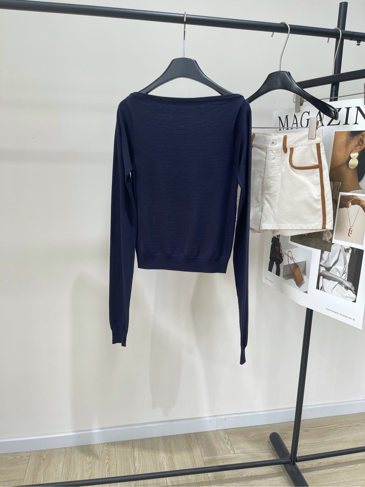 M 25 navy blue long-sleeved sweater with one-shoulder collar