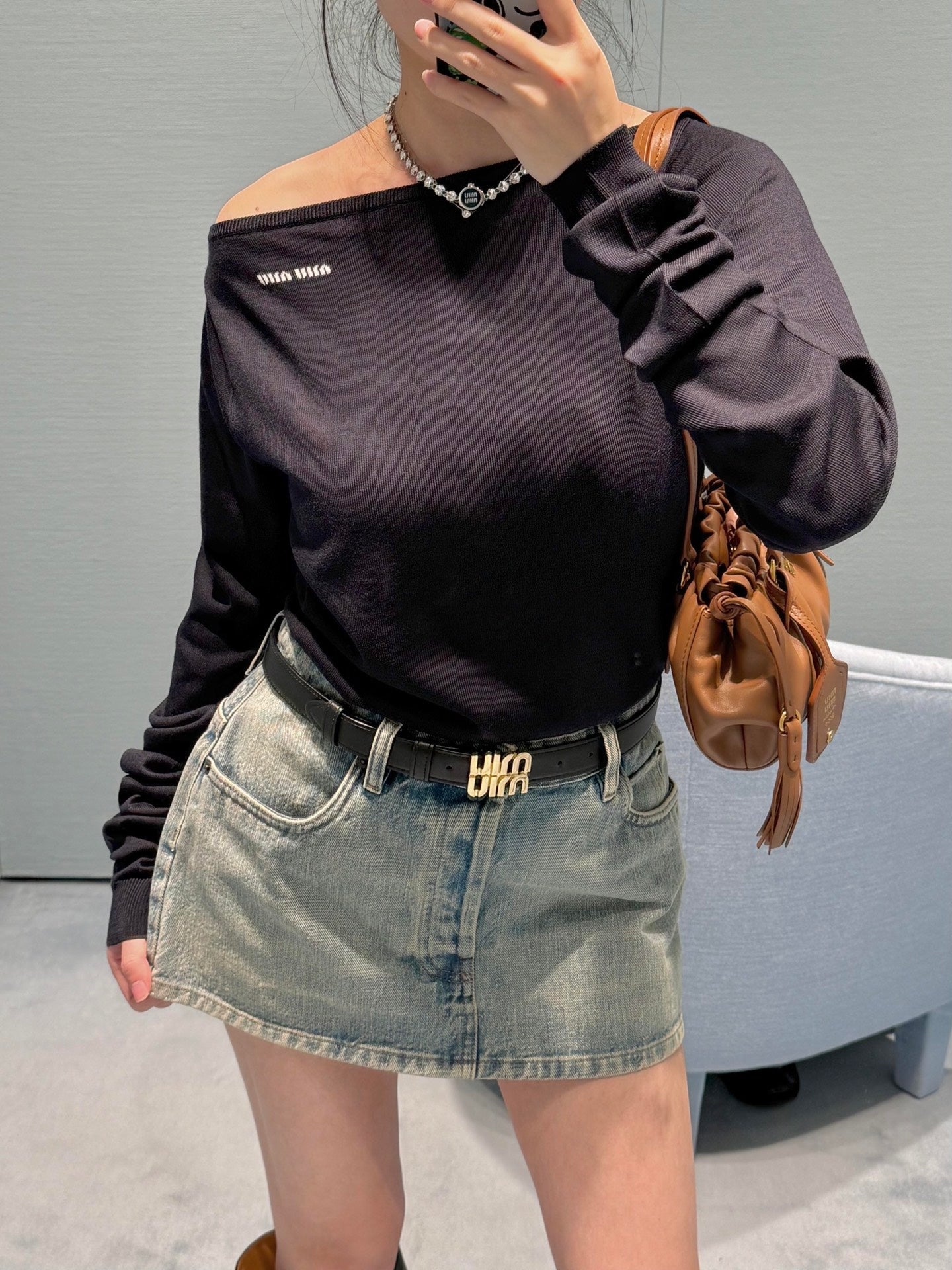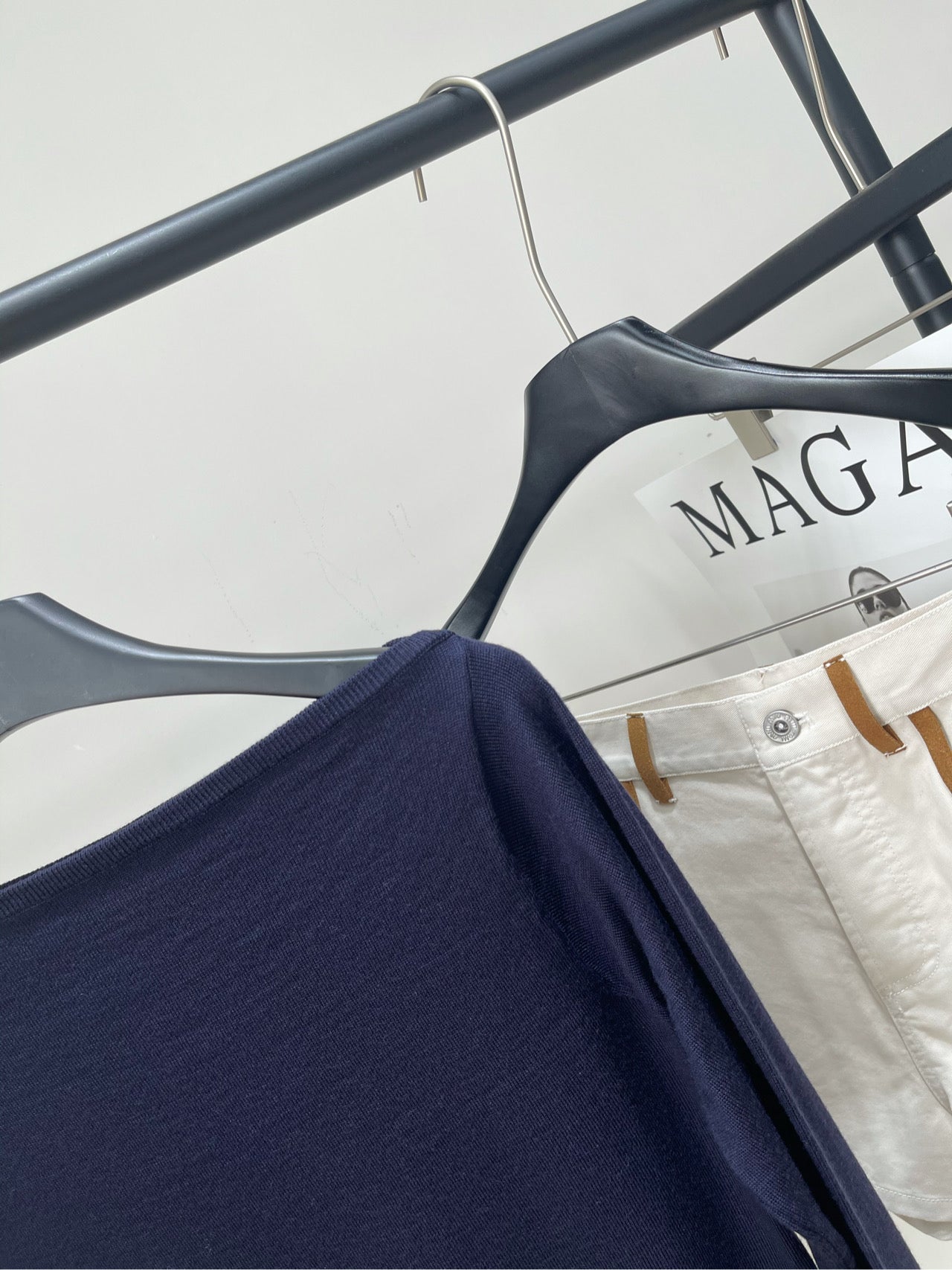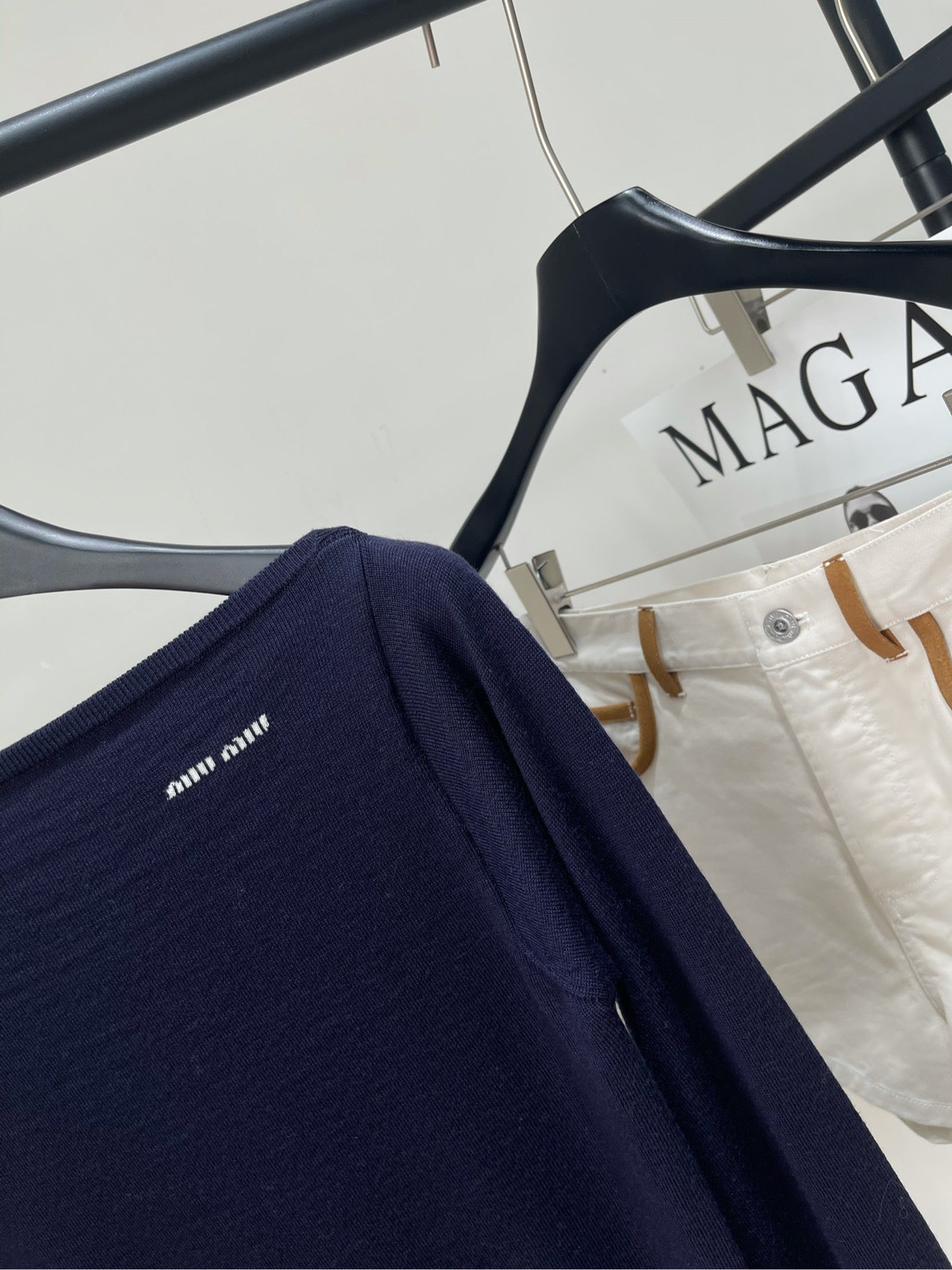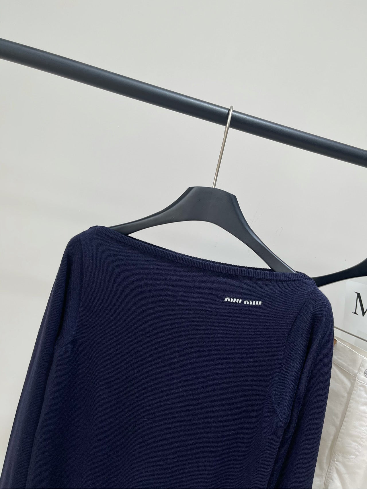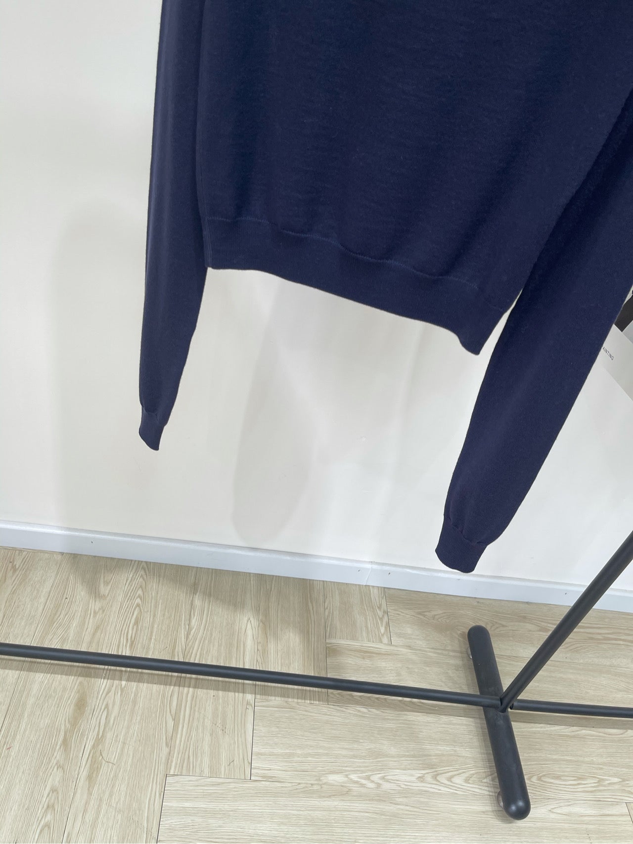 M 25 navy blue long-sleeved sweater with one-shoulder collar