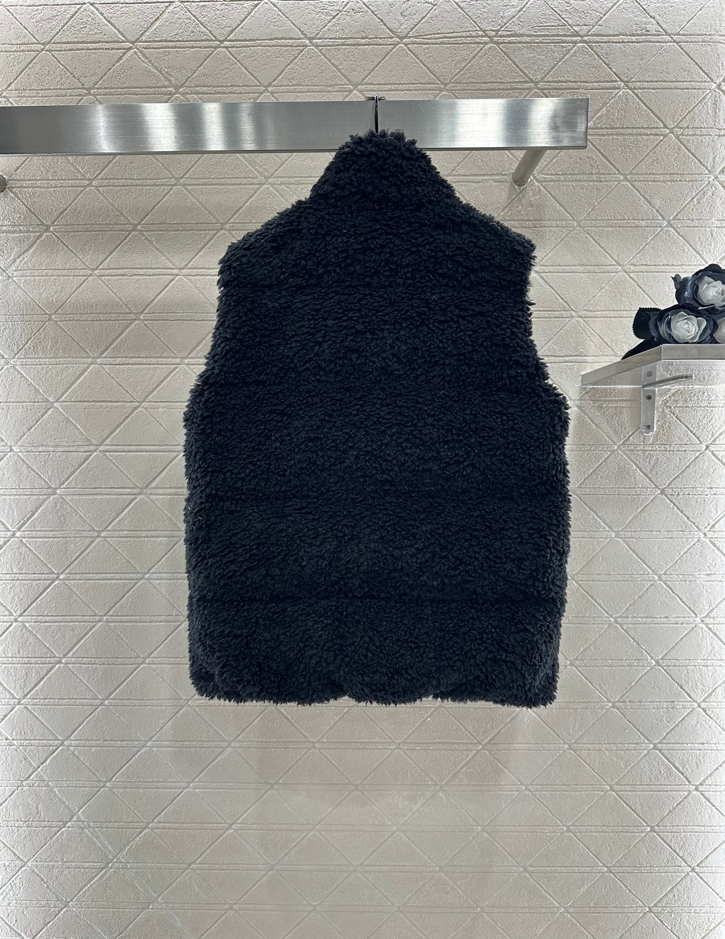 The outer layer is decorated with three-dimensional fluffy teddy plush material, which is soft and comfortable in texture. The hooded zipper vest cut is fashionable and stylish, and the chest badge shows the brand style. The overall silhouette is upright, slim fit, with a furry feel and zipper pockets ➕ Elastic elastic band enhances the convenience and practicality of on and off, giving it a stylish and sticky look. It is the first choice for keeping warm in autumn and winter.